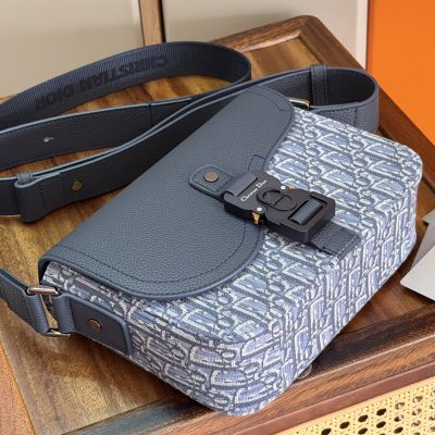 Dior Saddle Messenger Bag (Blue Oblique Jacquard)