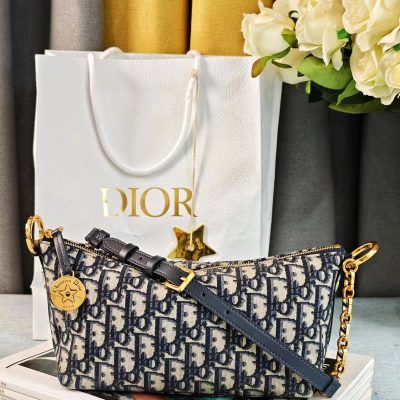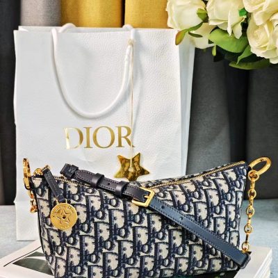 Dior Diostar Hobo Chain Bag (Blue Oblique Jacquard)