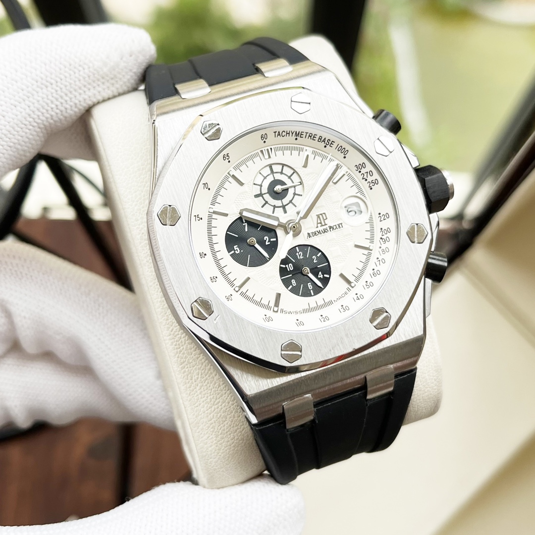 The Audemars Piguet men’s automatic mechanical watch features a rose gold case, classic design, and a precise automatic movement, paired with a black rubber strap to showcase modern luxury and ultimate craftsmanship.