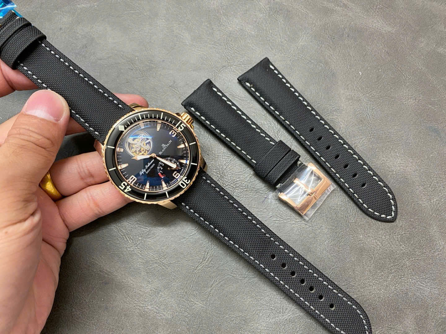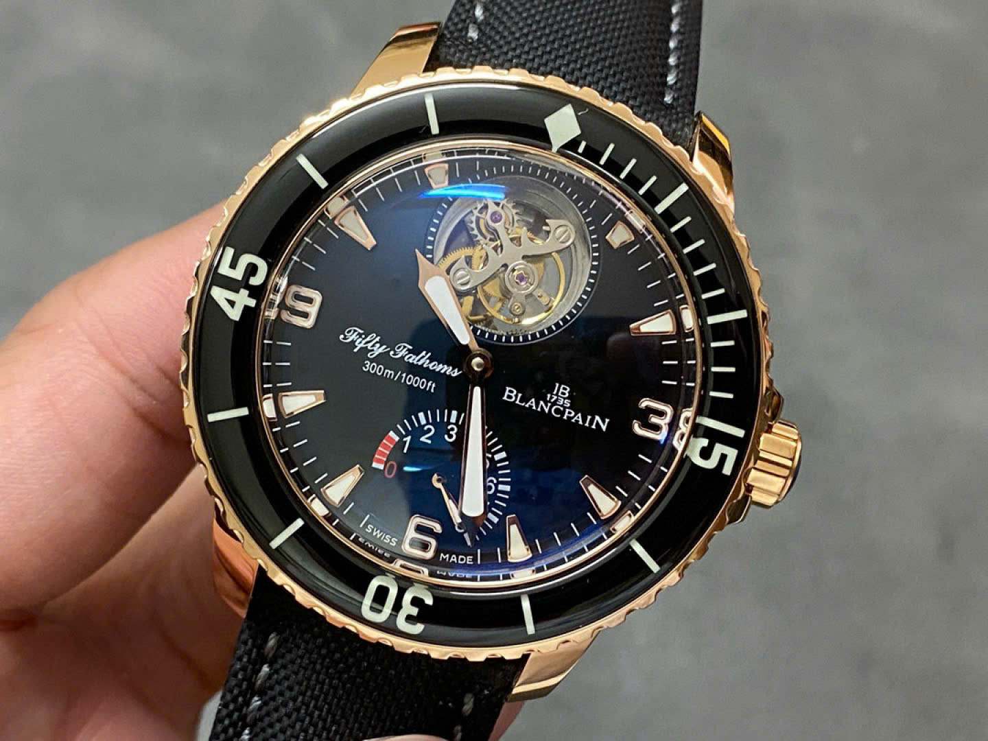 Blancpain Fifty Fathoms Tourbillon 8 Jours Replica Watch Rose Gold Black Dial YS Factory 45mm