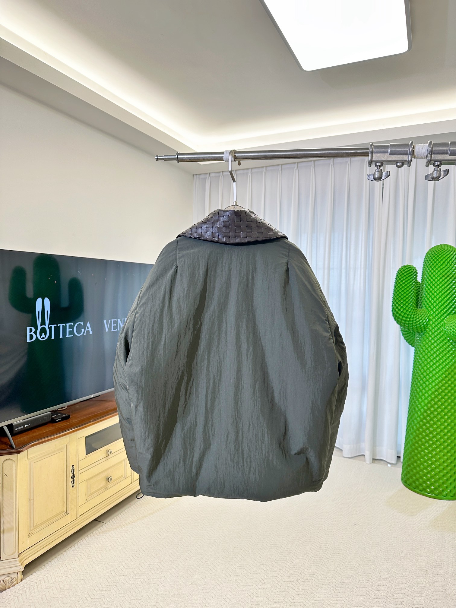 Intrecciato 编织皮革衣领,致敬 Bottega Veneta 的手工工艺传承,更添质感与独特魅力。这款羽绒服填充优质羽绒,保暖性出色,却不显臃肿,更凸显其流畅的建筑廓形。