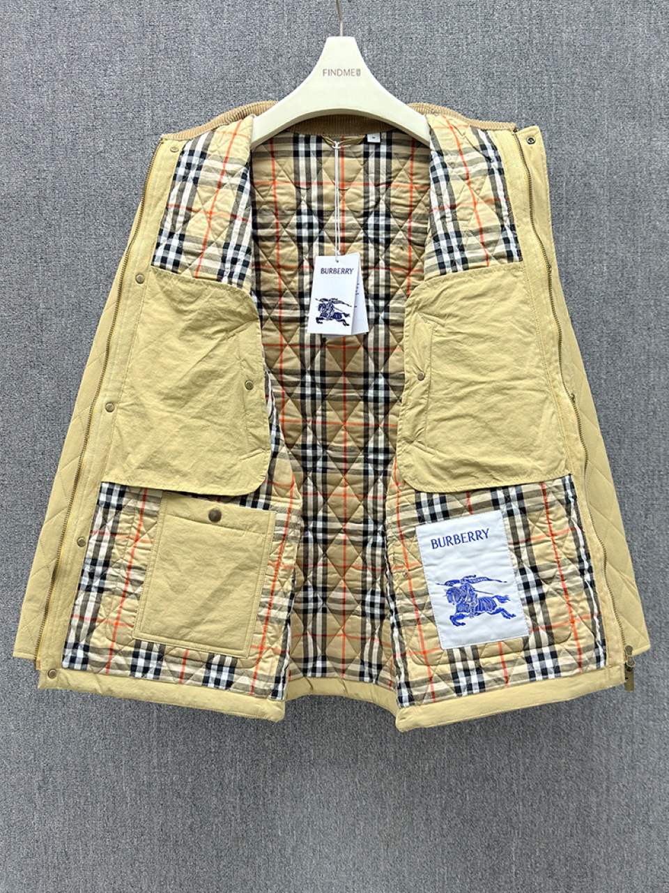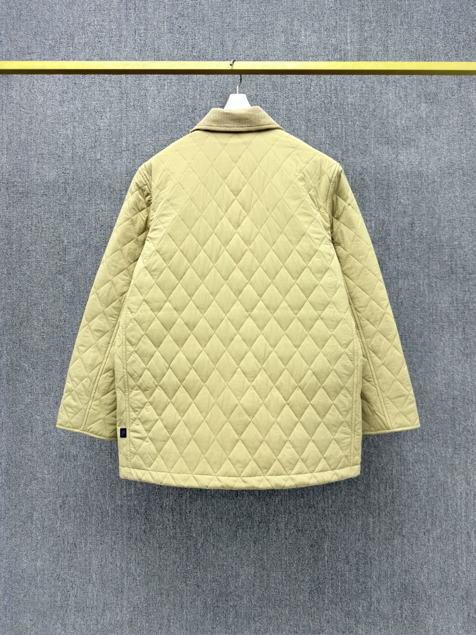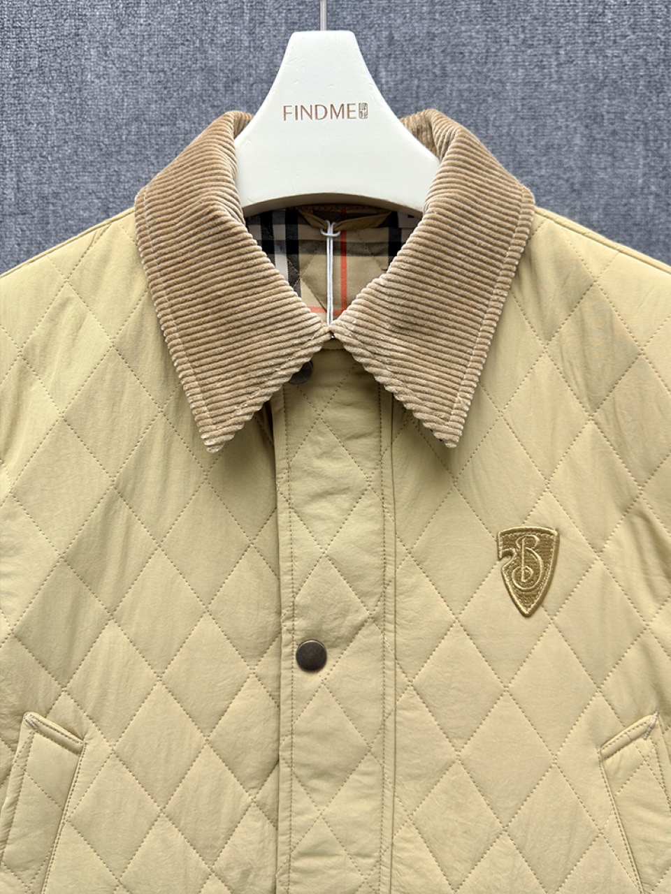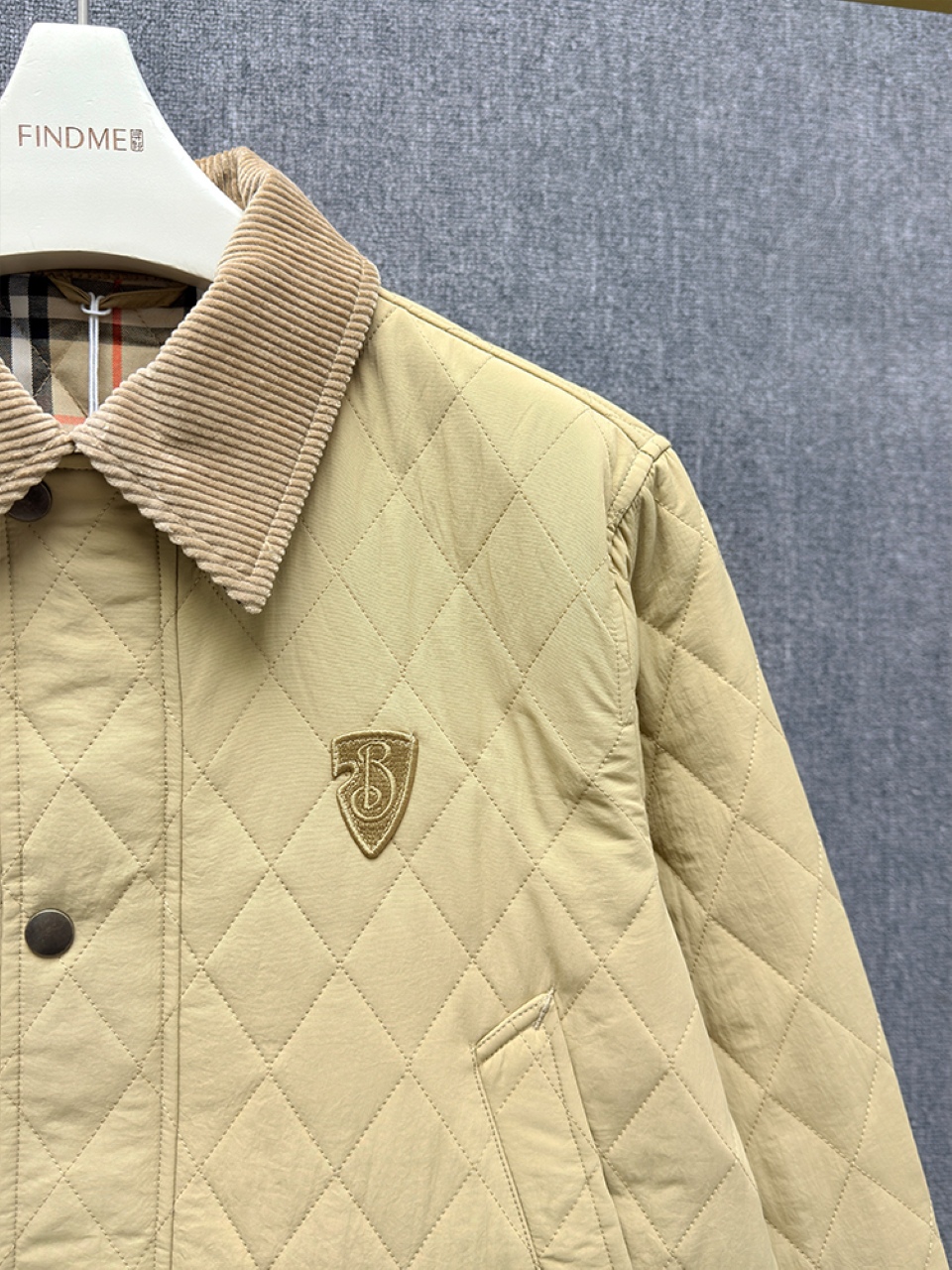 该设计采用灯芯绒衣领、同色系饰边,胸前饰有标志性的“B”字盾形刺绣。夹克内衬采用标志性的复古博柏利格纹,呼应品牌隽永的工艺。