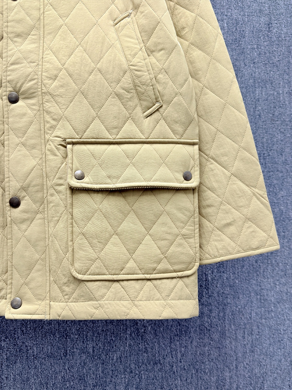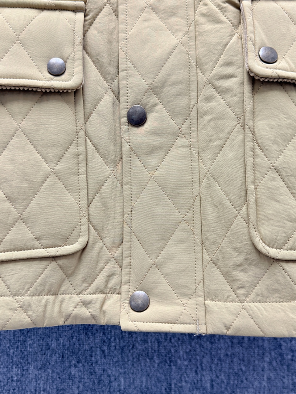 菱形绗缝尼龙外壳,配有轻质衬垫