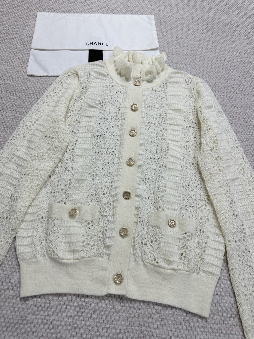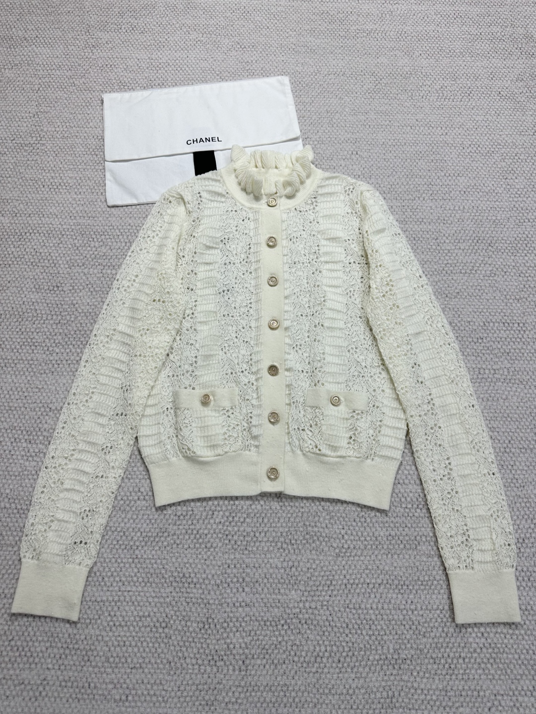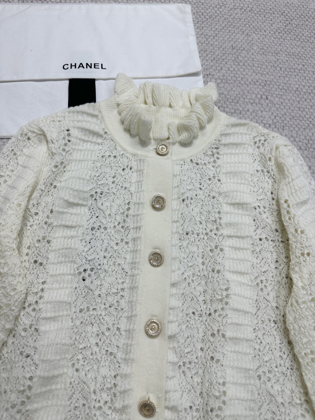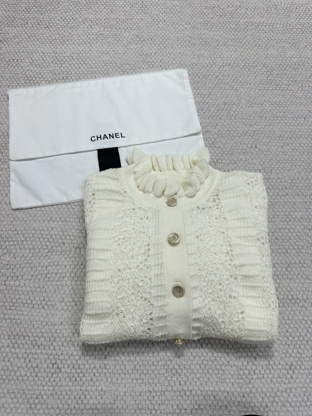 CHANEL CC25A Ruffled-Edge Knit Cardigan