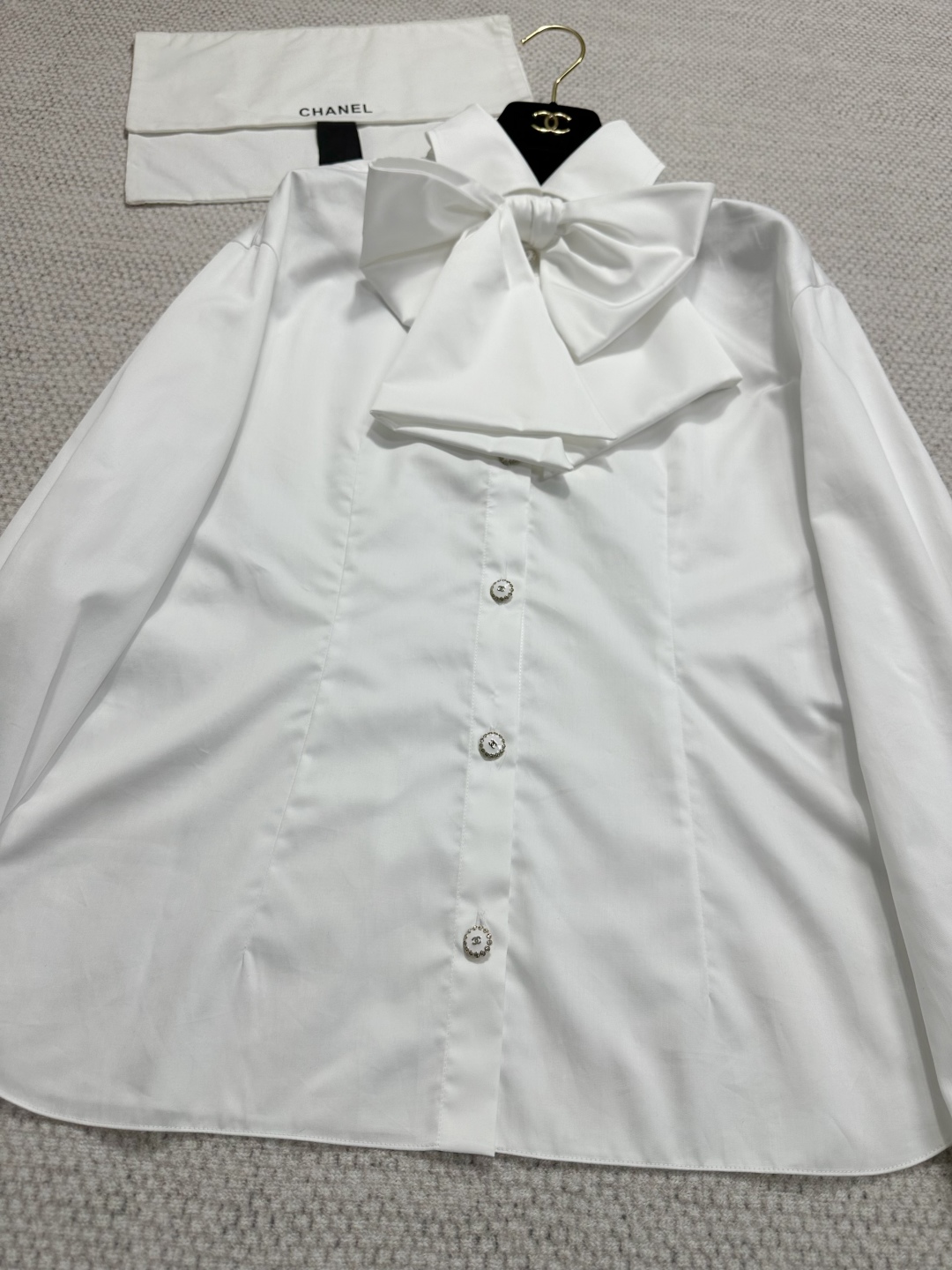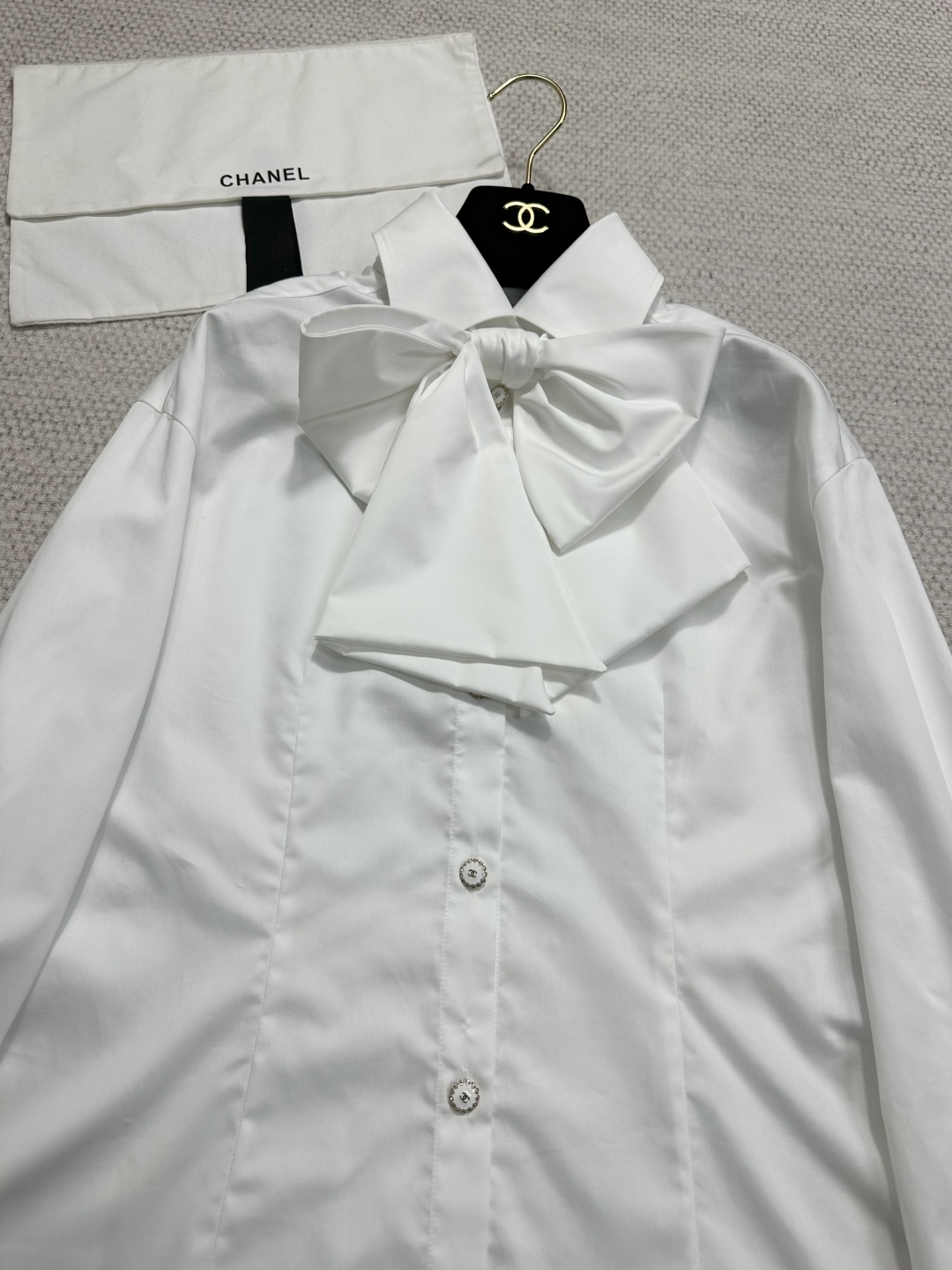 CHANEL CC25K Cotton Poplin Blouse with Bow Tie