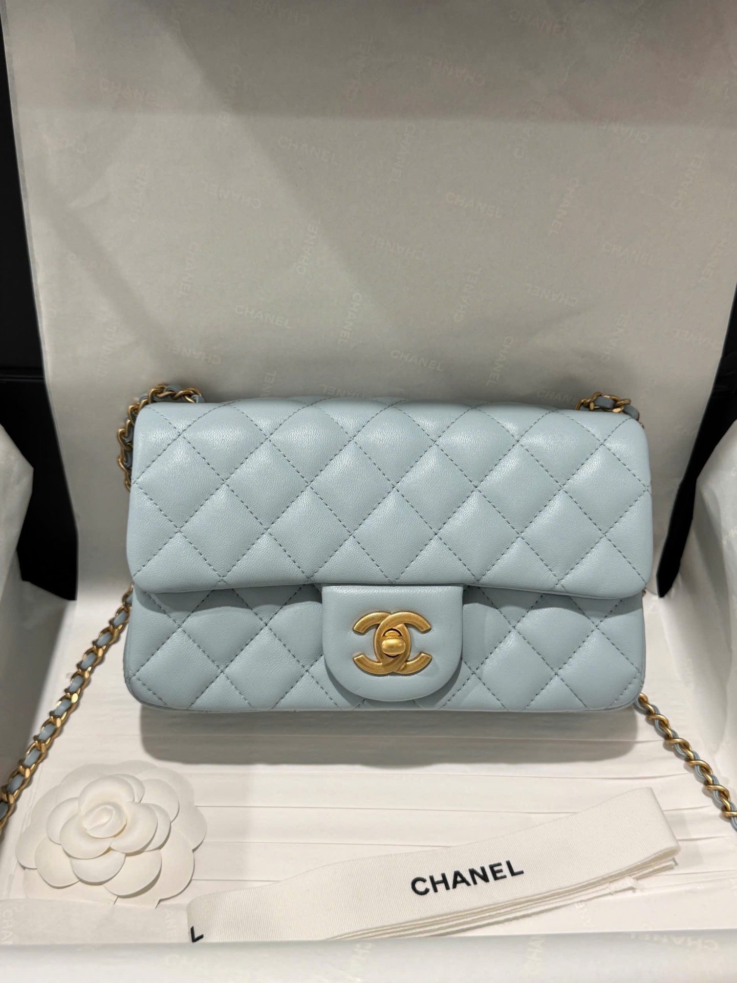 Chanel Classic Bell Like Auth Women-s Handbag Genuine Leather Mineral Gold 20cm