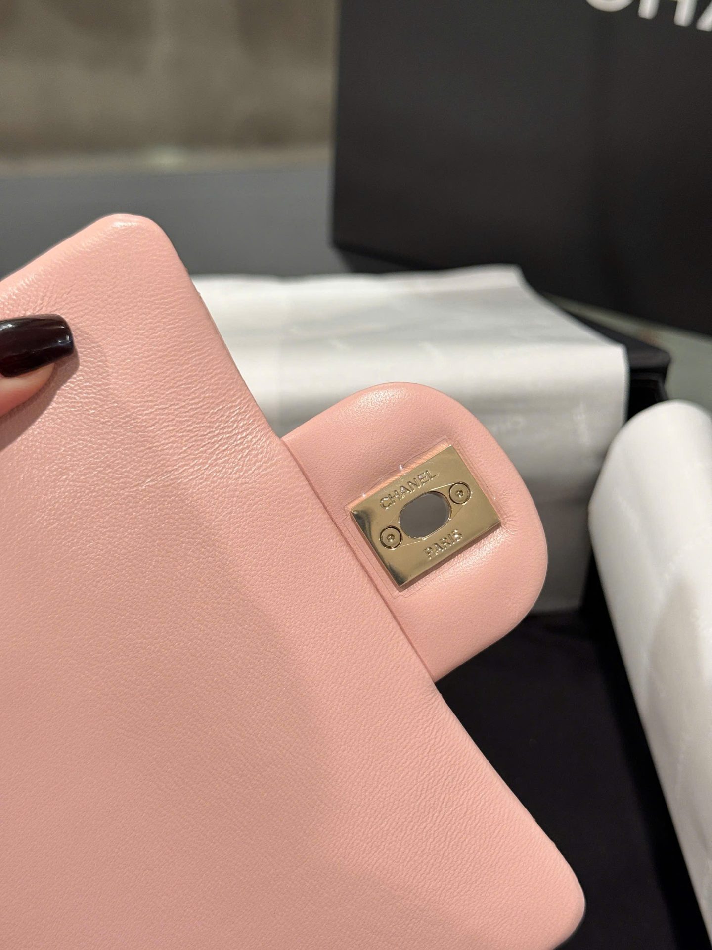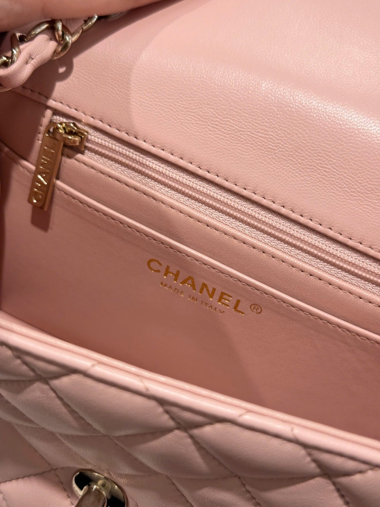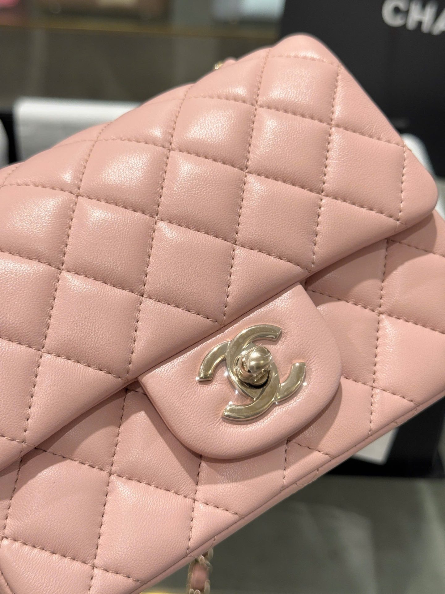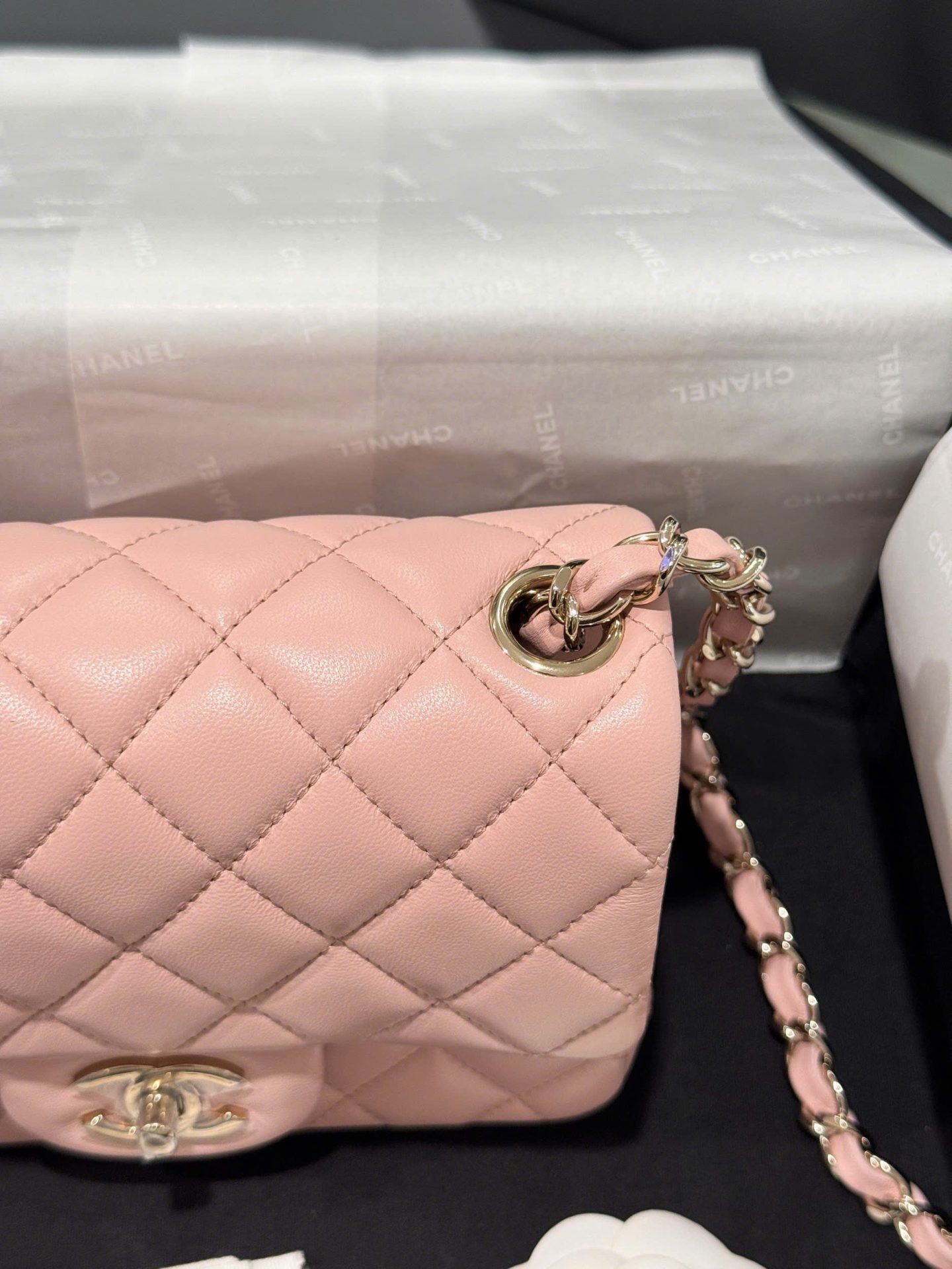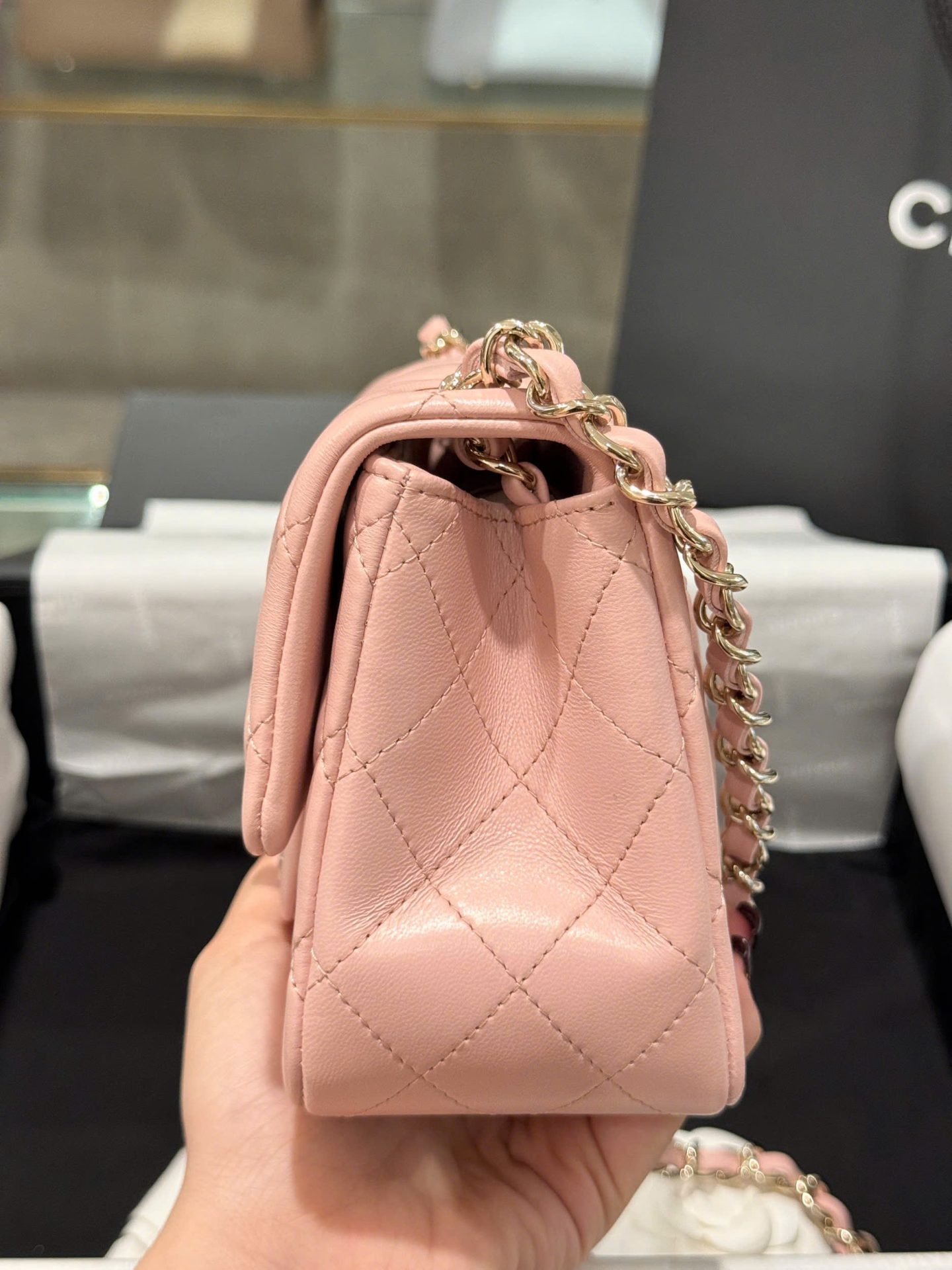Chanel Classic Mini Handbag Pink with Super Quality Rose Gold Lock 17cm