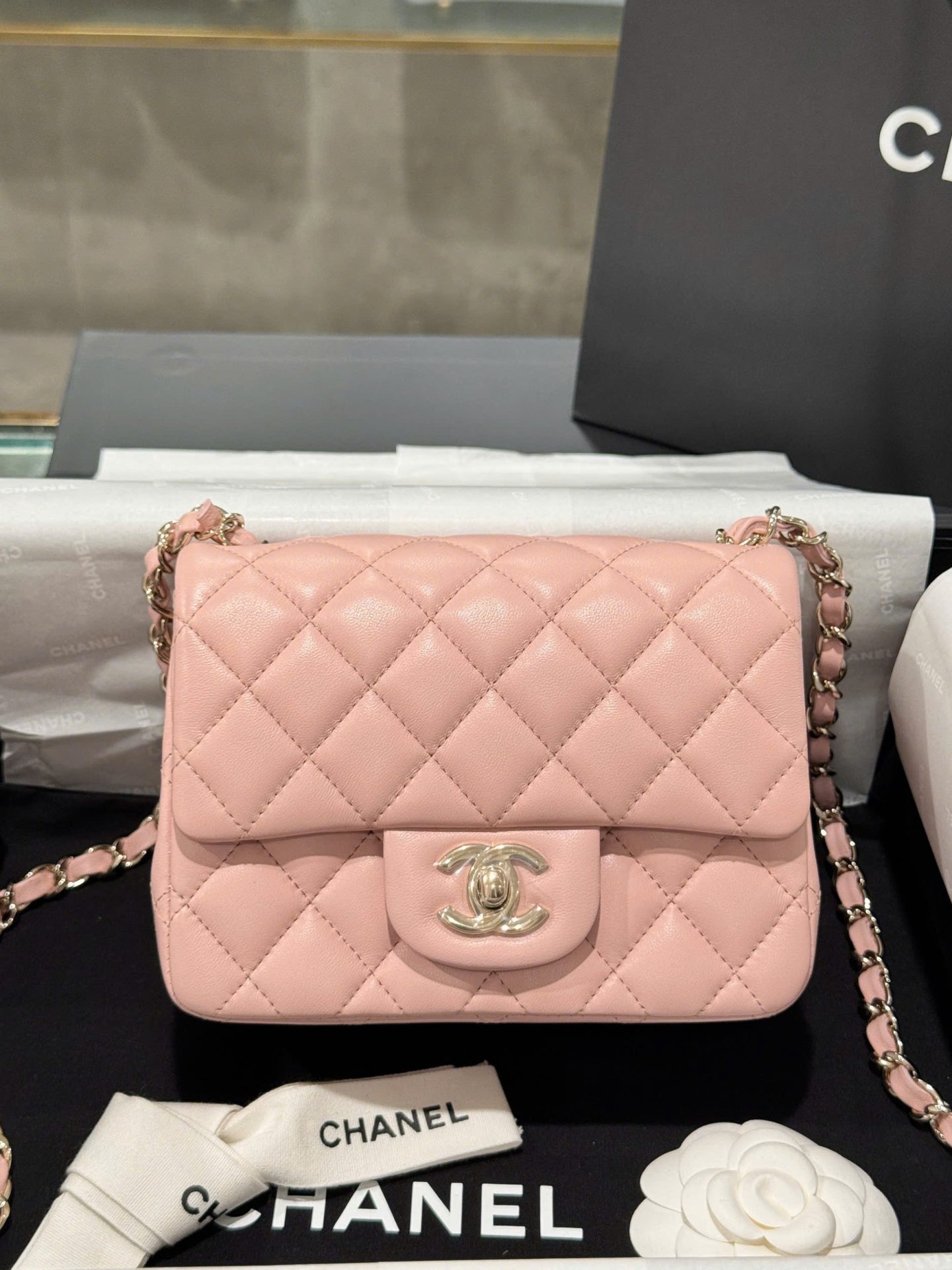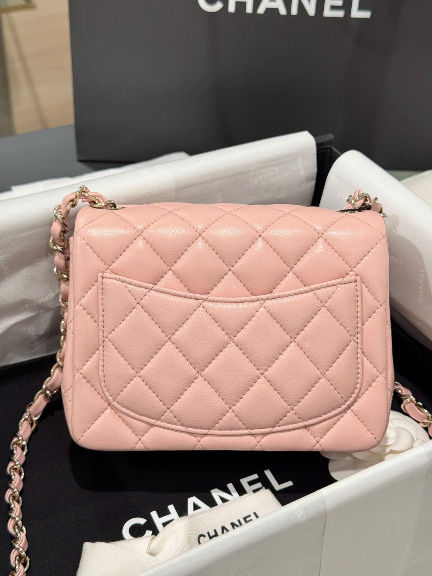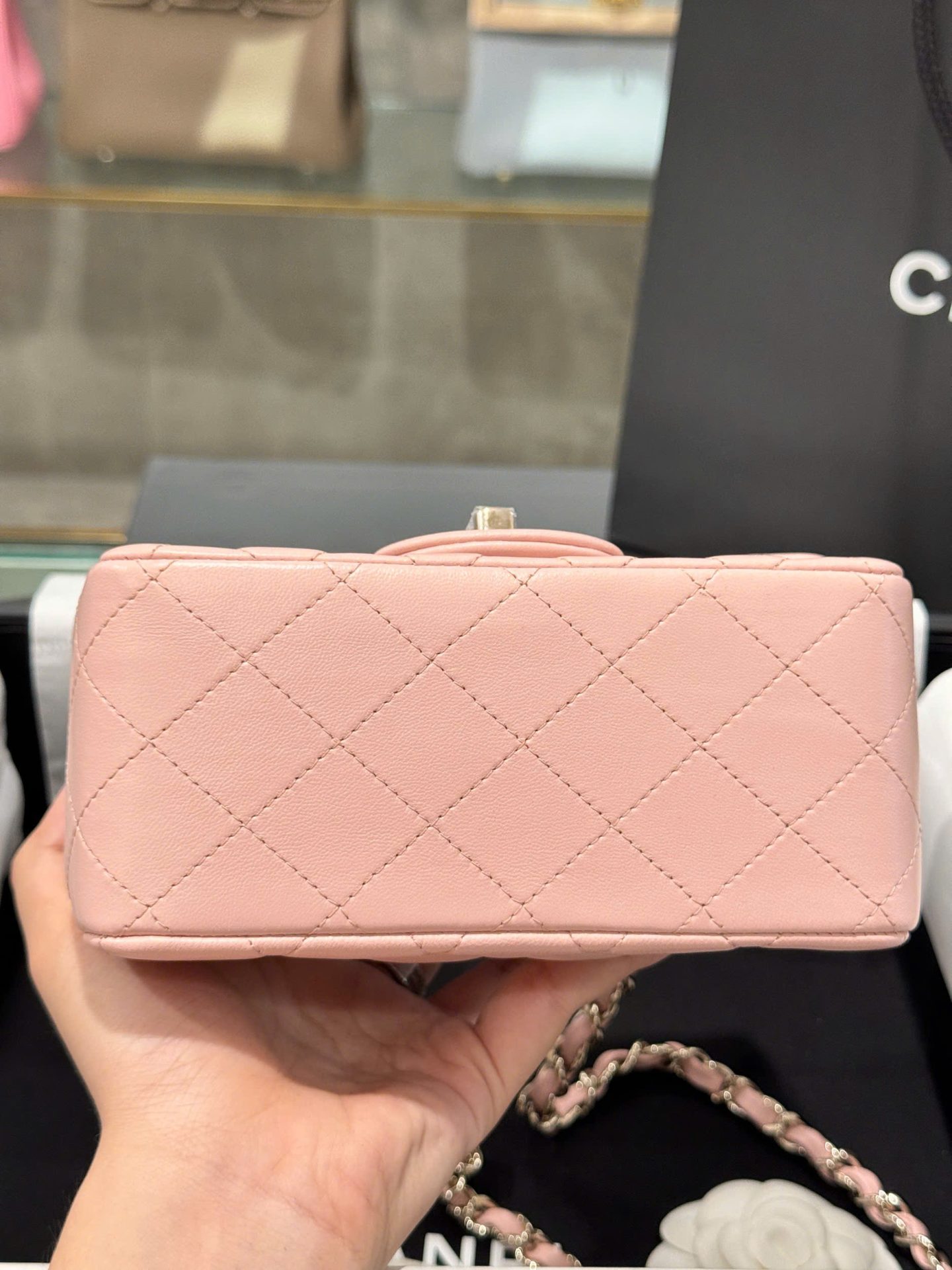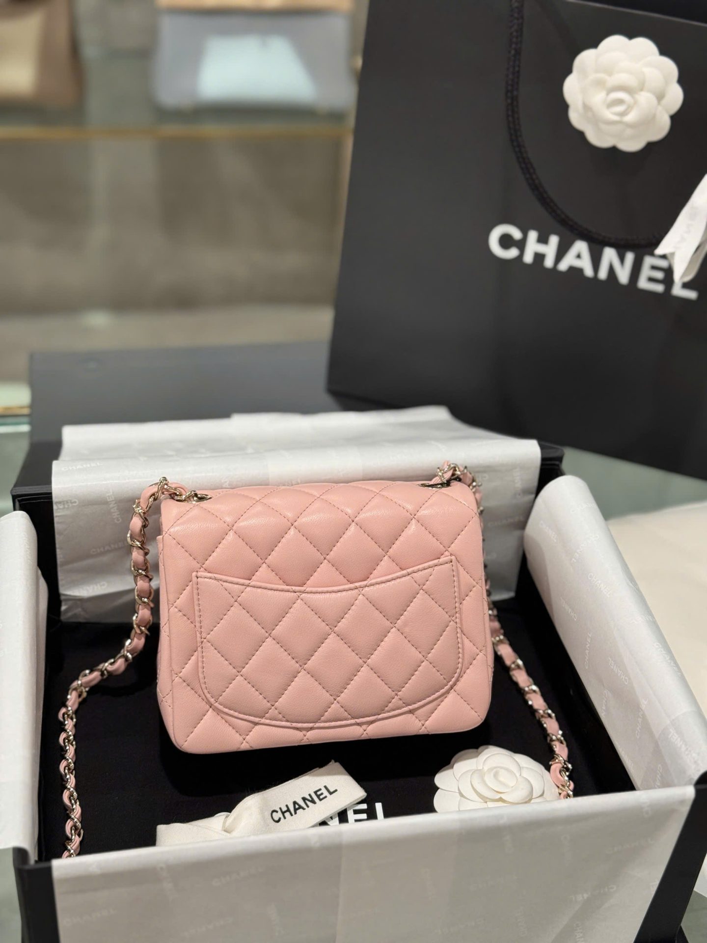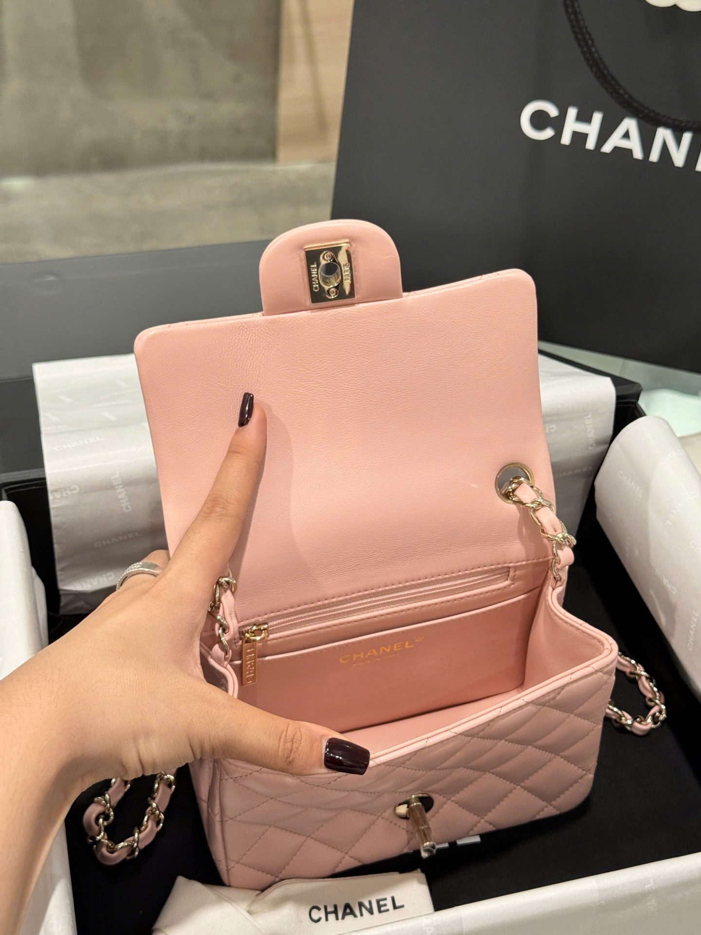 Chanel Classic Mini Handbag Pink with Super Quality Rose Gold Lock 17cm
