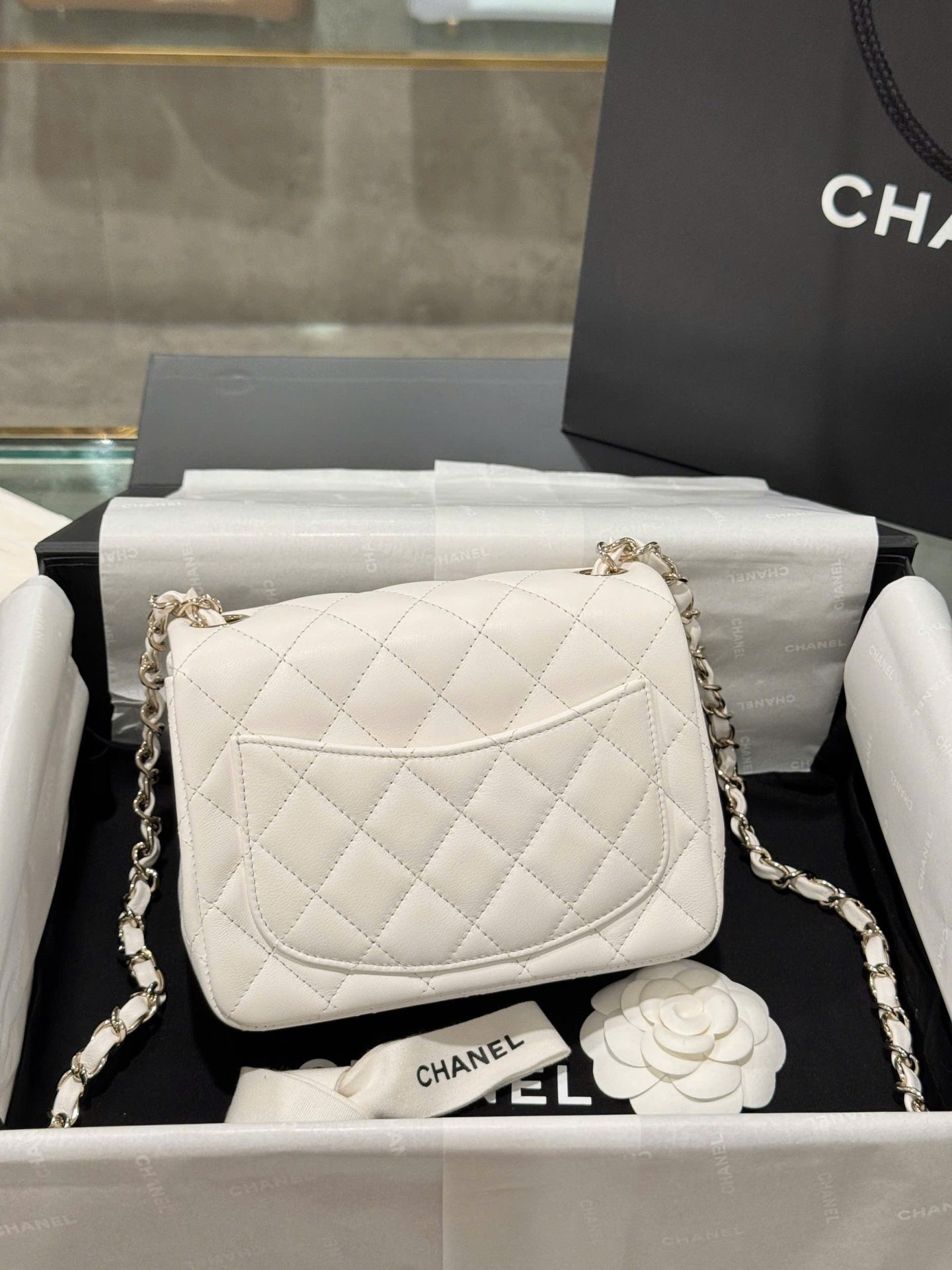 Chanel Classic Mini Super Quality Women-s Handbag White Gold Lock 17cm