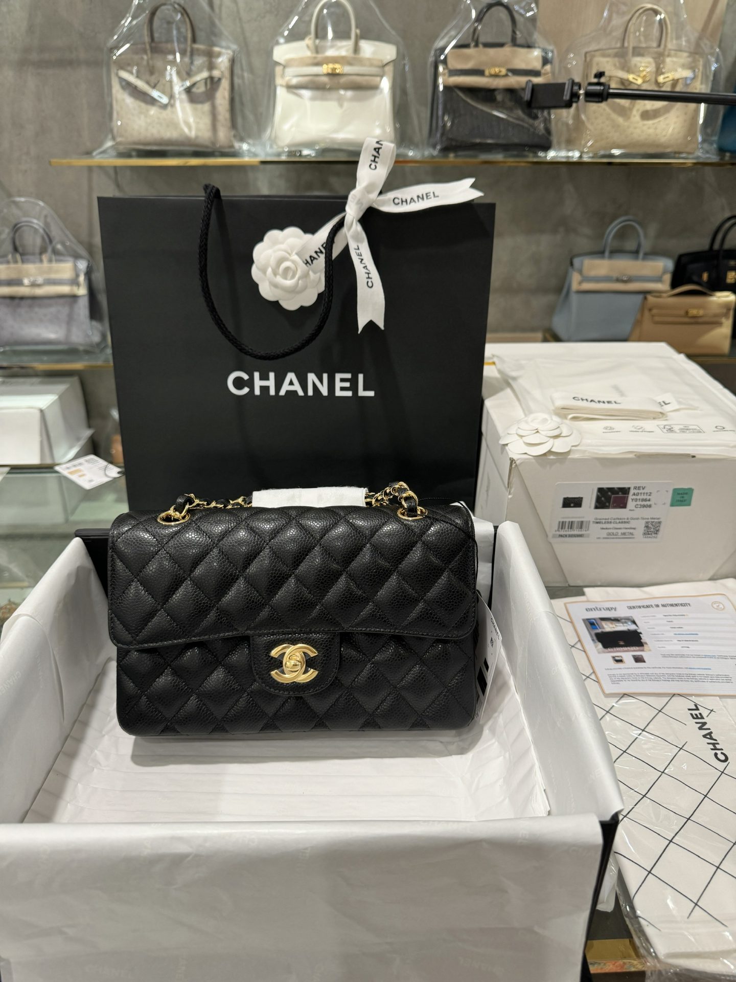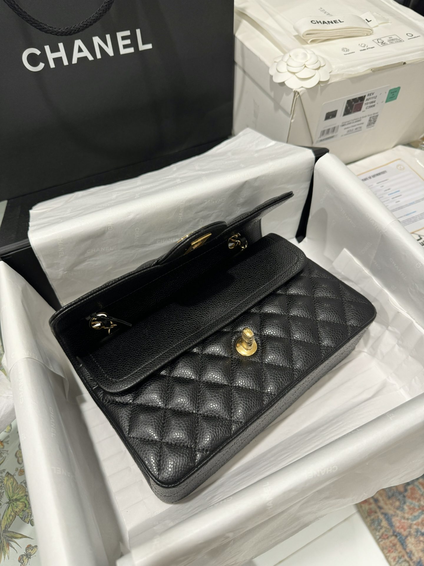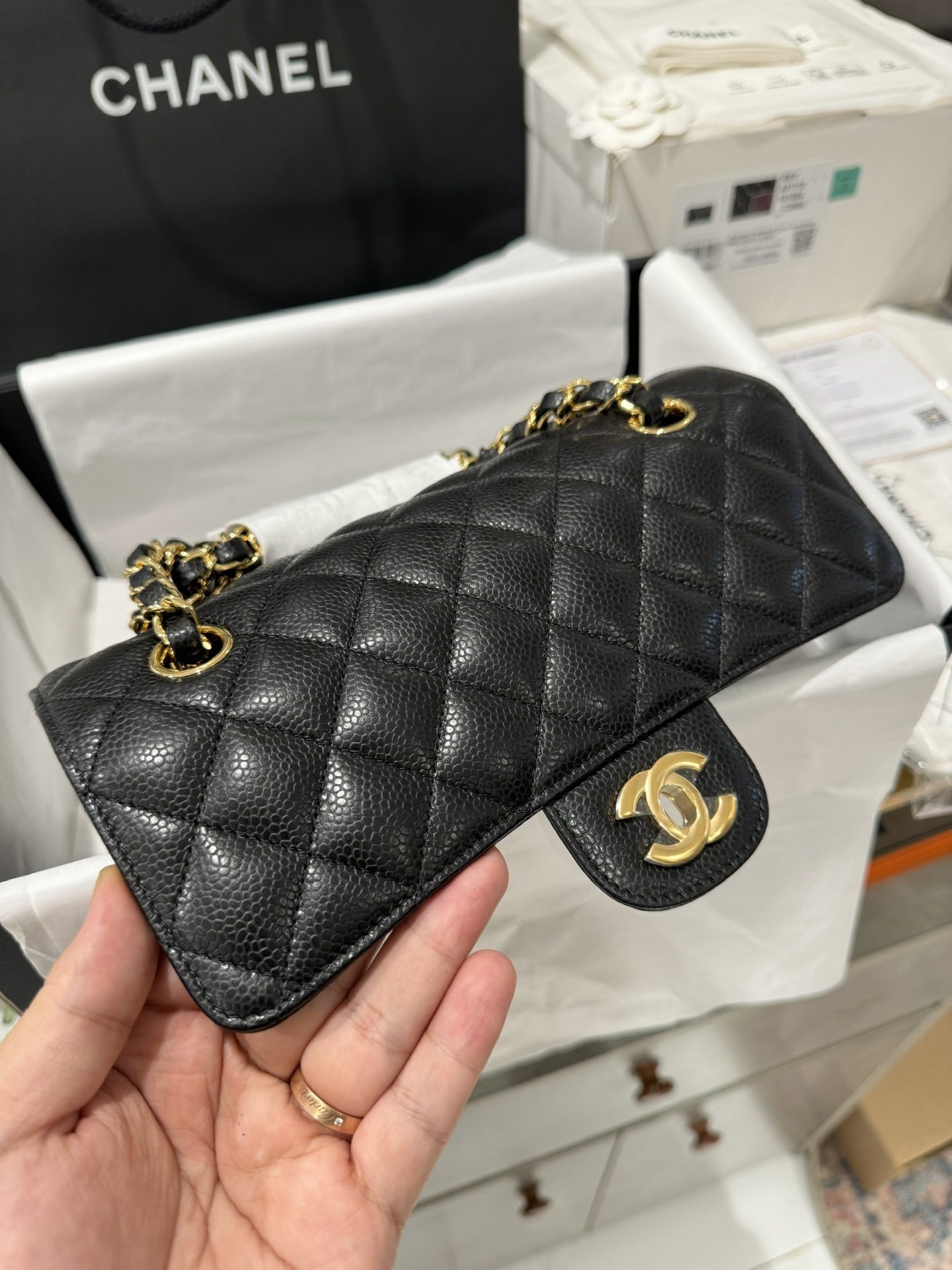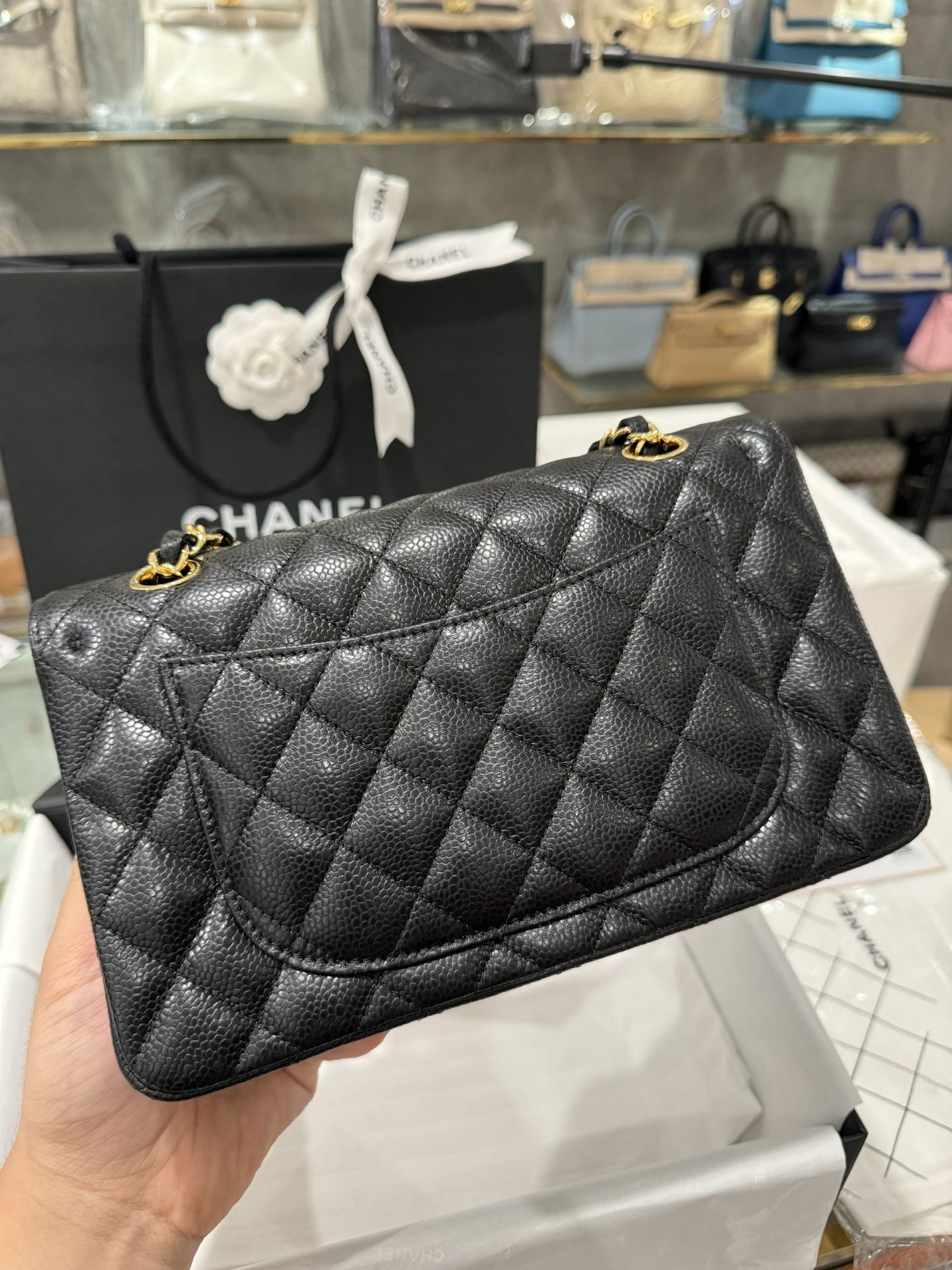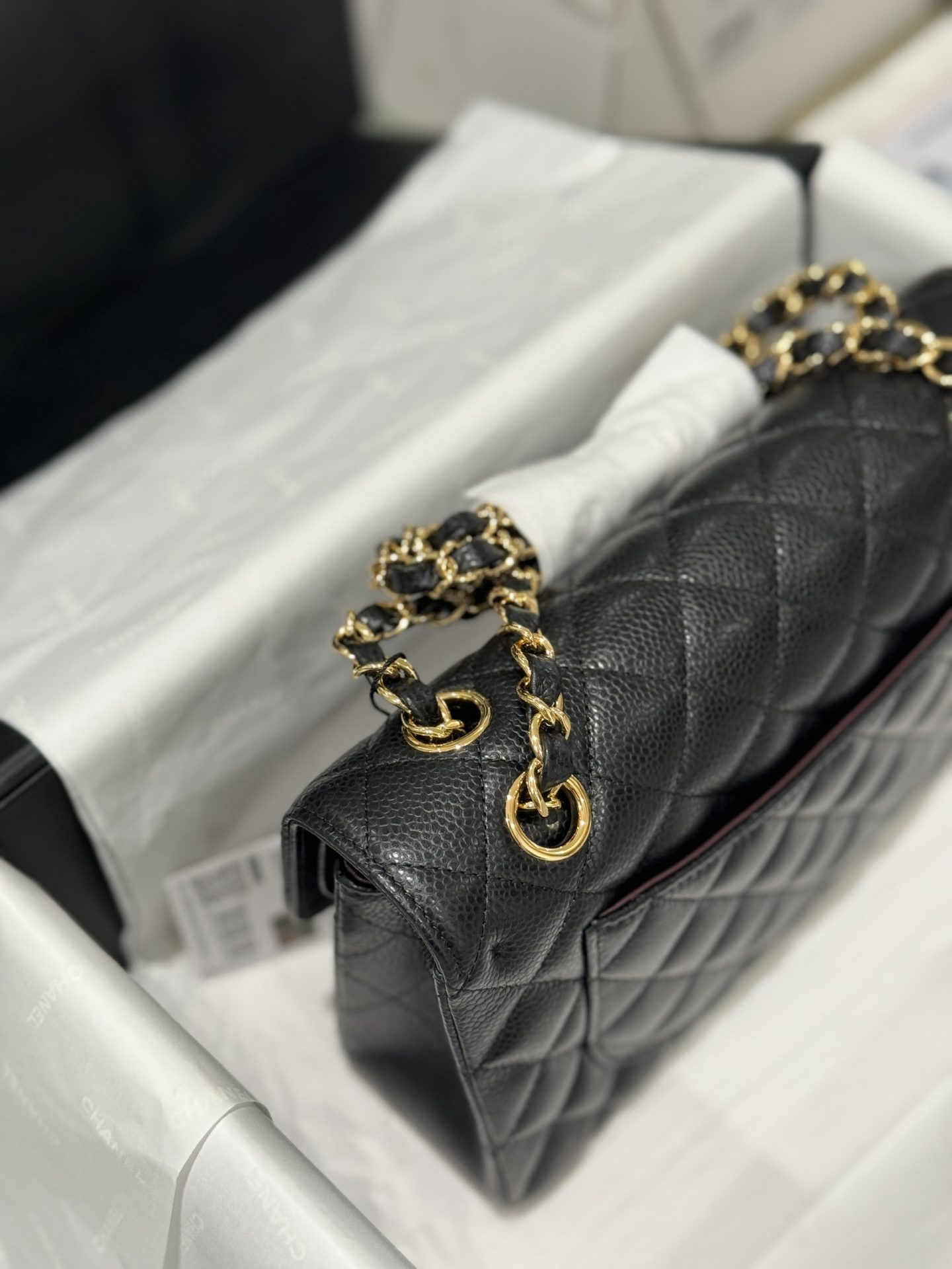 Chanel Classic Replica Handbag 11 Grained Leather Black Gold Lock 23cm