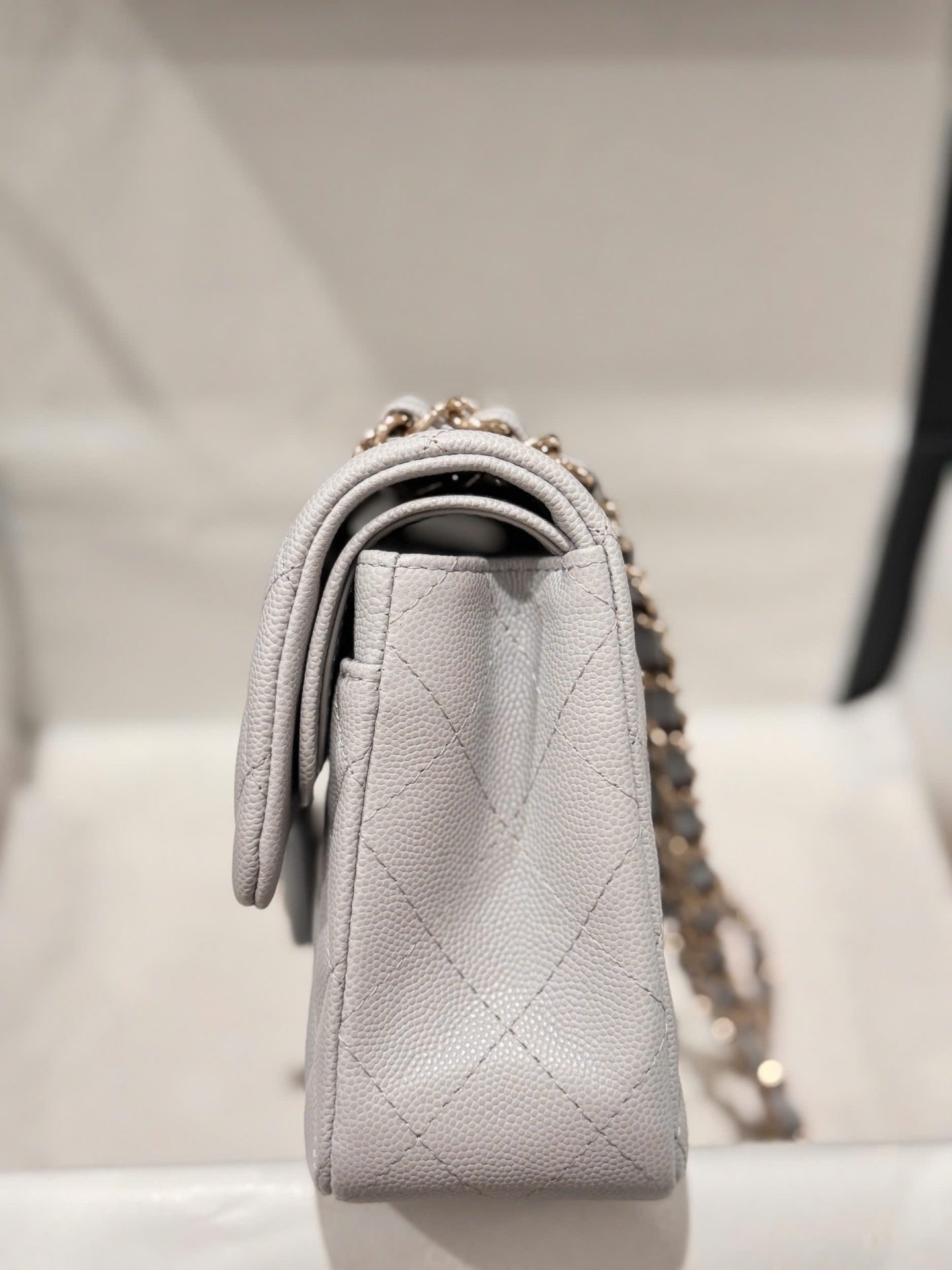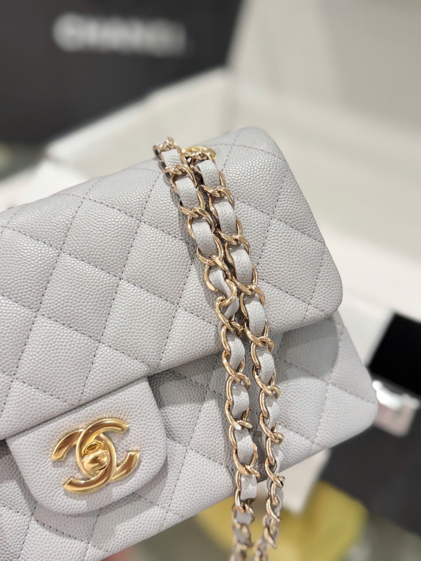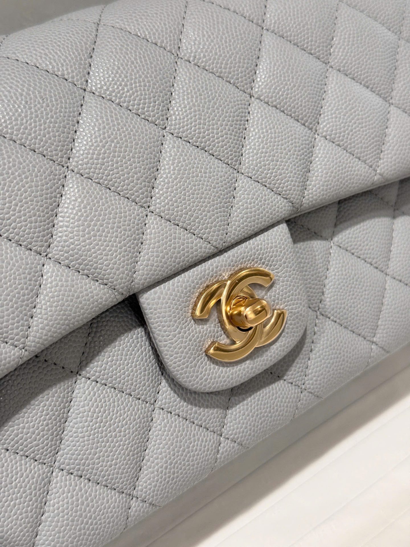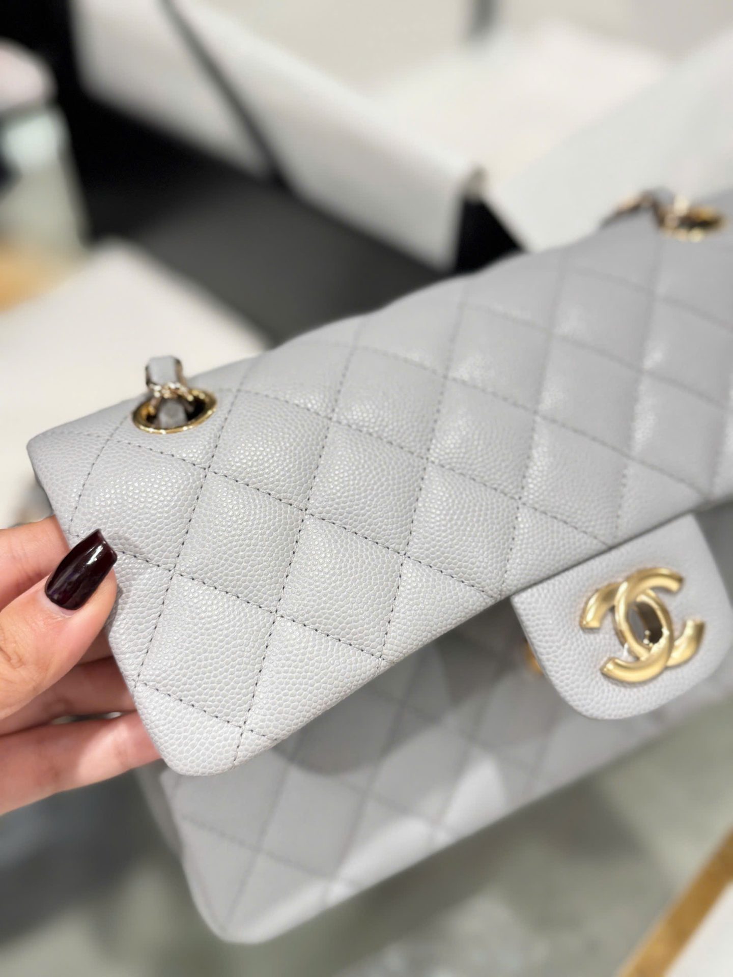 Chanel Classic Replica Women-s Handbag Gray Gold Lock 23cm