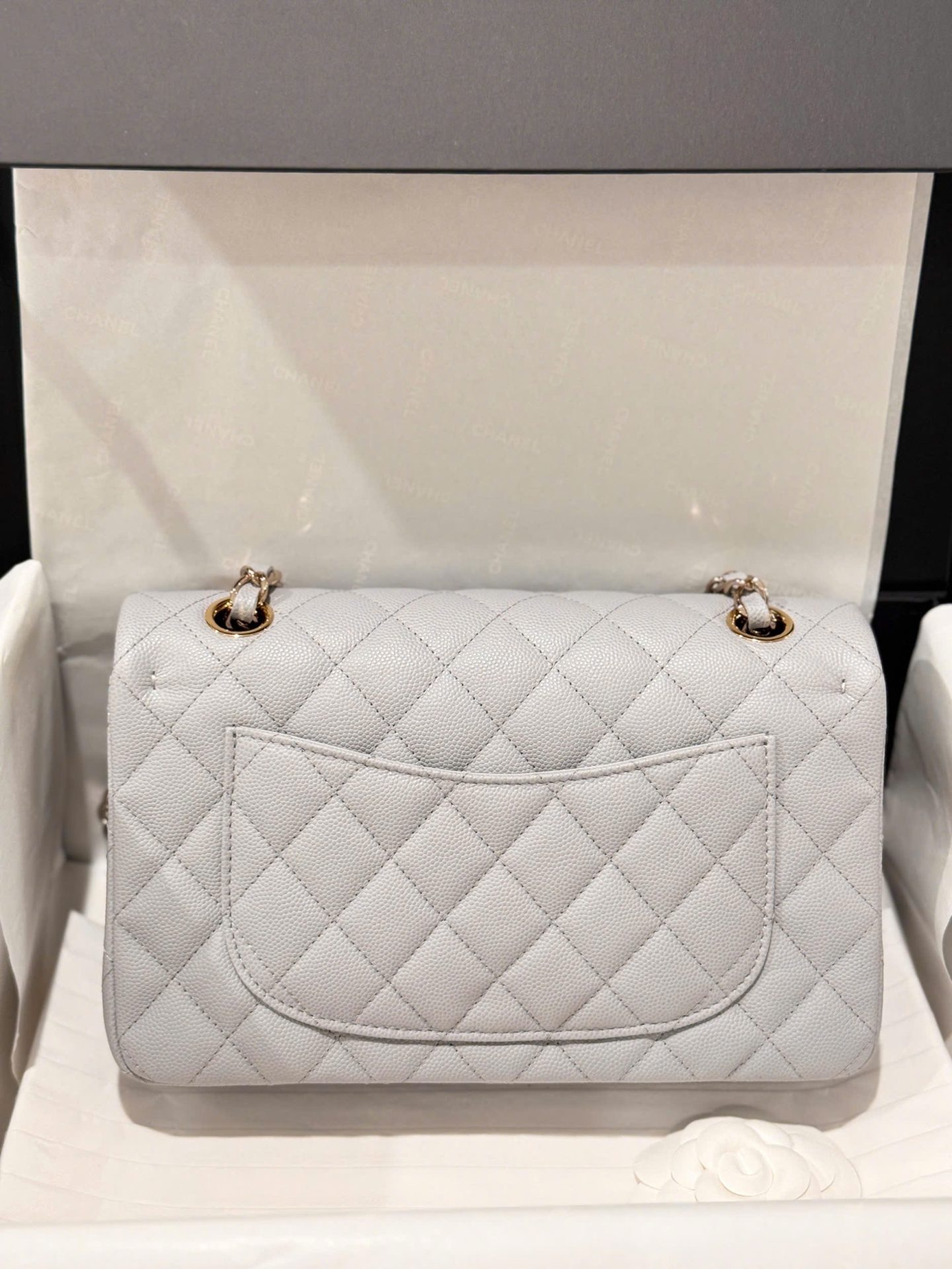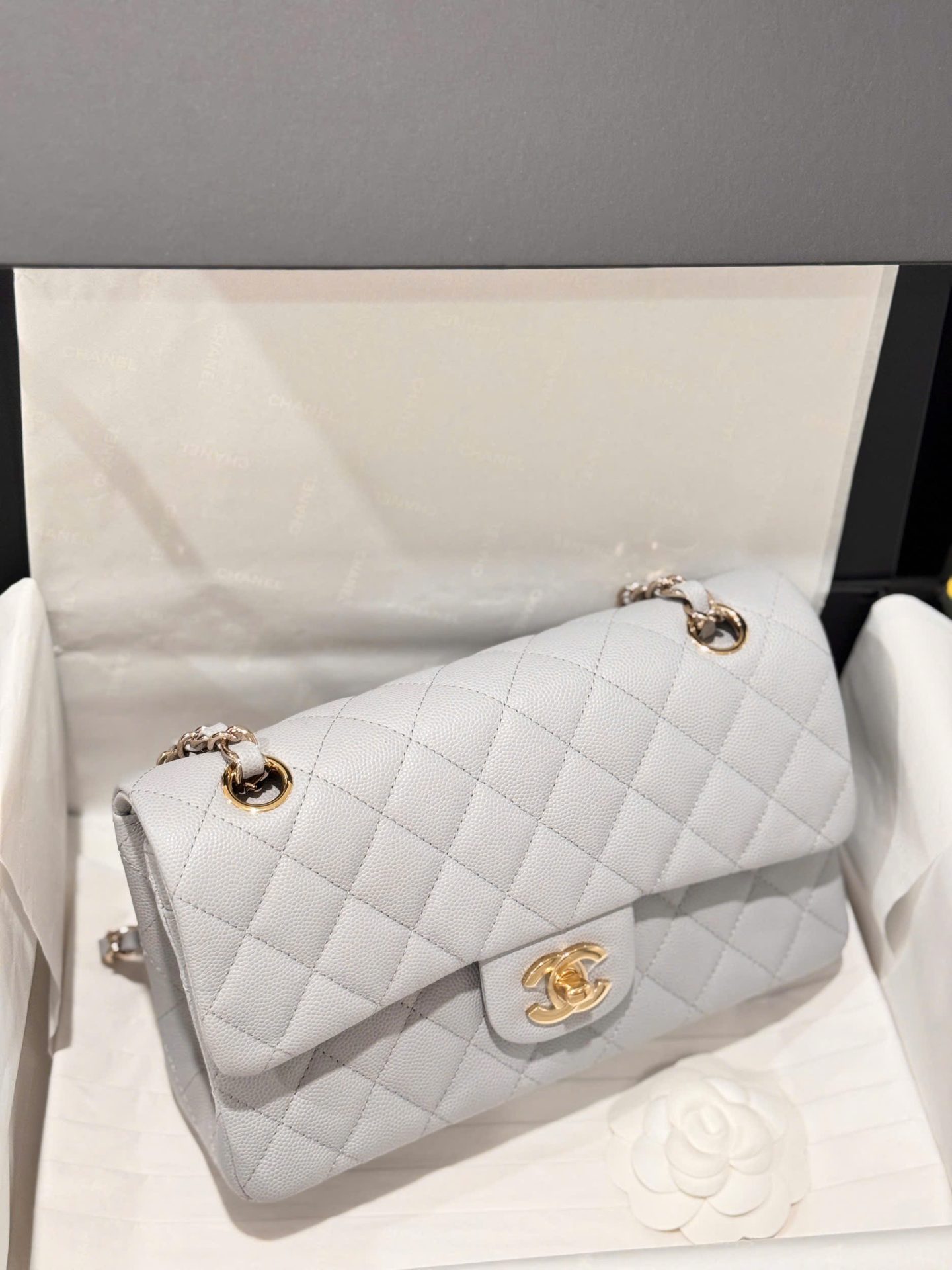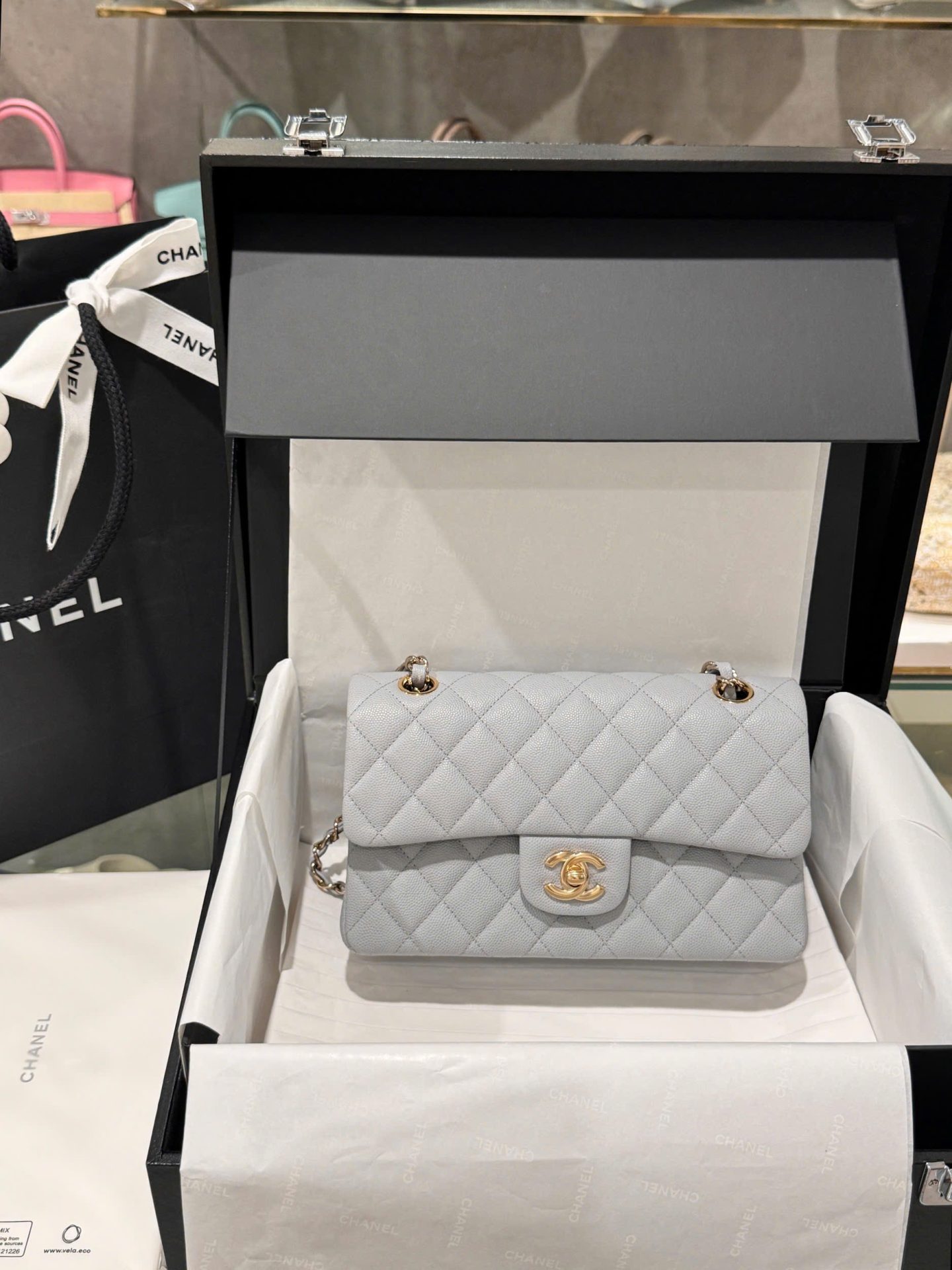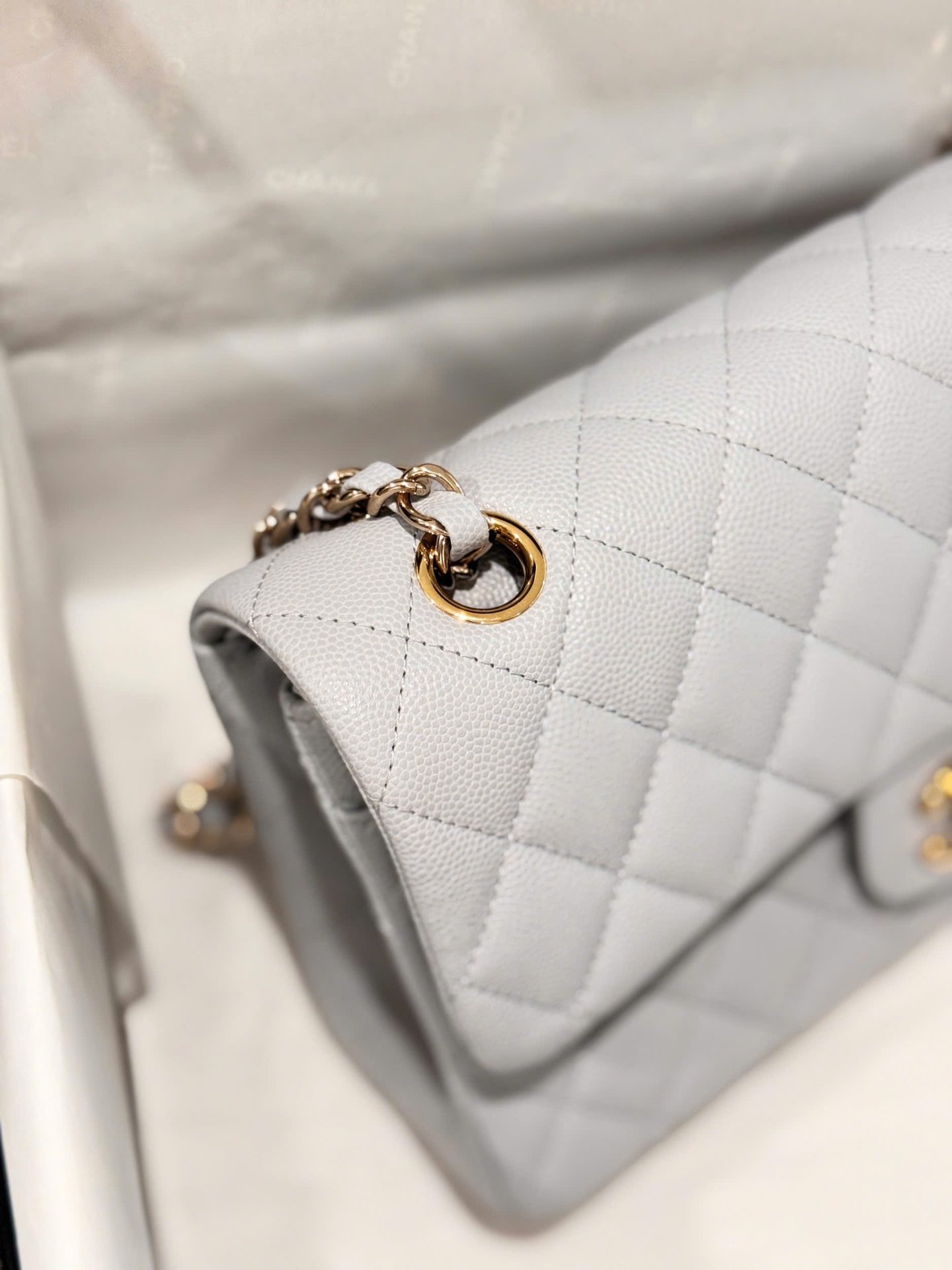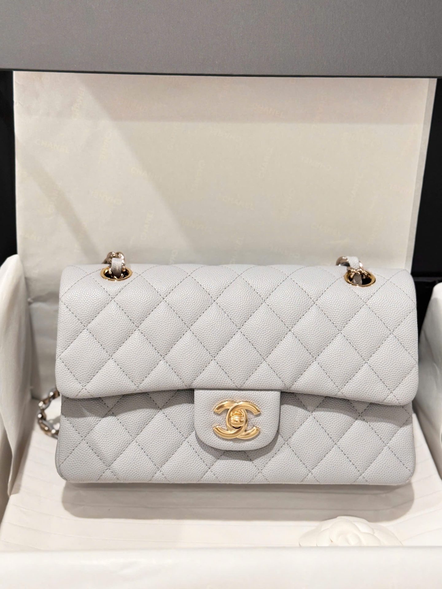Chanel Classic Replica Women-s Handbag Gray Gold Lock 23cm
