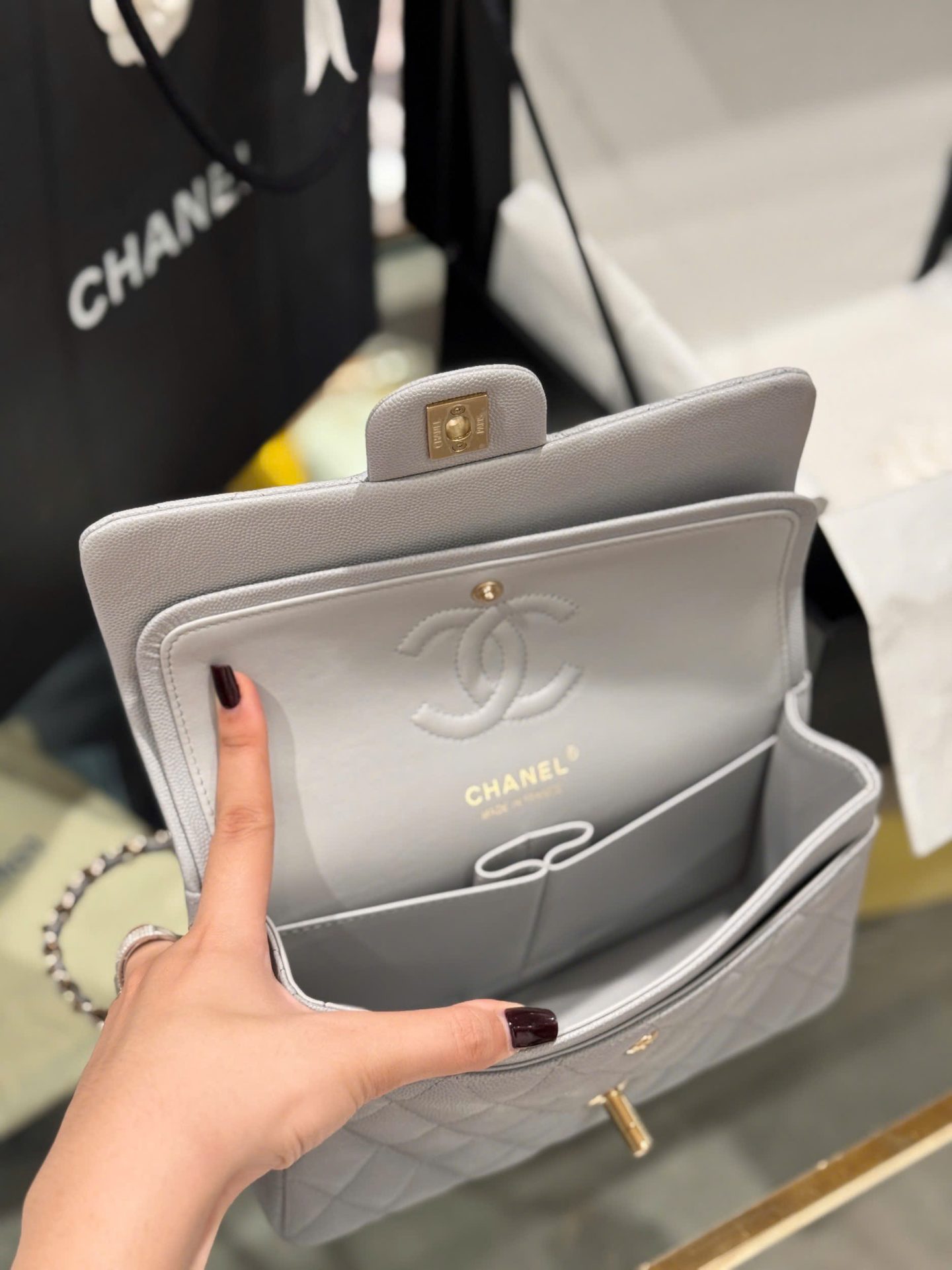 Chanel Classic Replica Women’s Handbag Gray Gold Lock