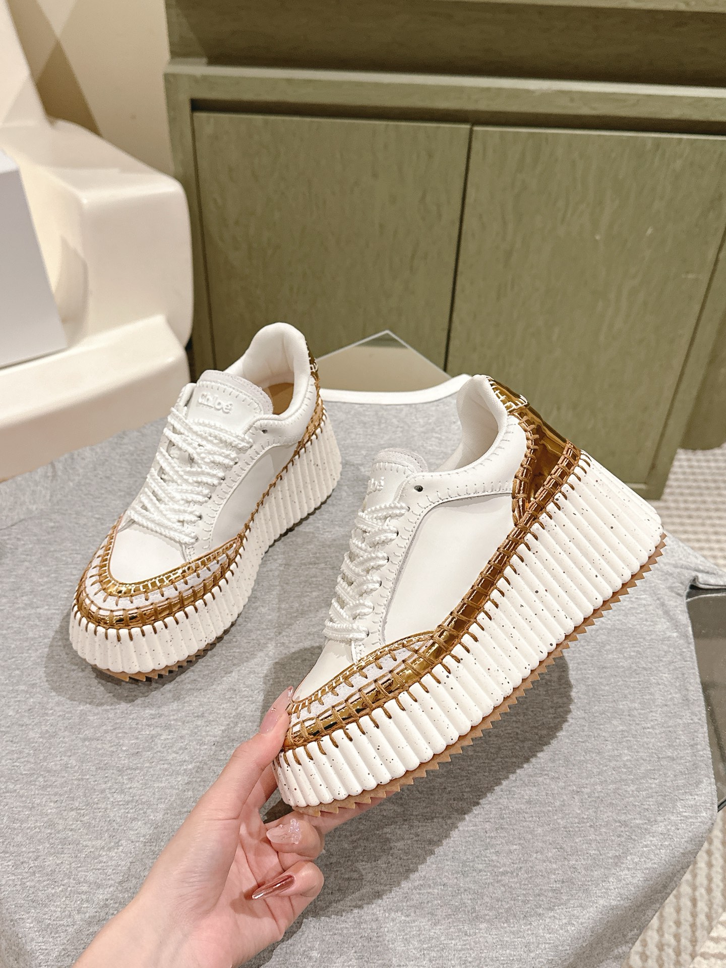 Inspired by the effortless grace of modern women, the Chloé thick-soled sneakers combine supple leather with artisanal stitching. The layered sole design and woven details echo the brand’s romantic yet confident spirit.