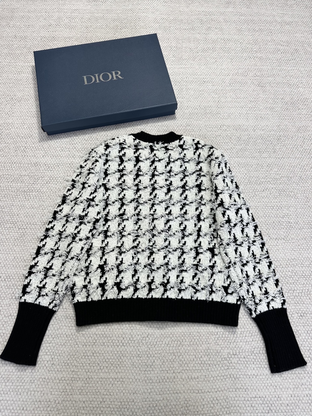 From the Dior Resort 2025 Collection, this elegant twin set reimagines the iconic houndstooth motif through fine-gauge German-engineered knitting.