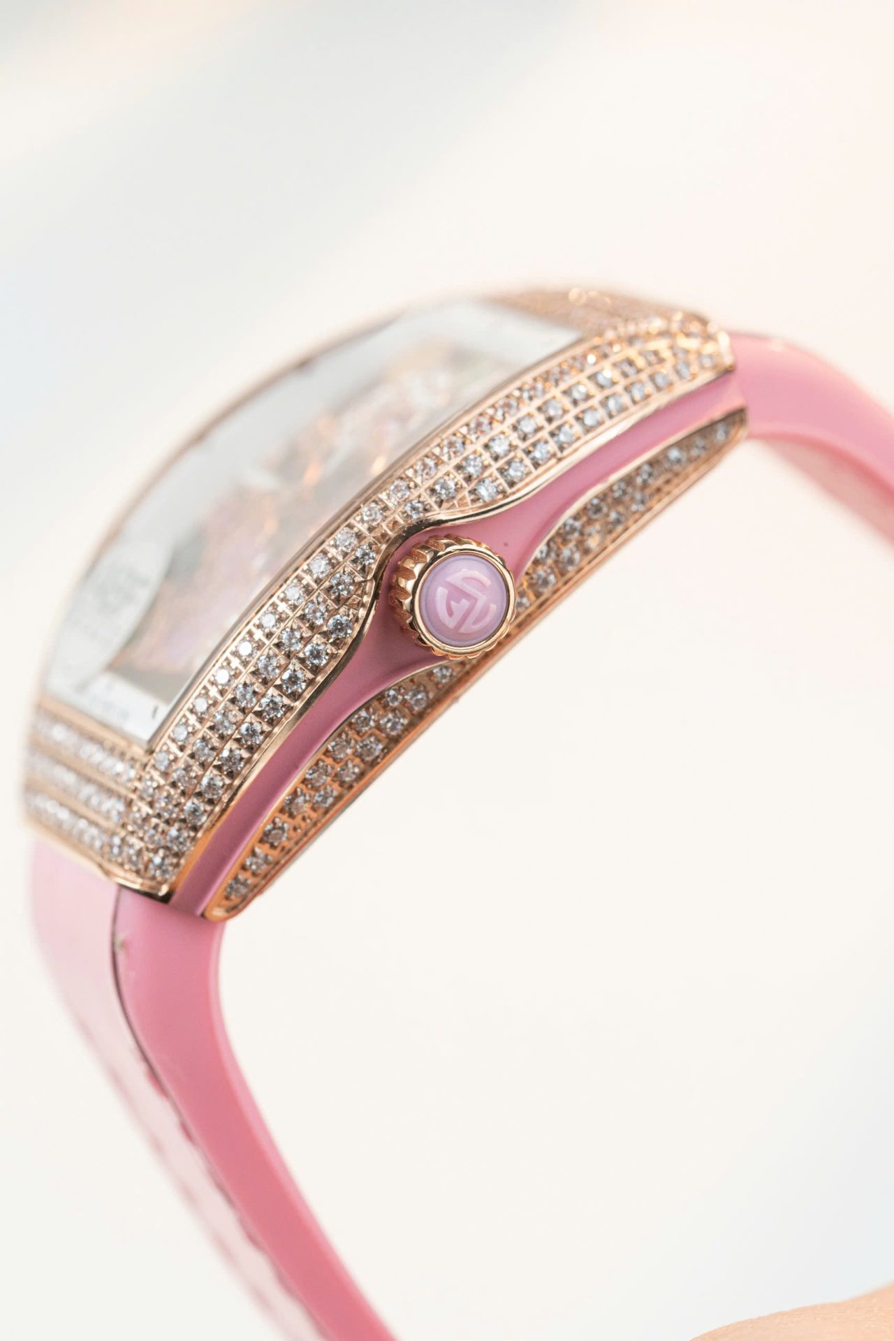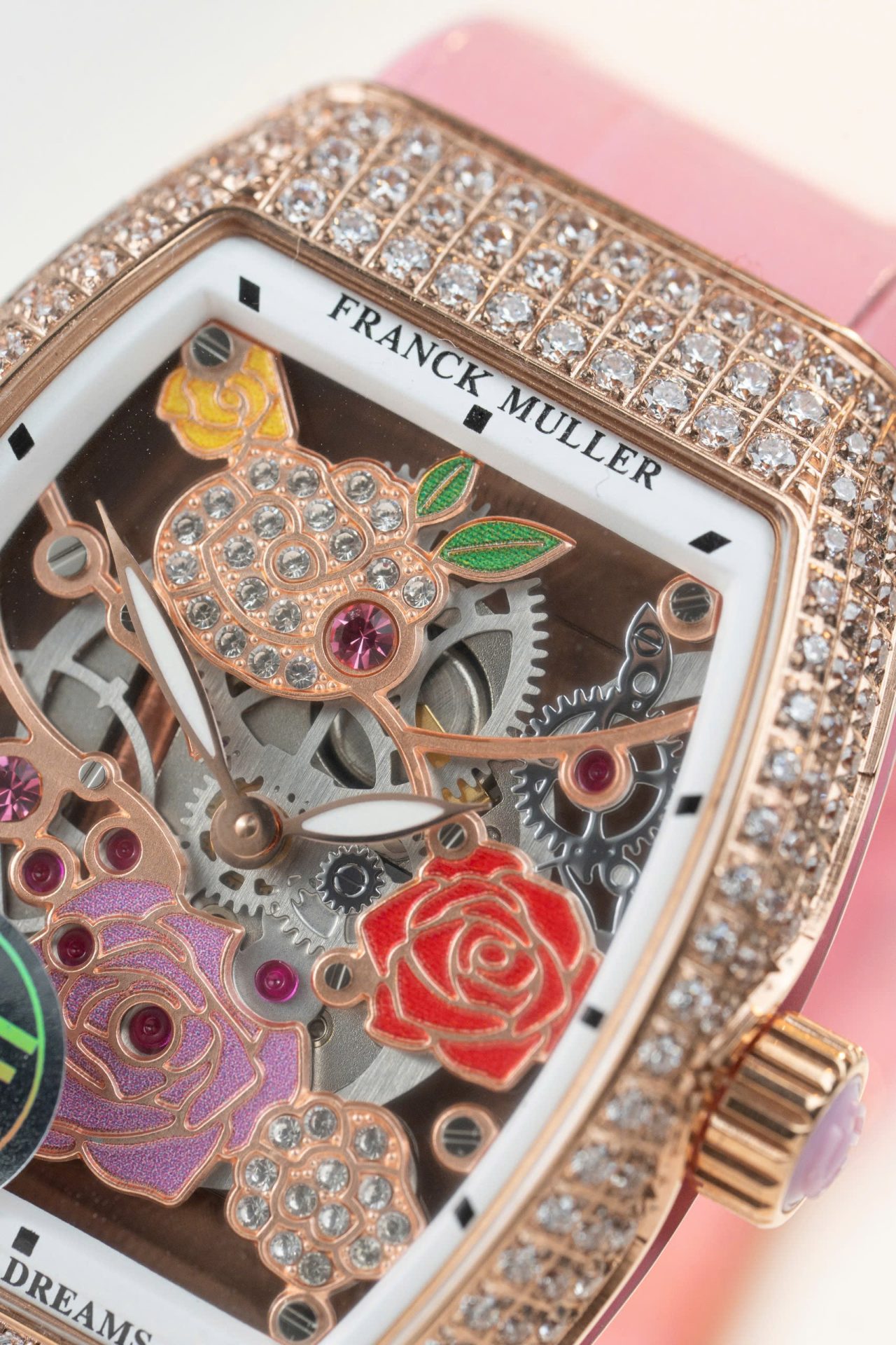 Franck Muller Replica Watches Vanguard V32 Skeleton Pink Flower Dial 36mm