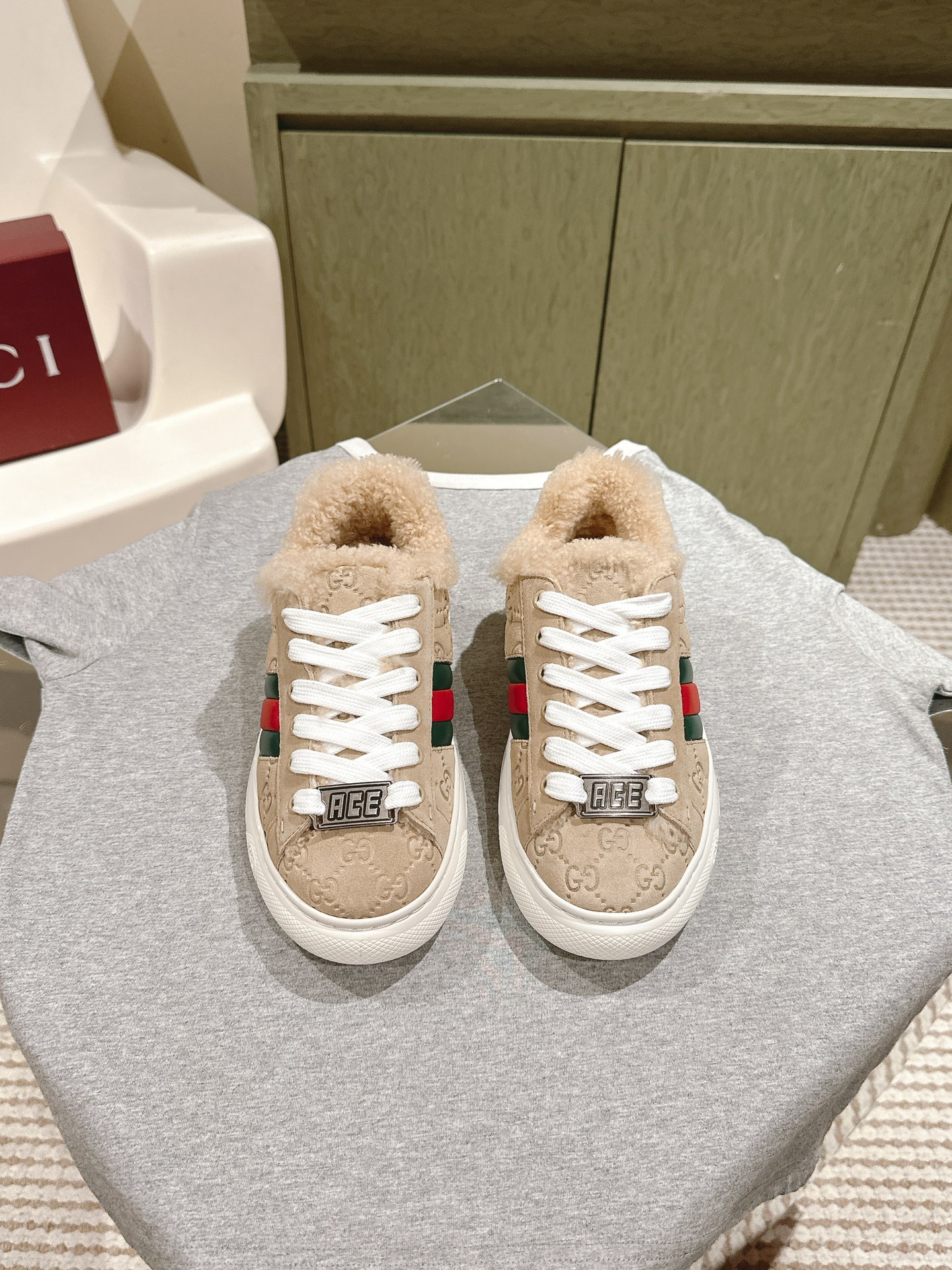 The Gucci 2024 Spring/Summer Small White Sneakers blend the brand’s iconic design with modern comfort. The upper features the classic GG pattern, while the soft lamb wool lining ensures comfort and luxury inside and out. The signature red-green stripes paired with the delicate metal lace buckles showcase the distinct charm of Gucci. Whether paired with casual wear or more formal attire, these sneakers can easily be styled, exuding an air of refined taste.