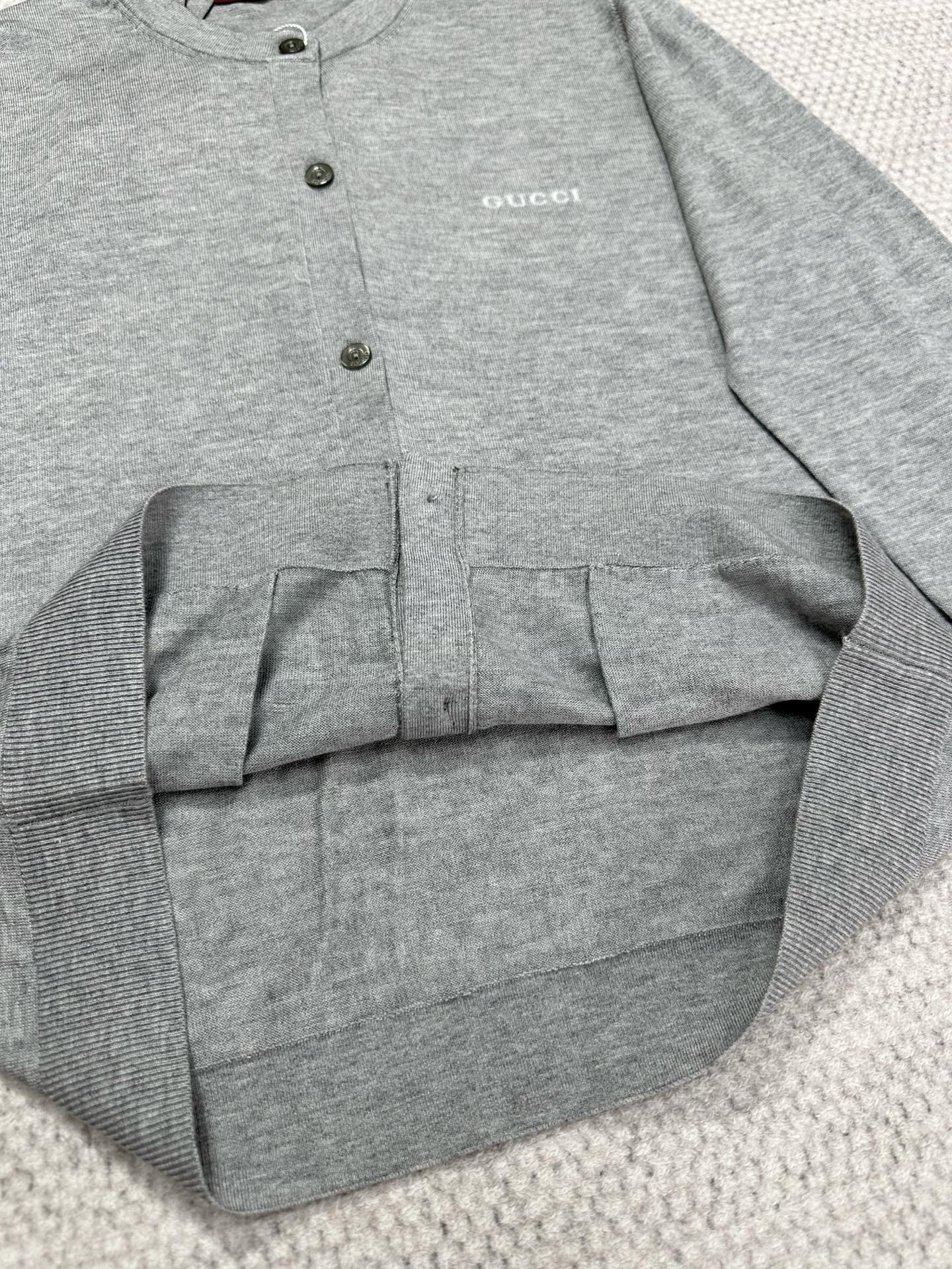 The Gucci 2025 Spring Collection GG Logo Wool & Silk Cardigan combines fashion and comfort effortlessly. Made from a 60% wool and 40% silk blend, this cardigan offers softness and comfort, perfect for spring wear. The GG logo design is simple yet elegant, showcasing the brand’s timeless charm. Every stitch and thread reflects Gucci’s high-quality craftsmanship, from the knitting technique to the choice of fabric.