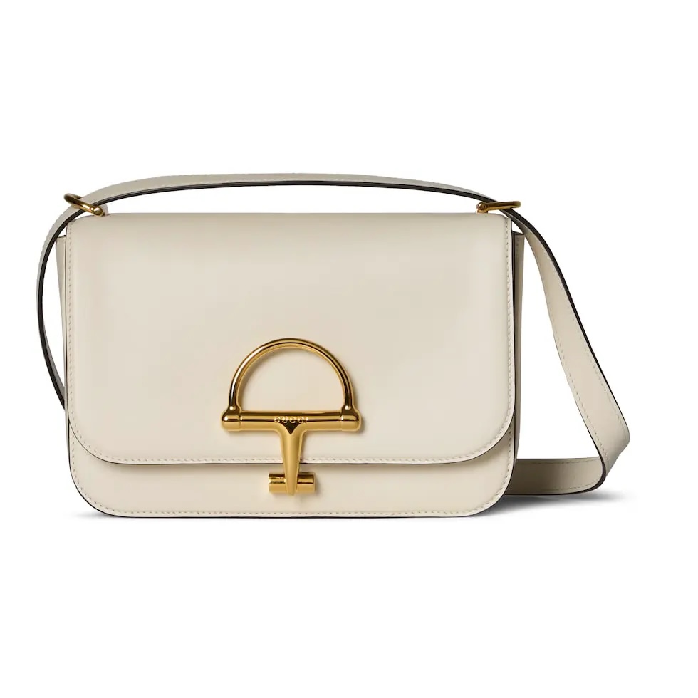 Made from polished Italian calfskin, the bag features clean architectural lines balanced by soft curvature. The sculptural horsebit clasp — a hallmark of Gucci’s equestrian legacy — anchors the design with understated sophistication.