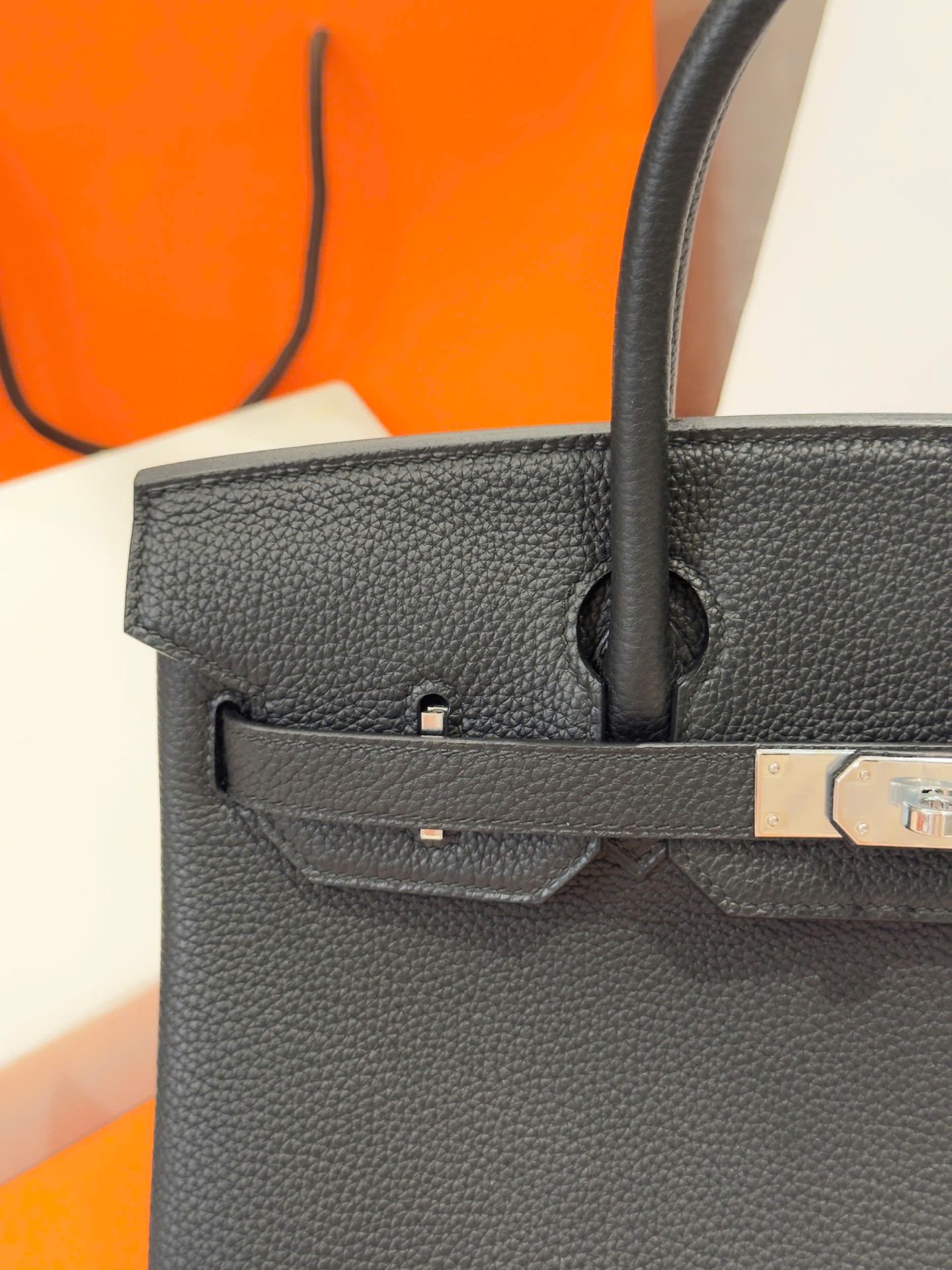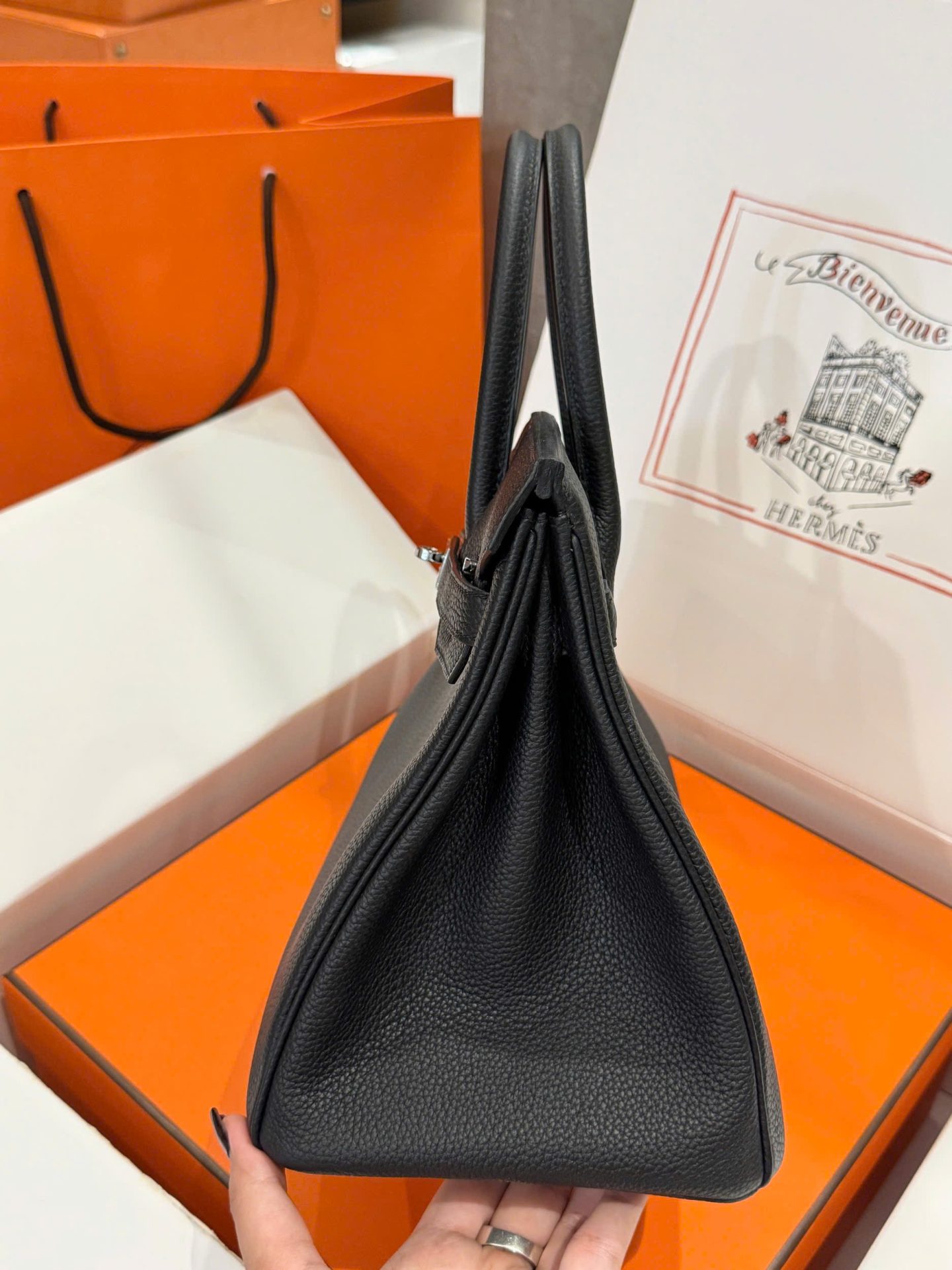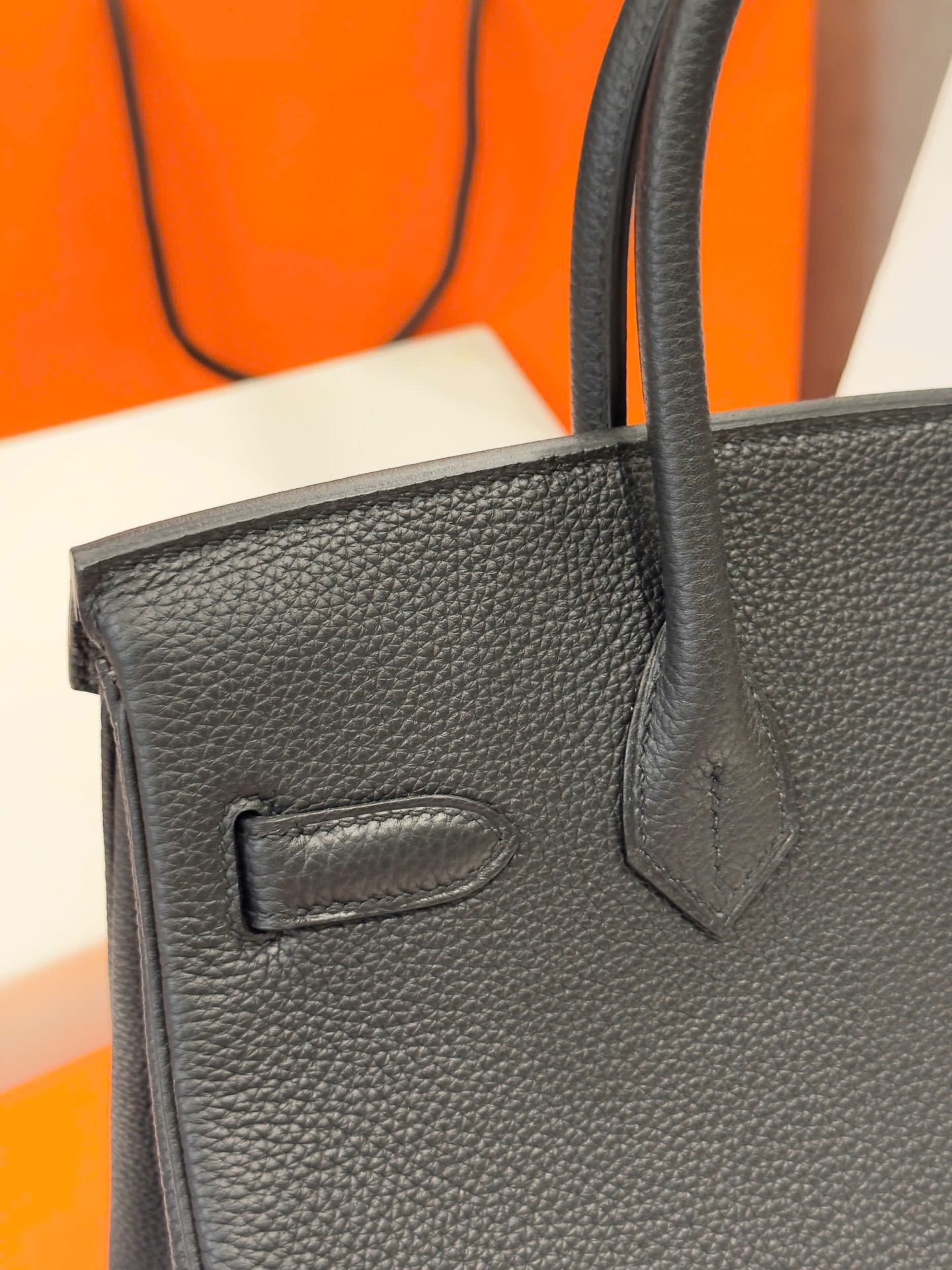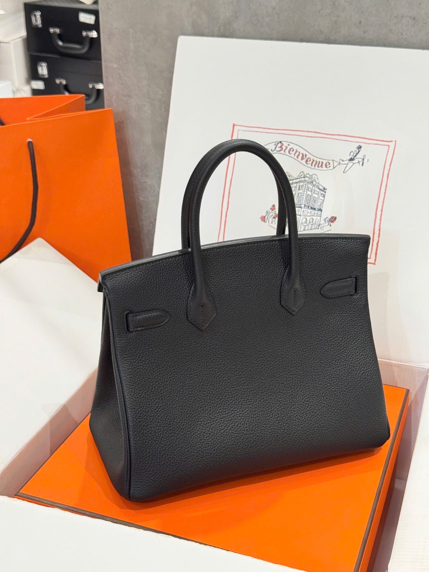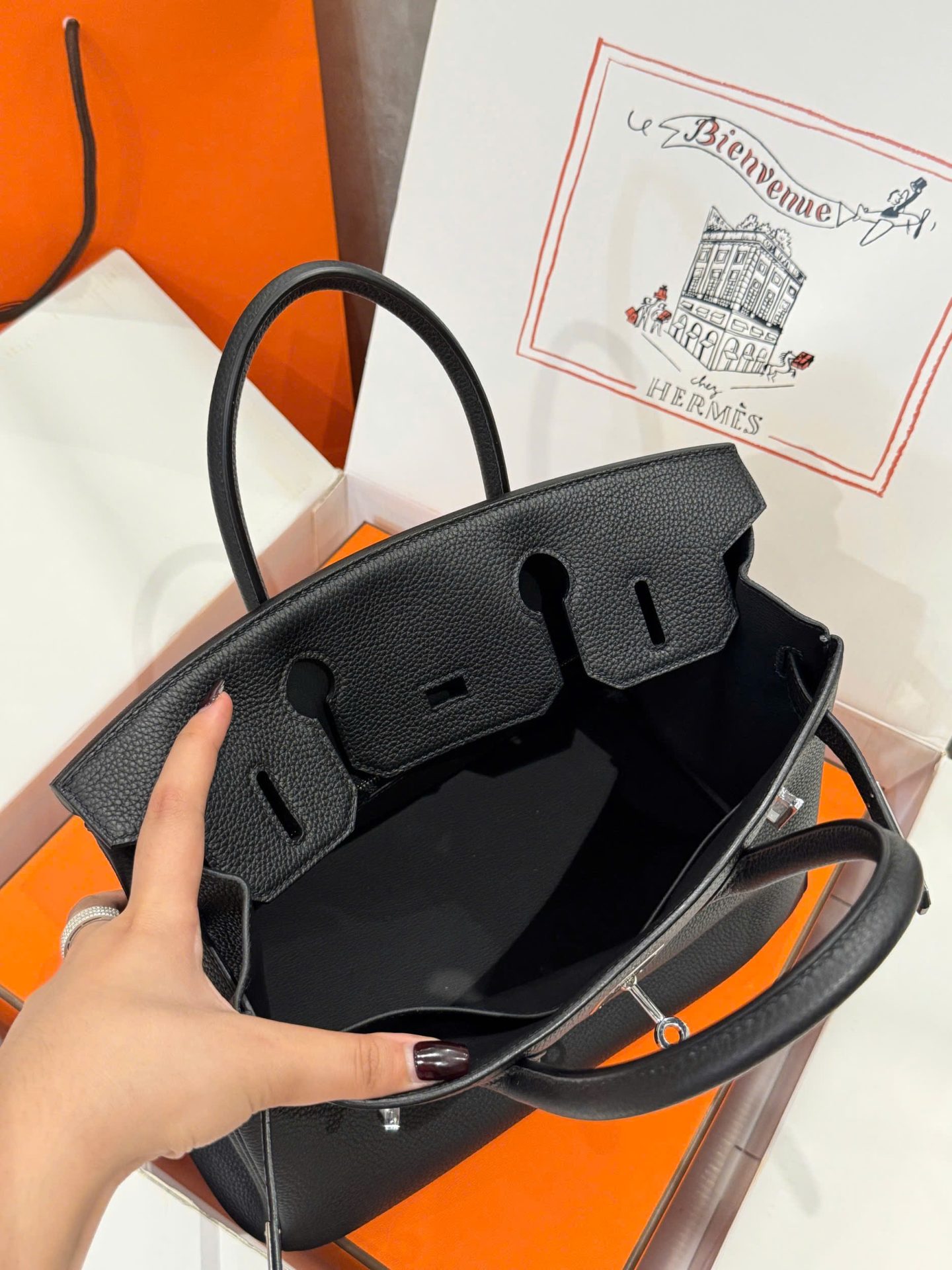 Hermes Birkin Like Auth Women-s Handbag Black White Lock 30cm