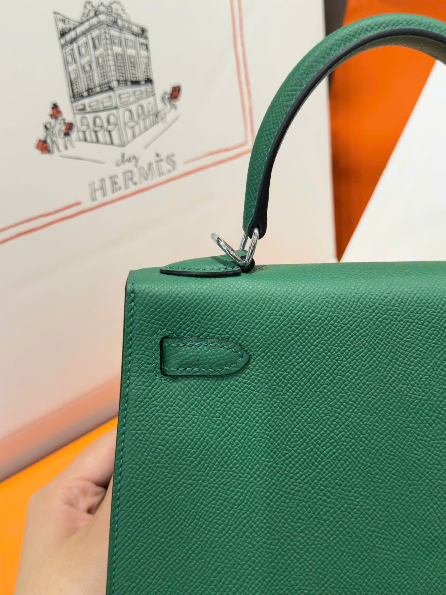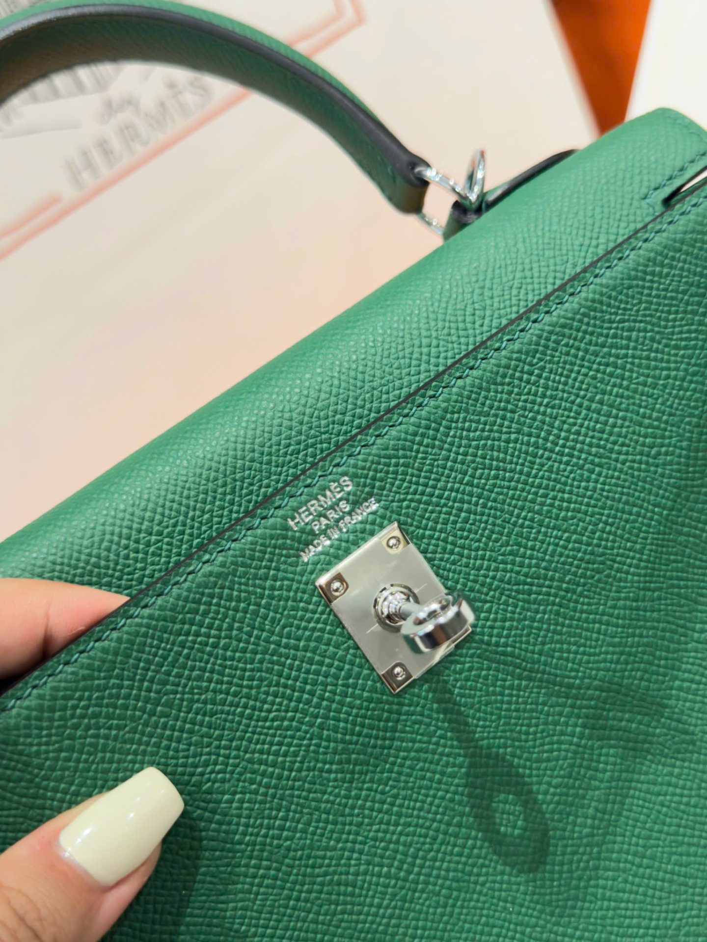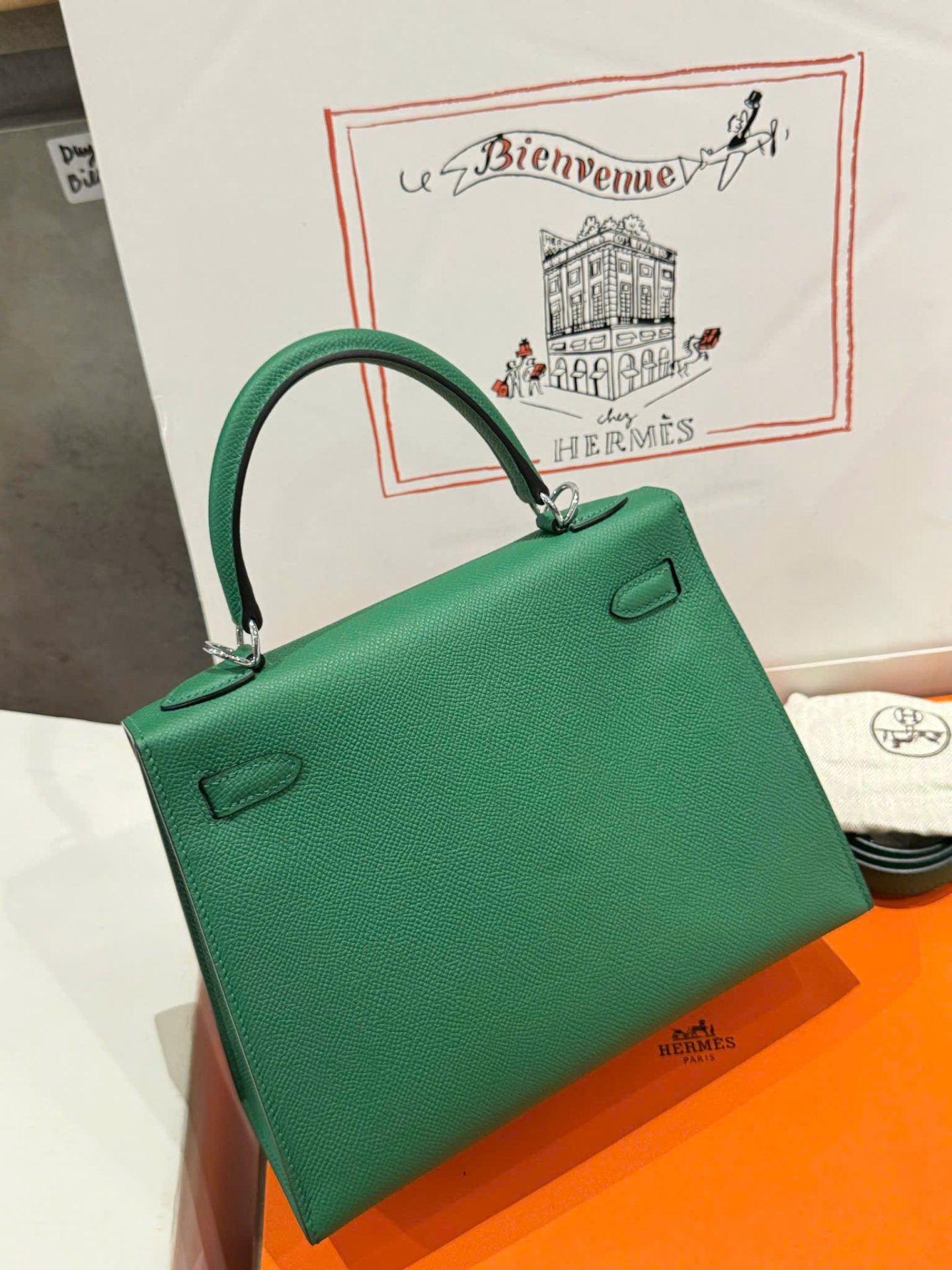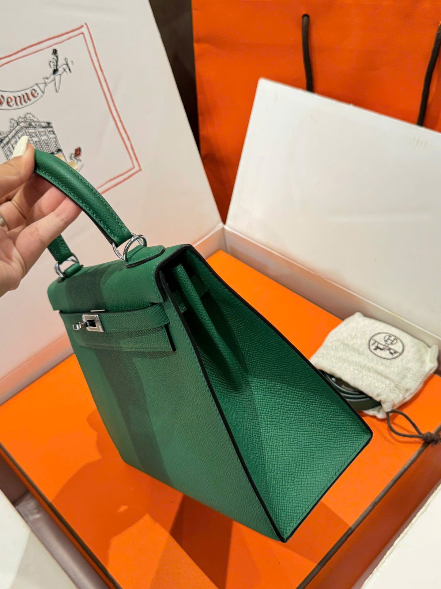 Hermes Kelly Like Auth Women-s Handbag Green White Lock 25cm