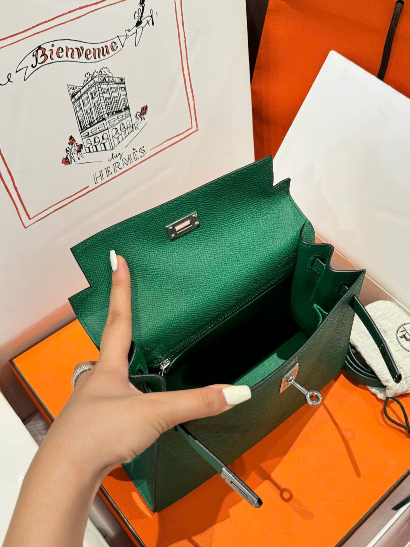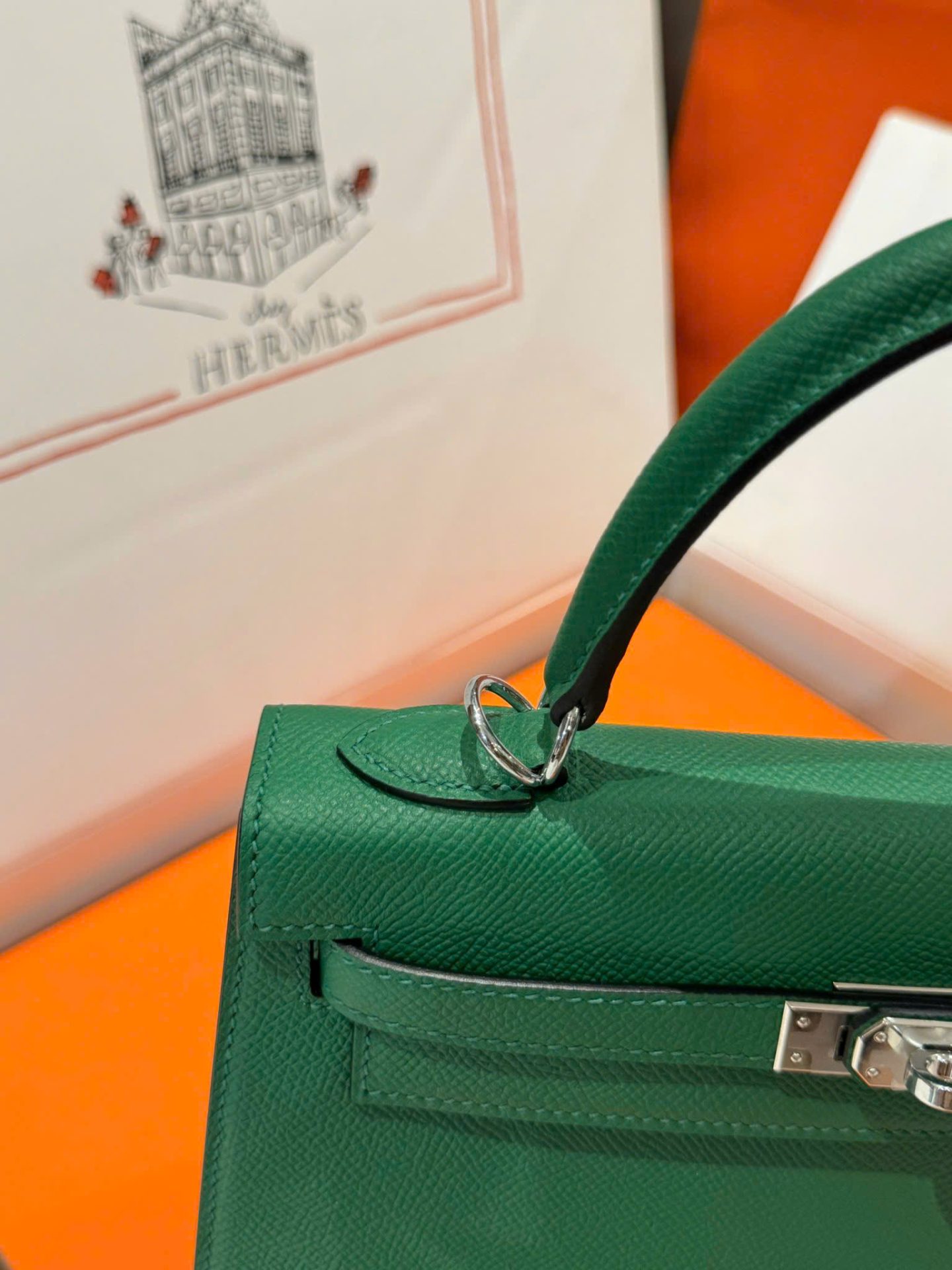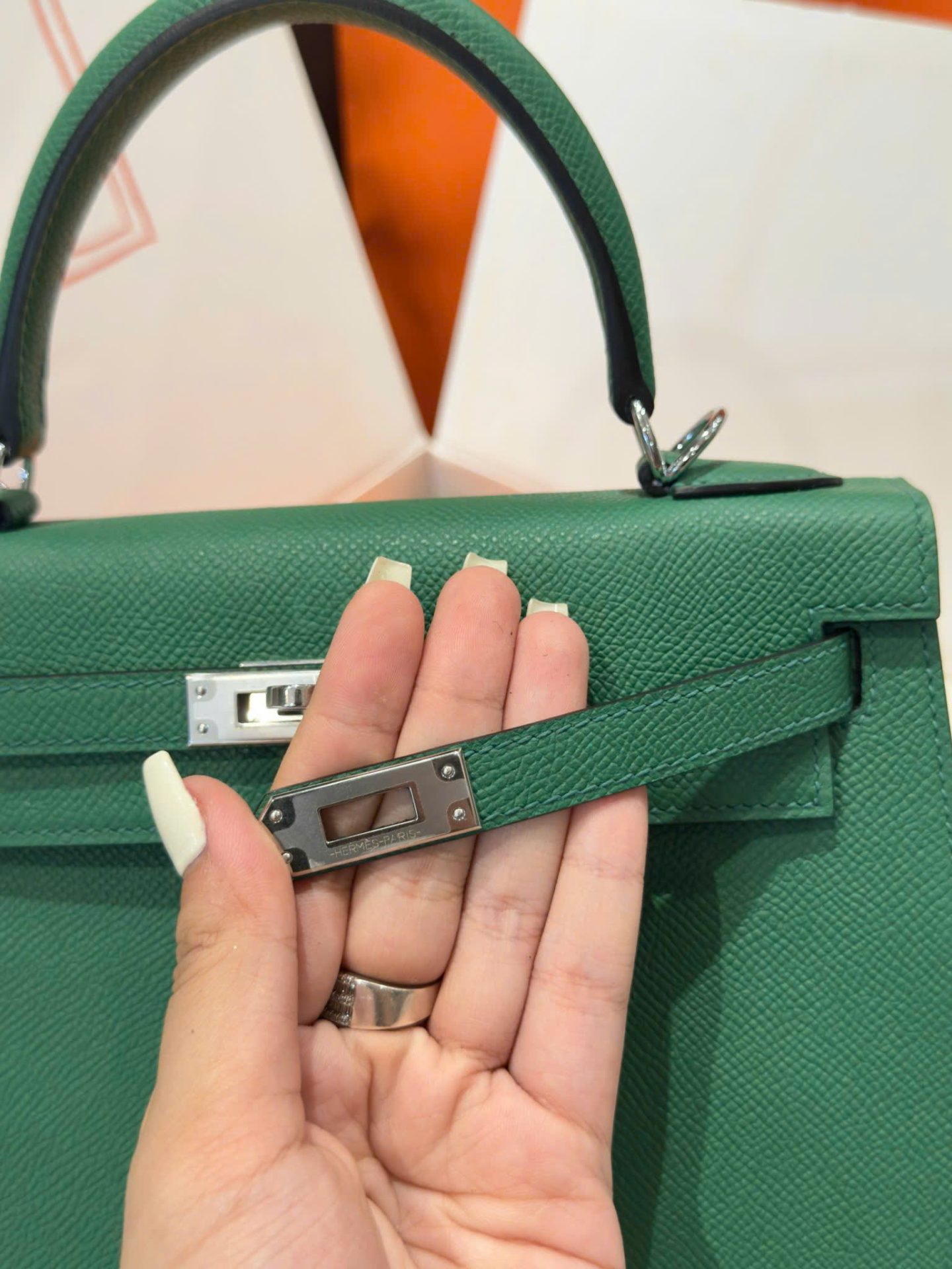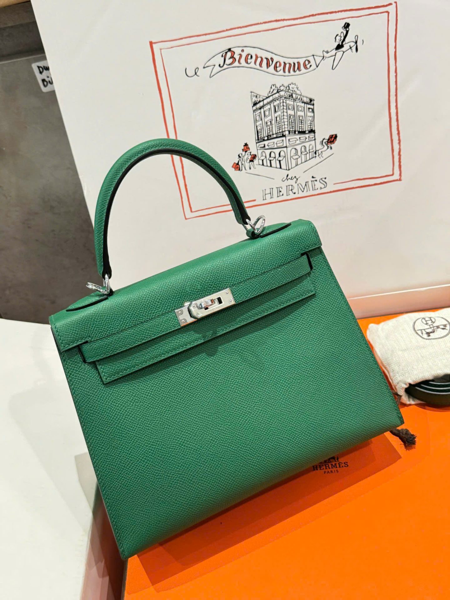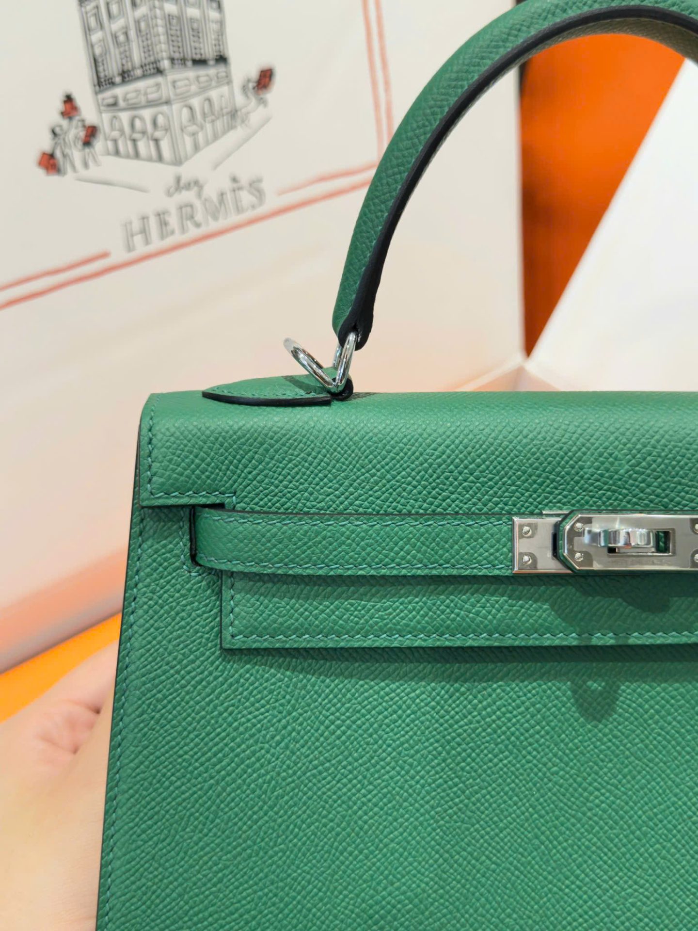 Hermes Kelly Like Auth Women-s Handbag Green White Lock 25cm