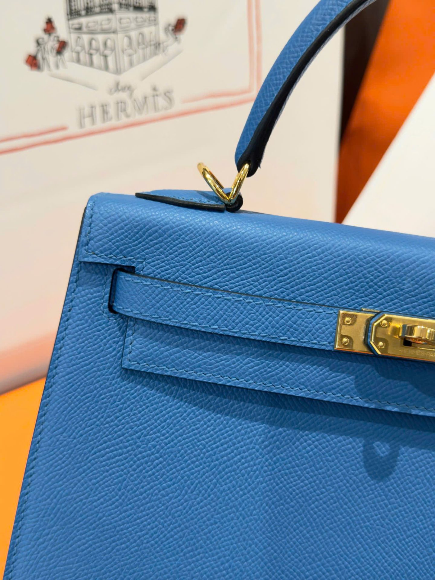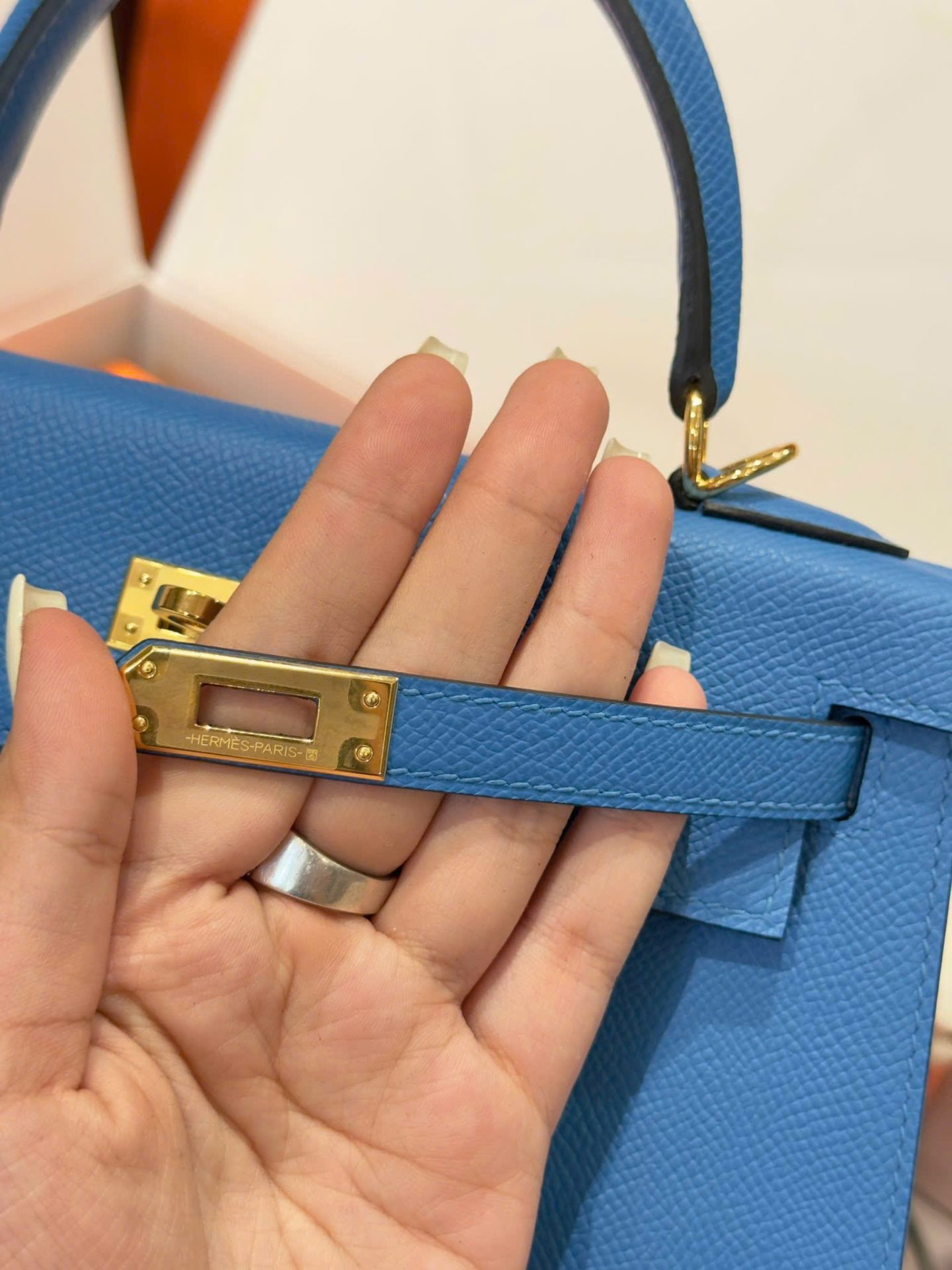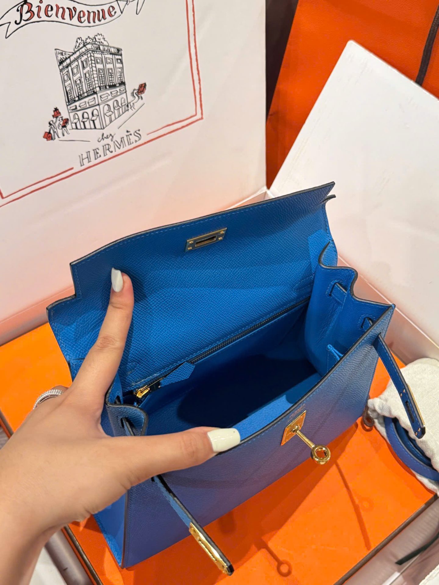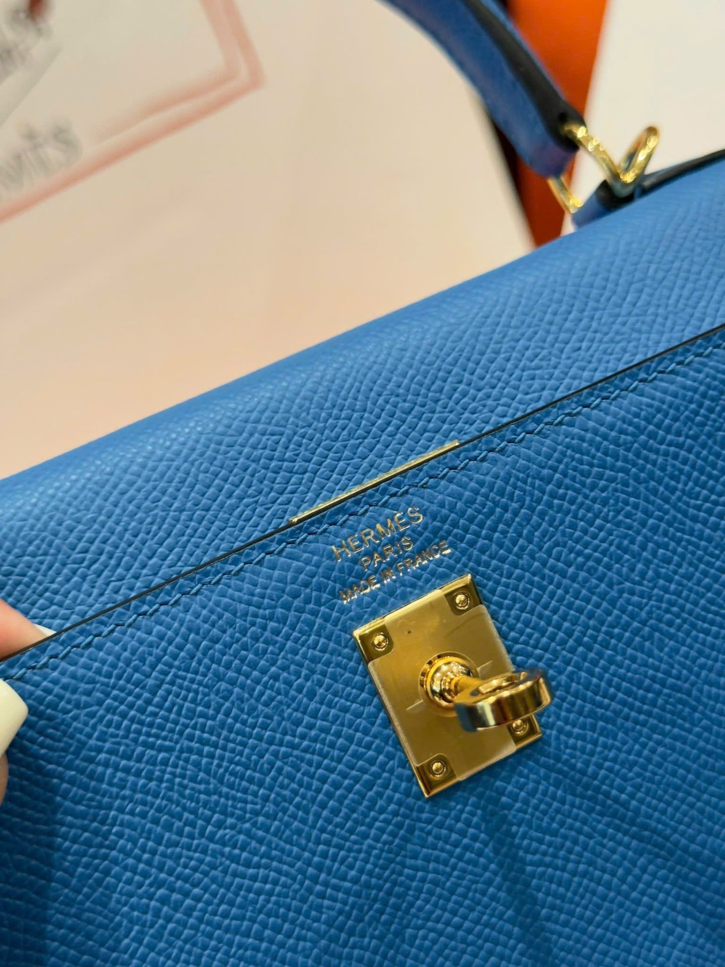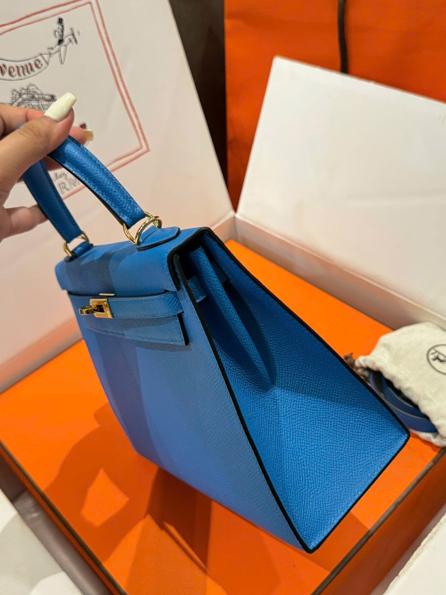 Hermes Kelly Women’s Handbag Blue Gold Lock Like Auth