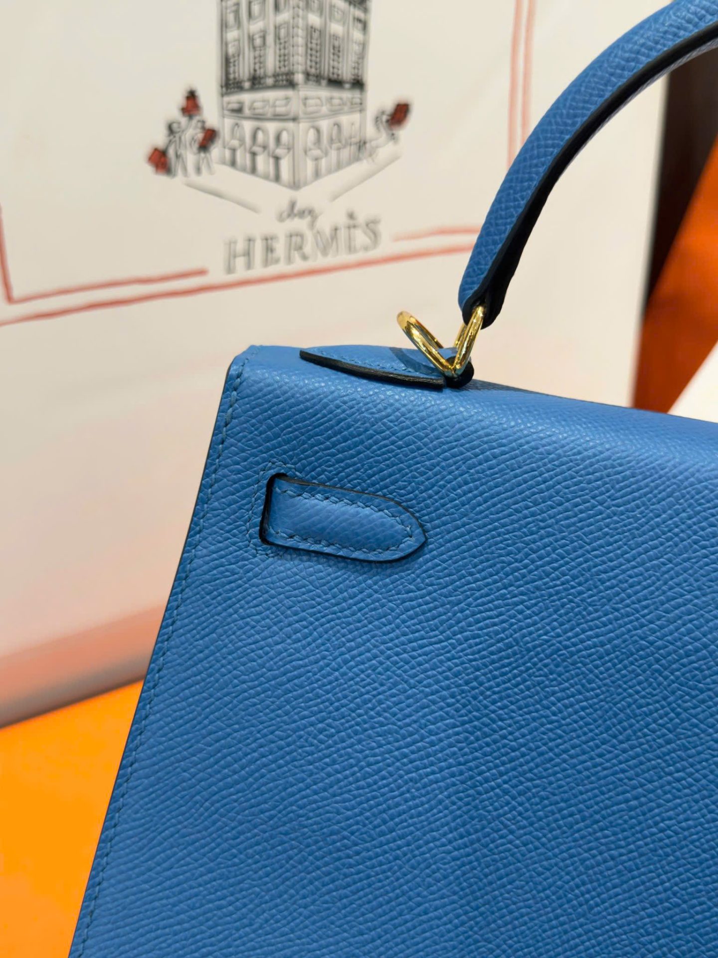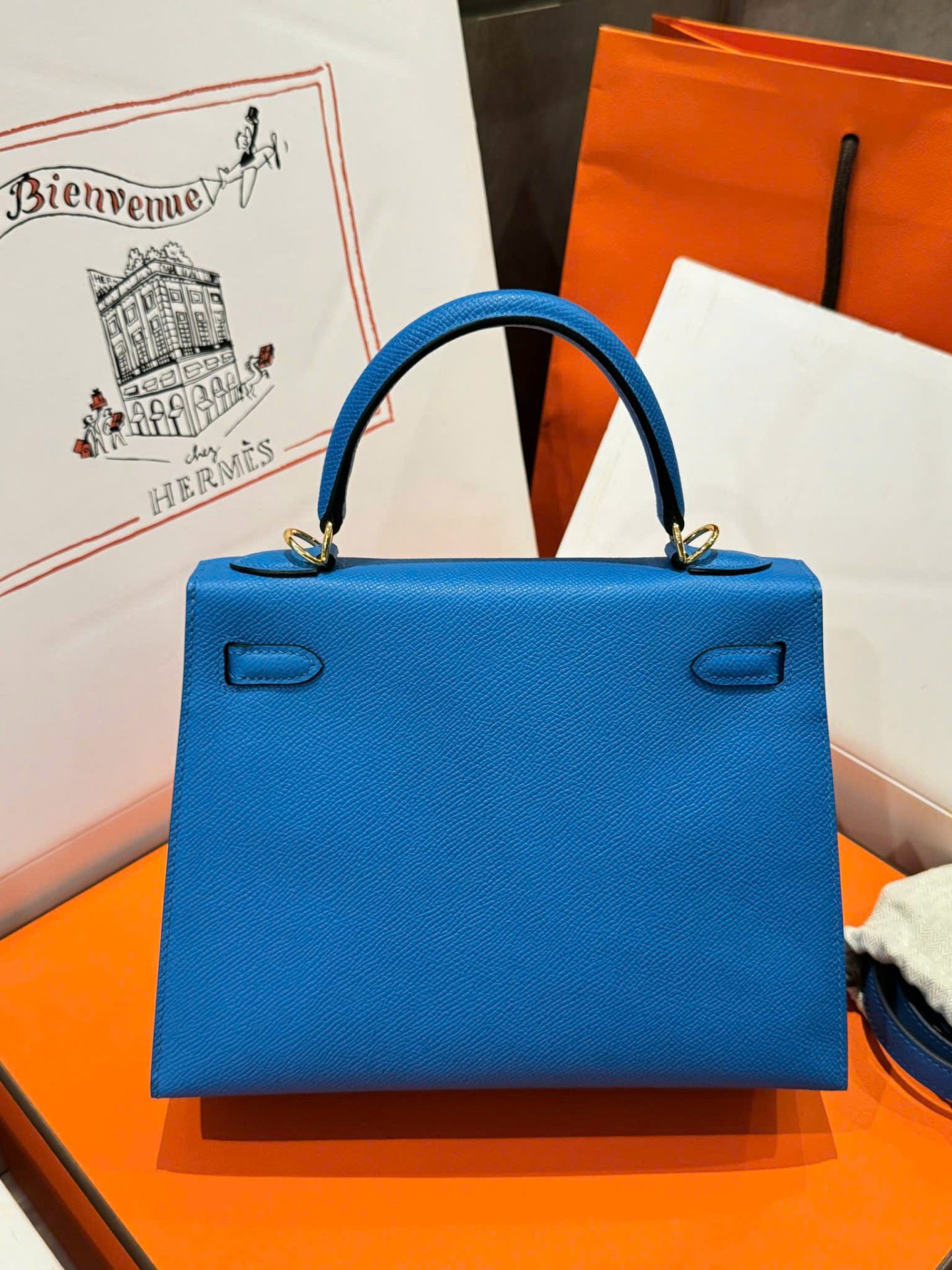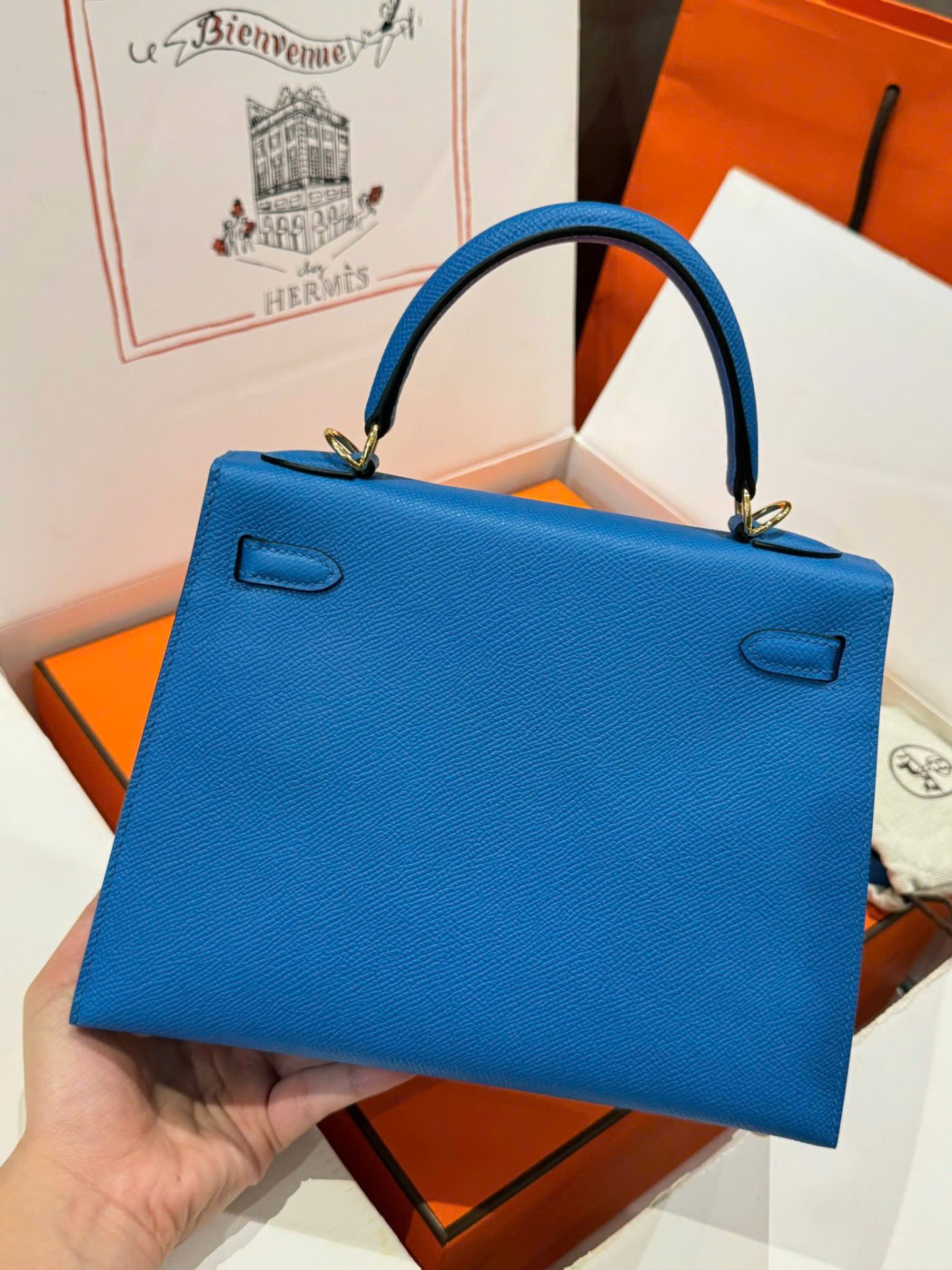 Hermes Kelly Women-s Handbag Blue Gold Lock Like Auth 25cm