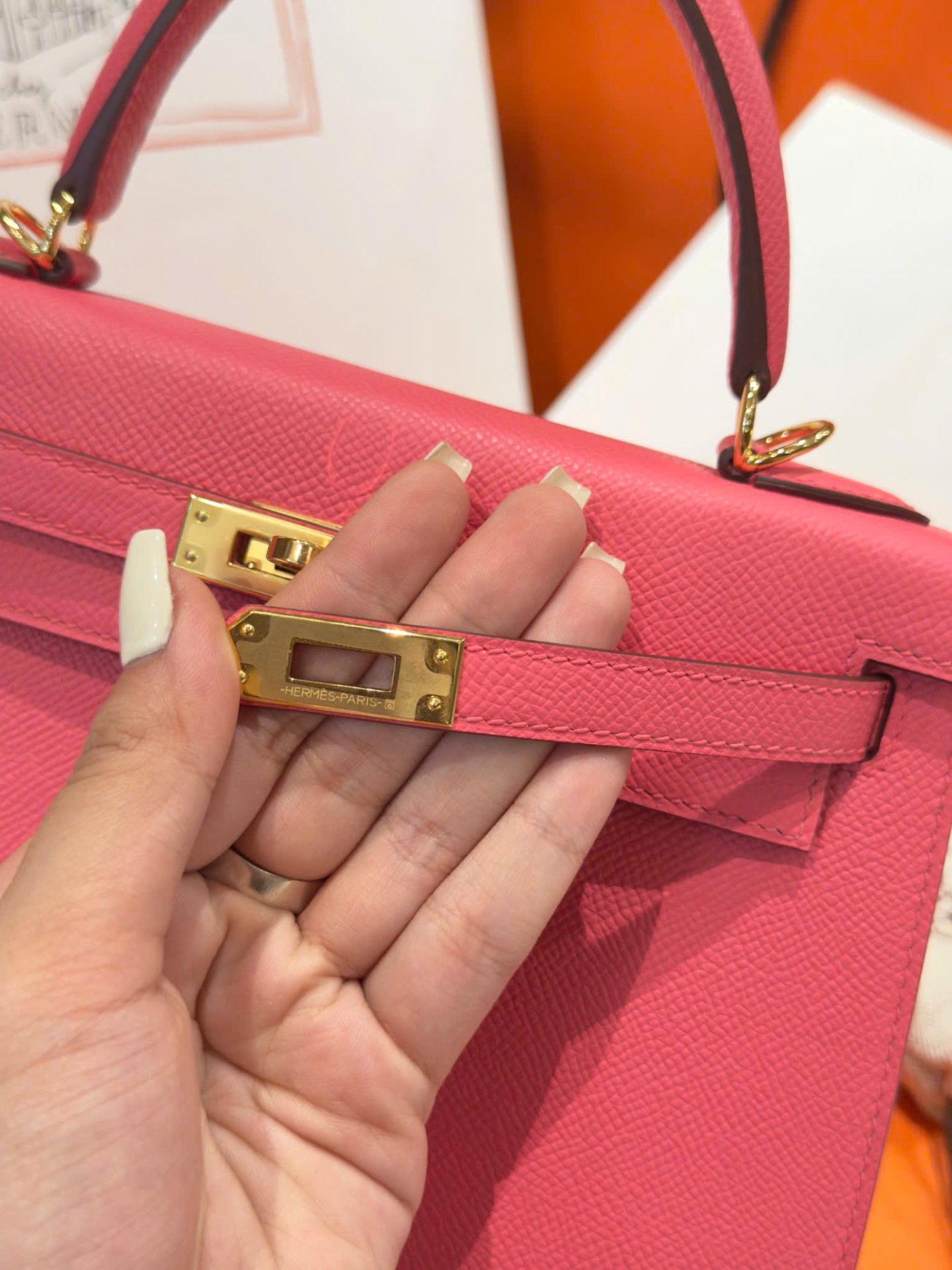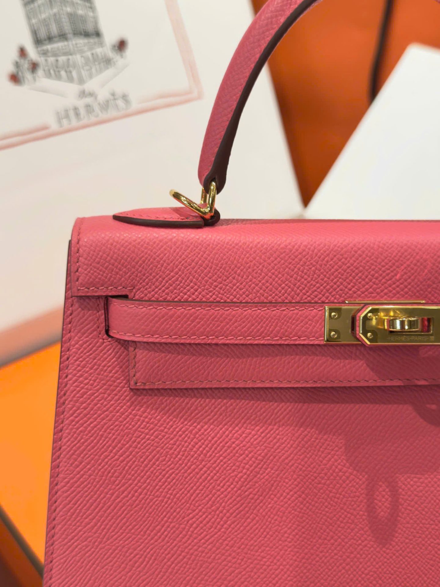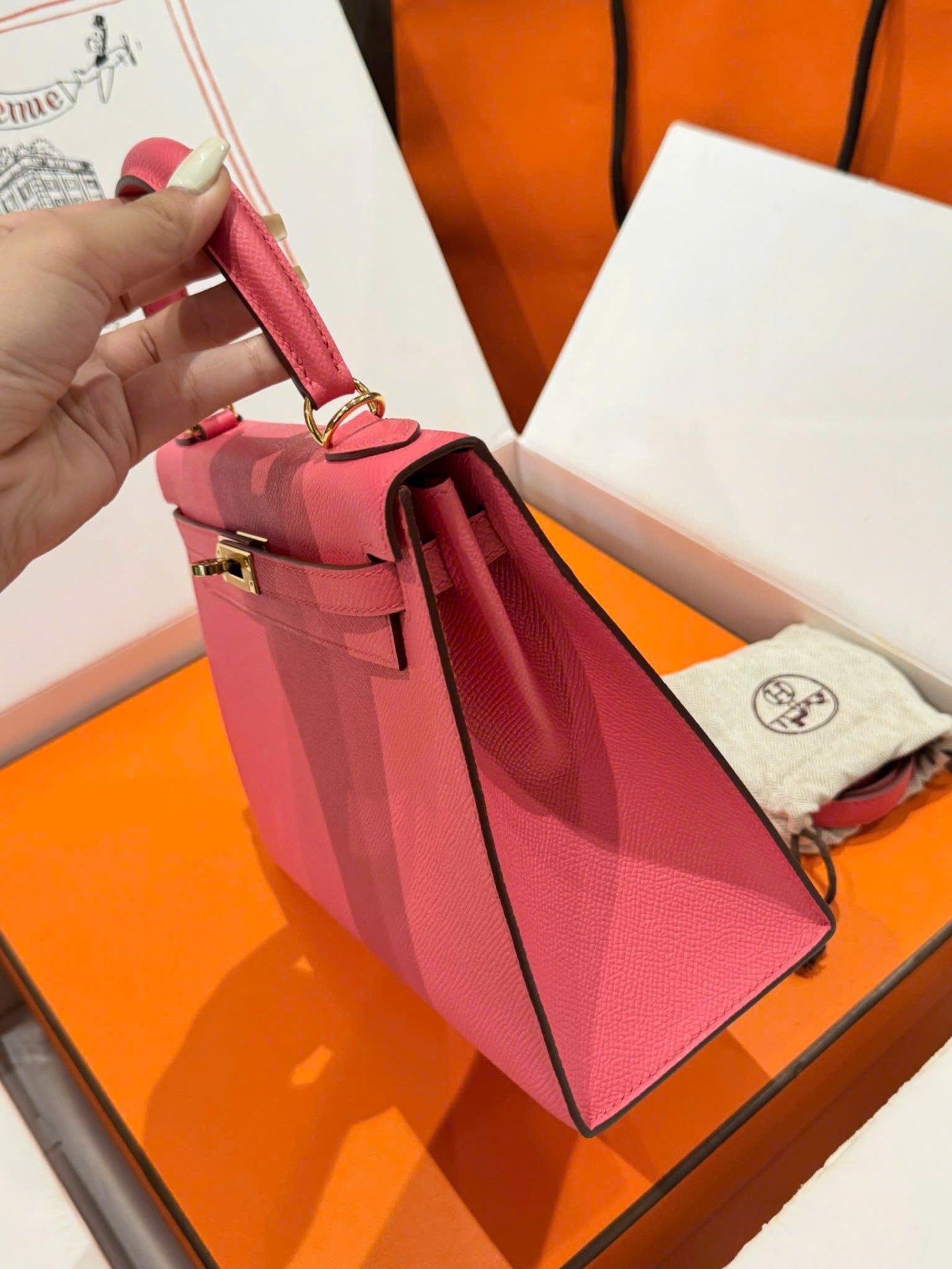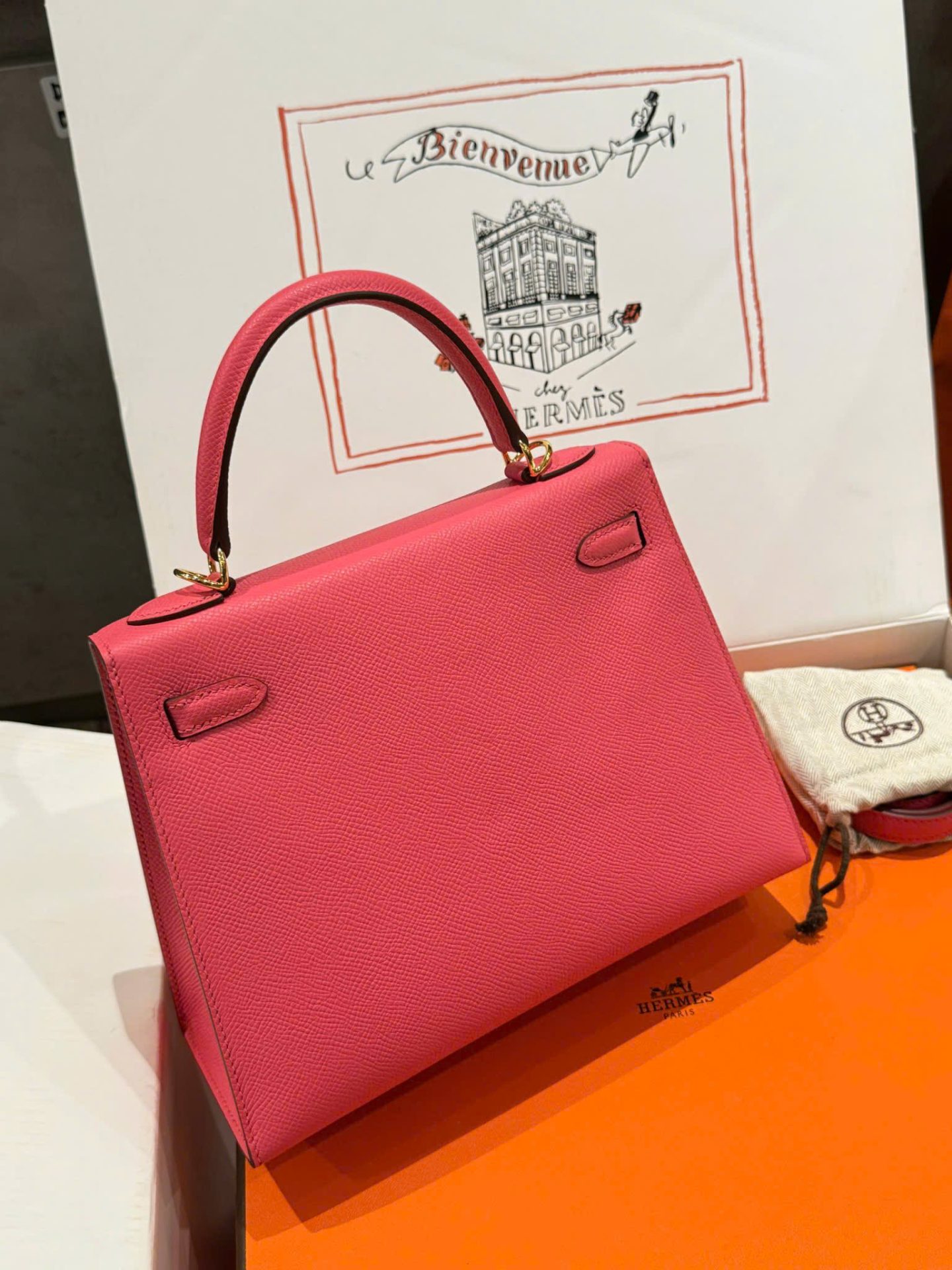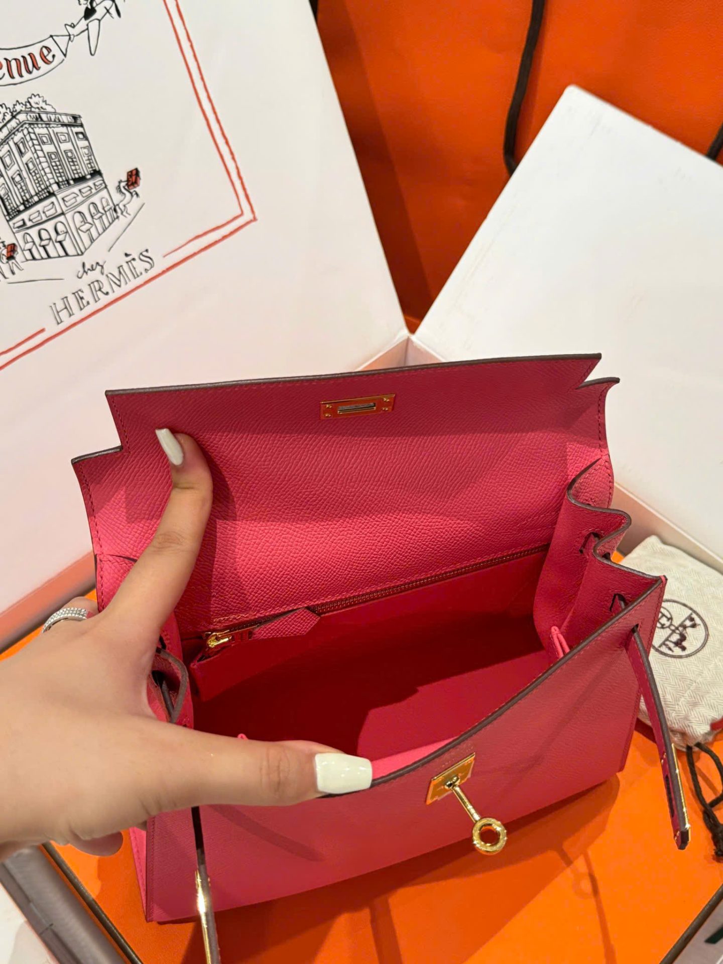 Hermes Kelly Women-s Handbag Dark Pink Gold Lock 25cm