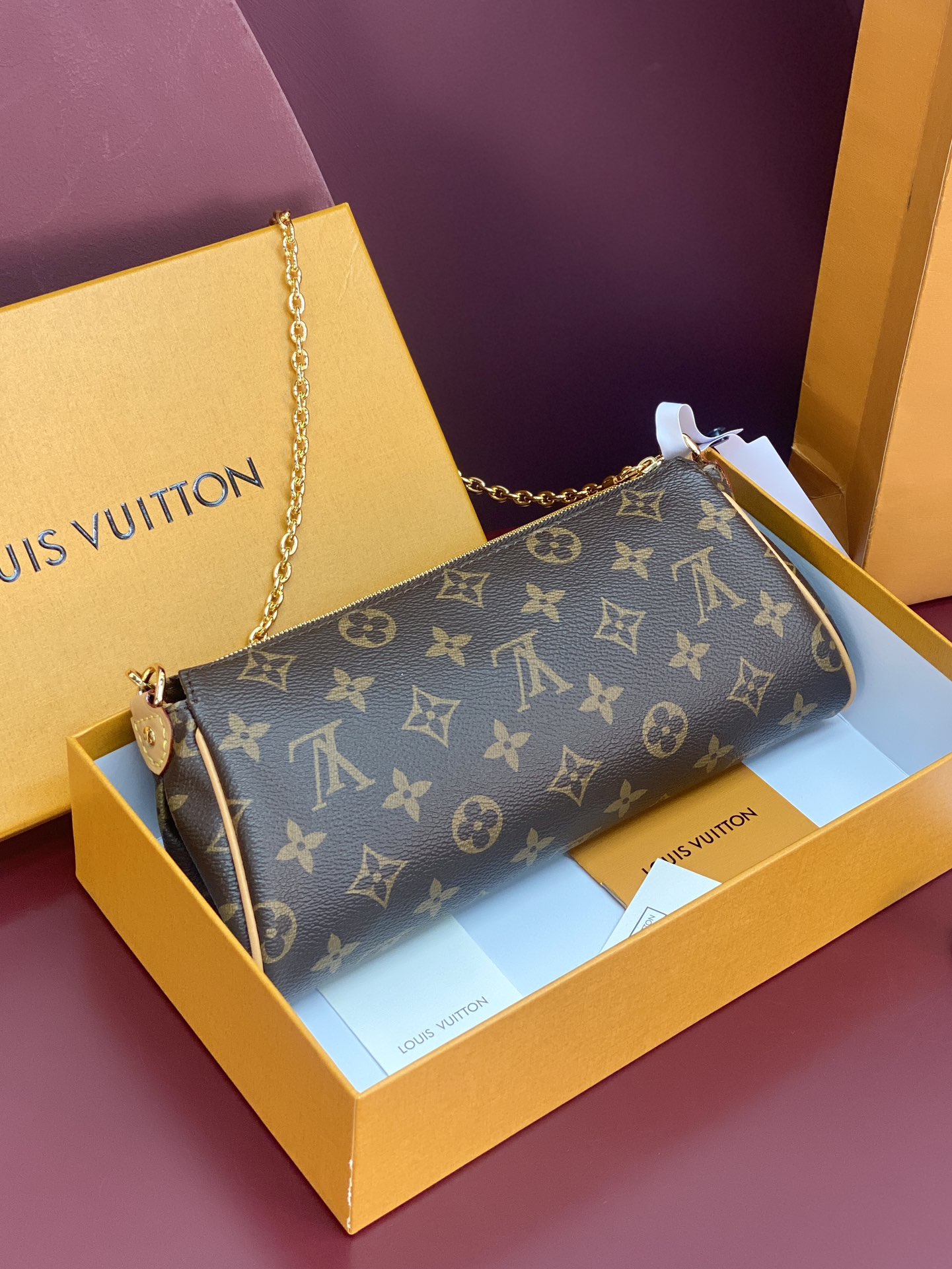 The Louis Vuitton Pochette Eva handbag features a classic Monogram canvas with leather trim, demonstrating the brand’s signature elegance and exquisite craftsmanship. Its unique design blends classic elements with a modern touch, making it a highly versatile piece that is perfect for both casual and formal occasions.
