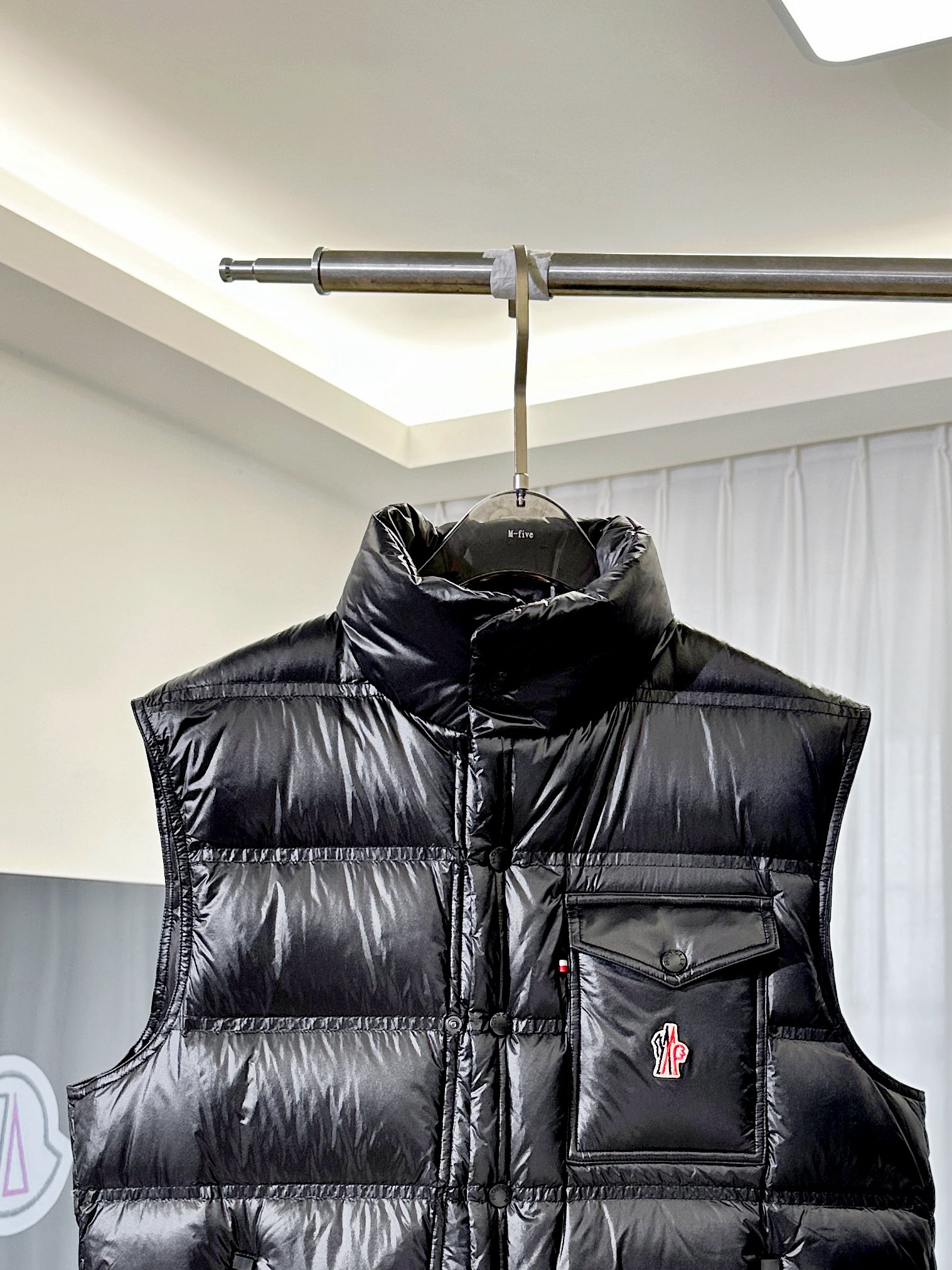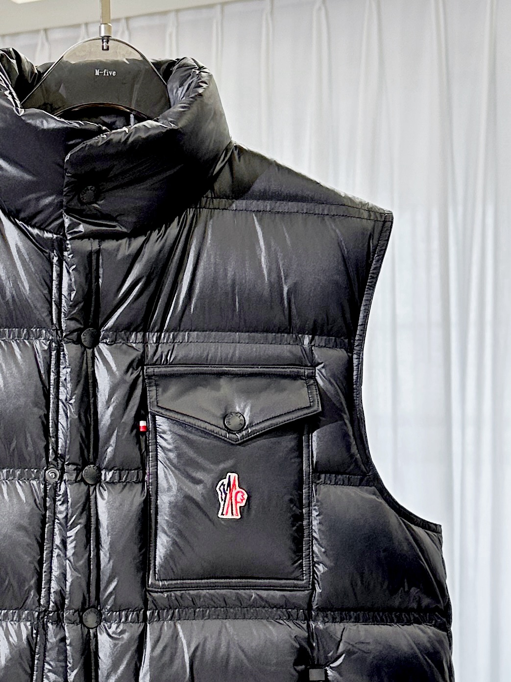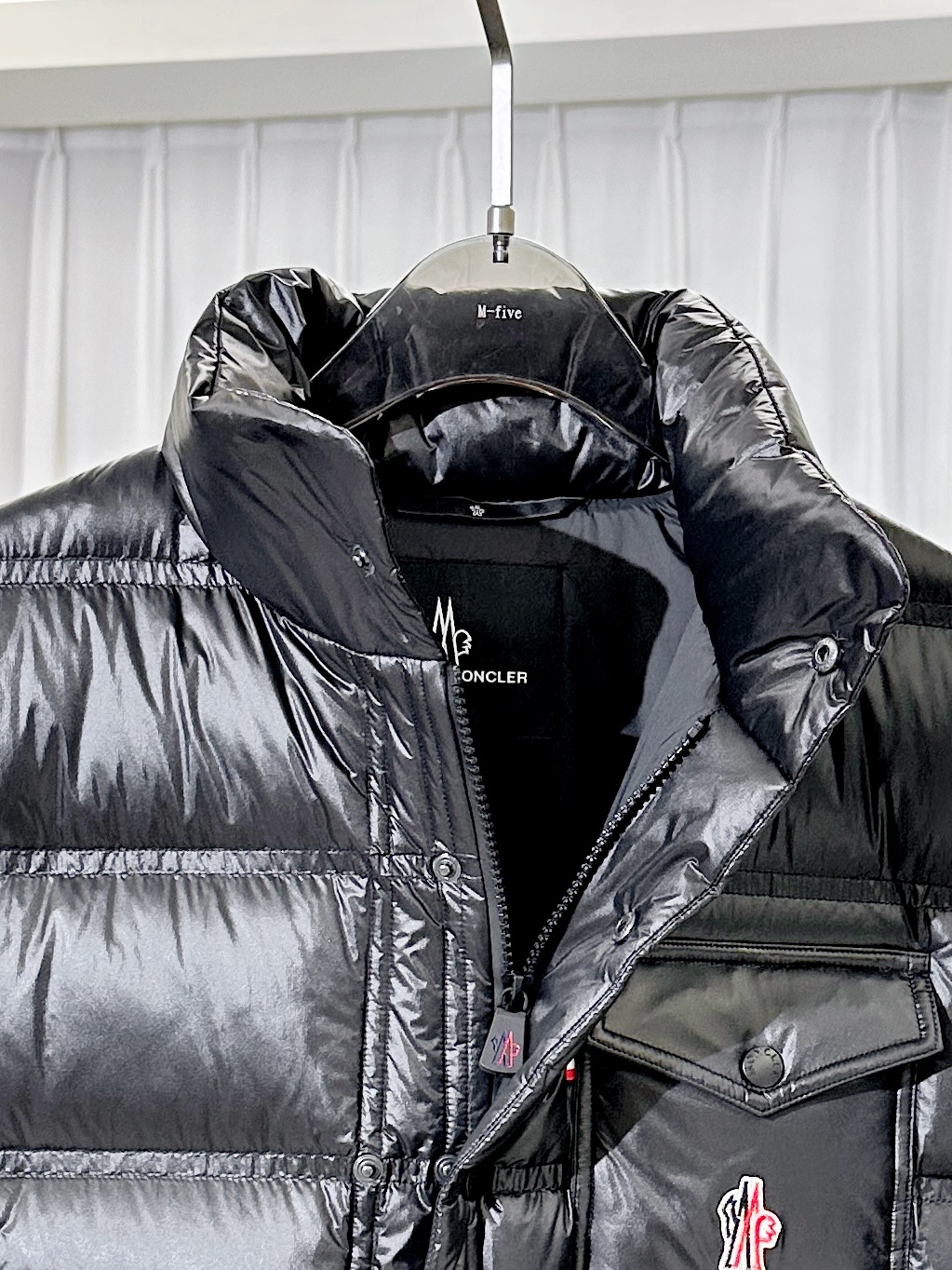 The stand collar and flap chest pocket highlight Moncler’s technical precision, while the sleek silhouette ensures effortless versatility. Perfect for alpine adventures or everyday layering, it combines functional innovation with timeless sophistication.
