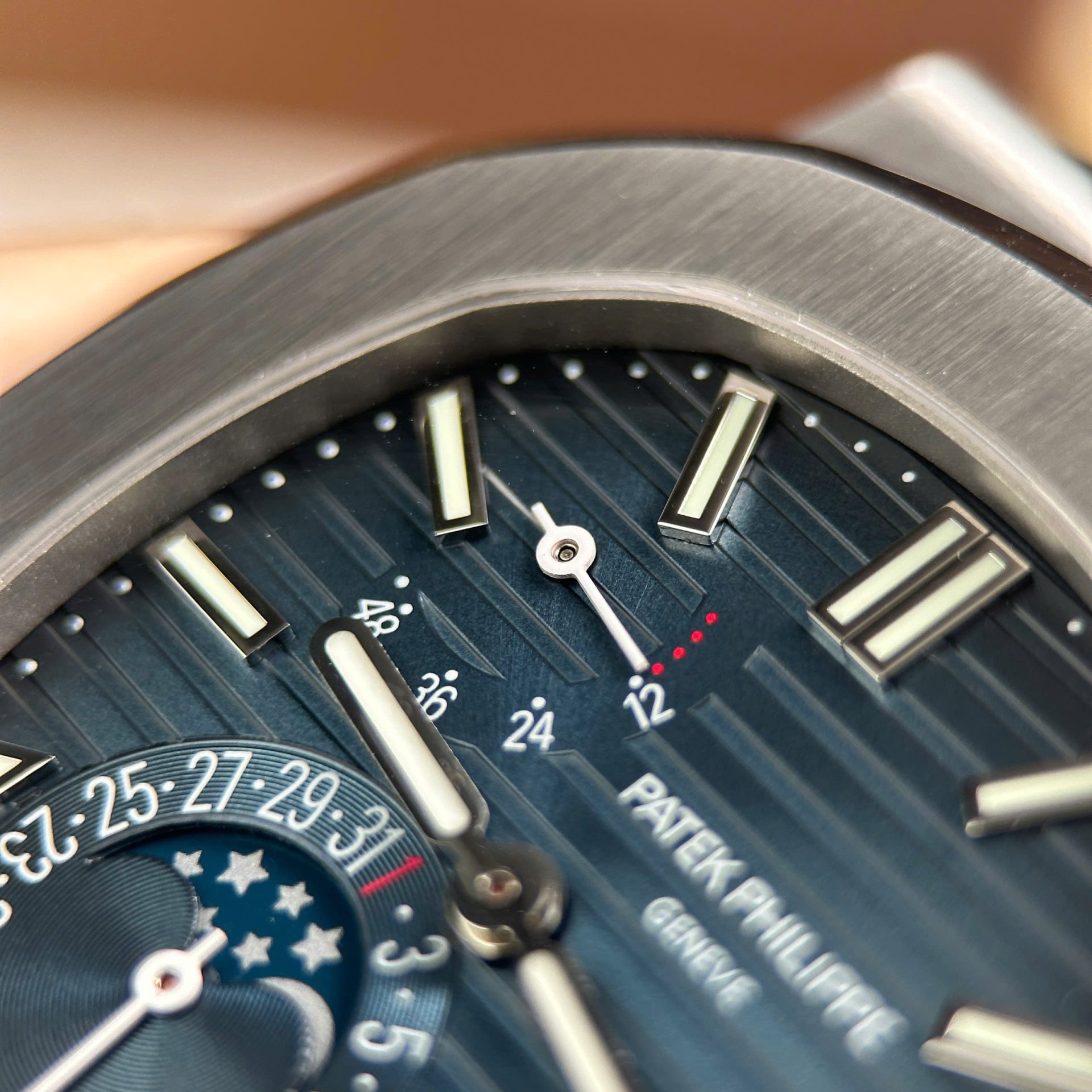 Patek Philippe Nautilus 5712 Knock Off Watches Blue Dial Leather Strap Engraving Machine PPF Factory 40mm