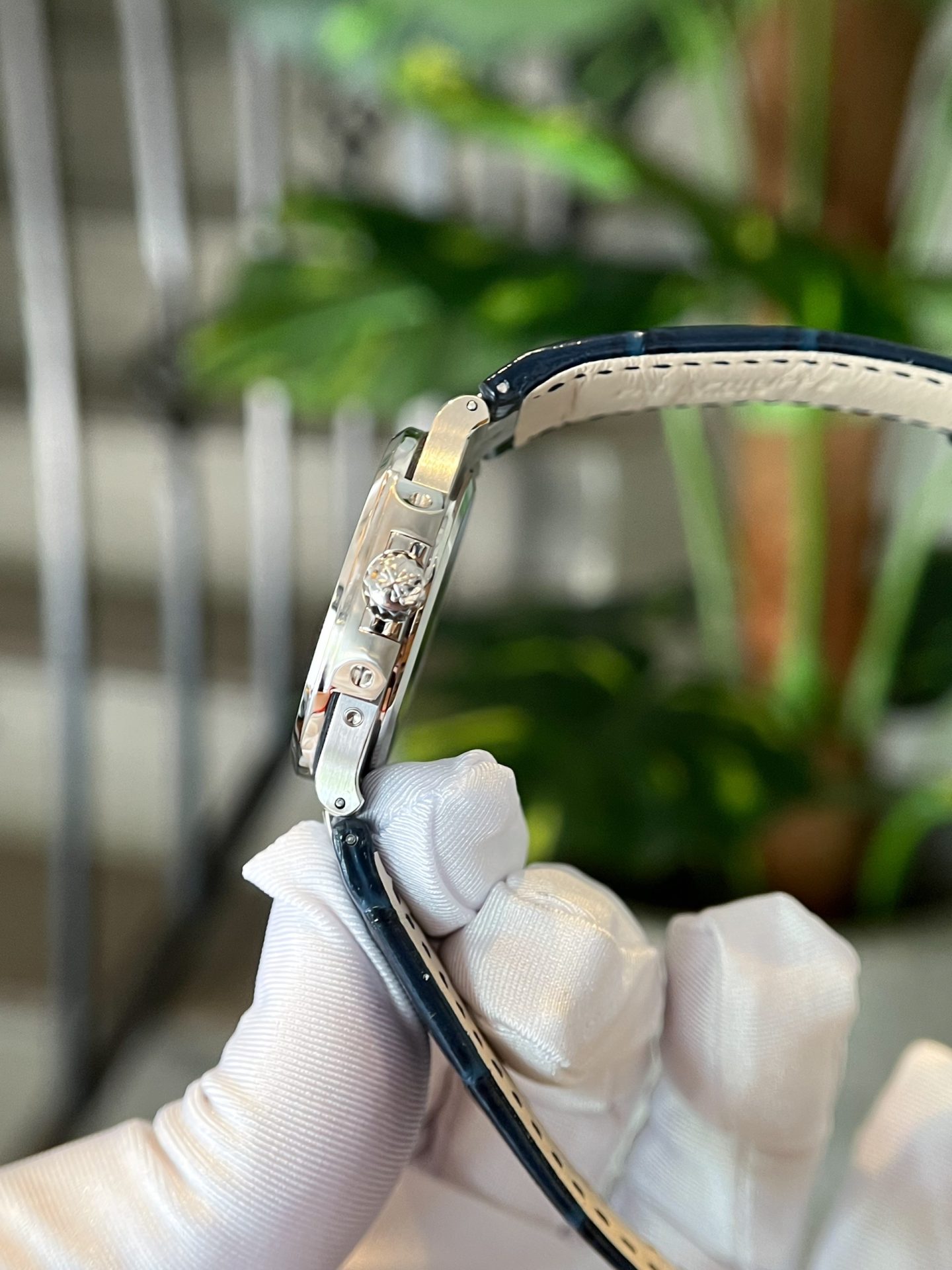 Patek Philippe Replica Watch Nautilus 5724 Custom Moissanite Diamonds Leather Strap 40mm