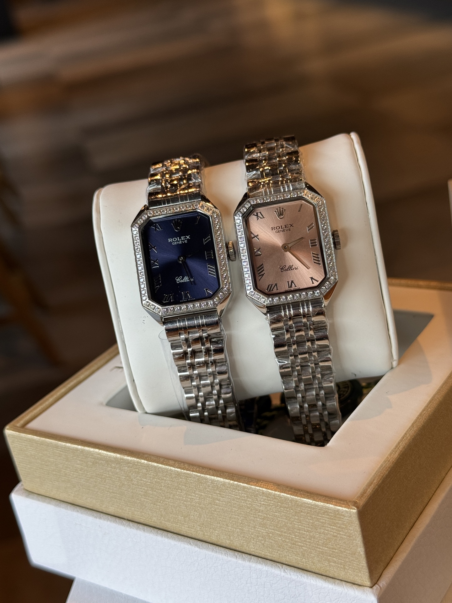 The Rolex 1970’s vintage ladies watch pays homage to the classic style of the 1970s with its signature square dial and unique design. The watch is available in several vibrant dial colors, including blue, pink, and green, each exuding distinct elegance. Powered by a Swiss quartz movement, the watch ensures high precision and stability. The design combines a refined metal bracelet that adds to the overall luxurious feel and comfort. The dial features exquisite surface finishing that balances gloss and texture, making it perfect for all occasions.
