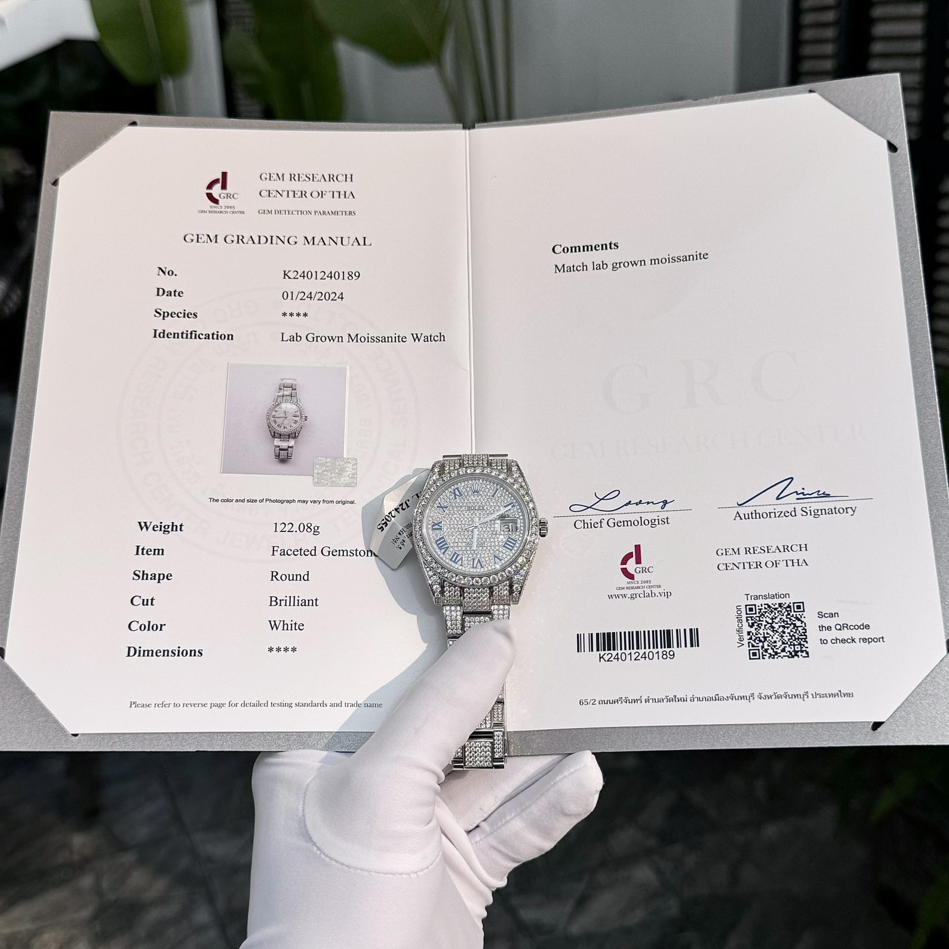 | Strap | Stainless steel + Moissanite |
