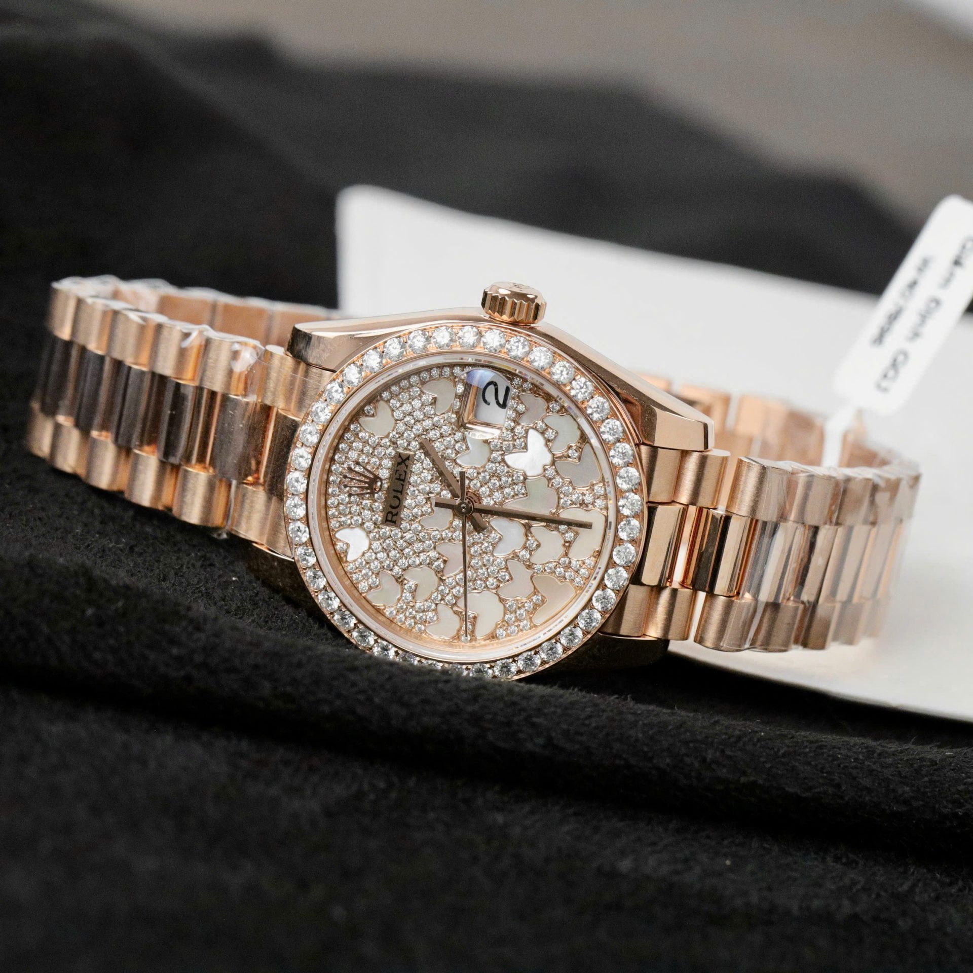 Rolex DateJust Butterfly Dial Copies Watches Rose Gold Wrapped 18K + Diamonds Moissanite 31mm