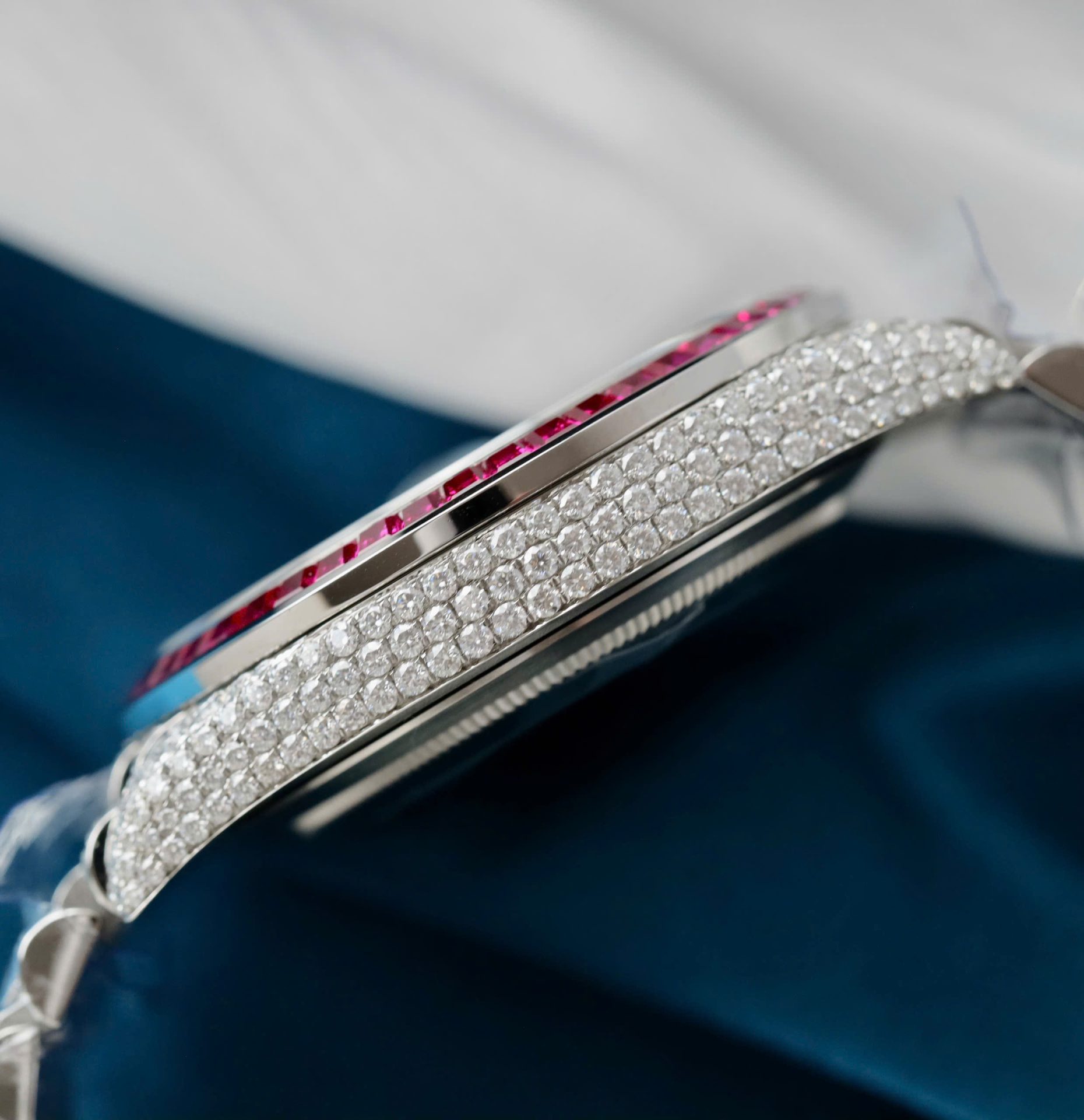 Rolex DateJust Copies Watches Ruby + Diamond Moissanite Custom 41mm