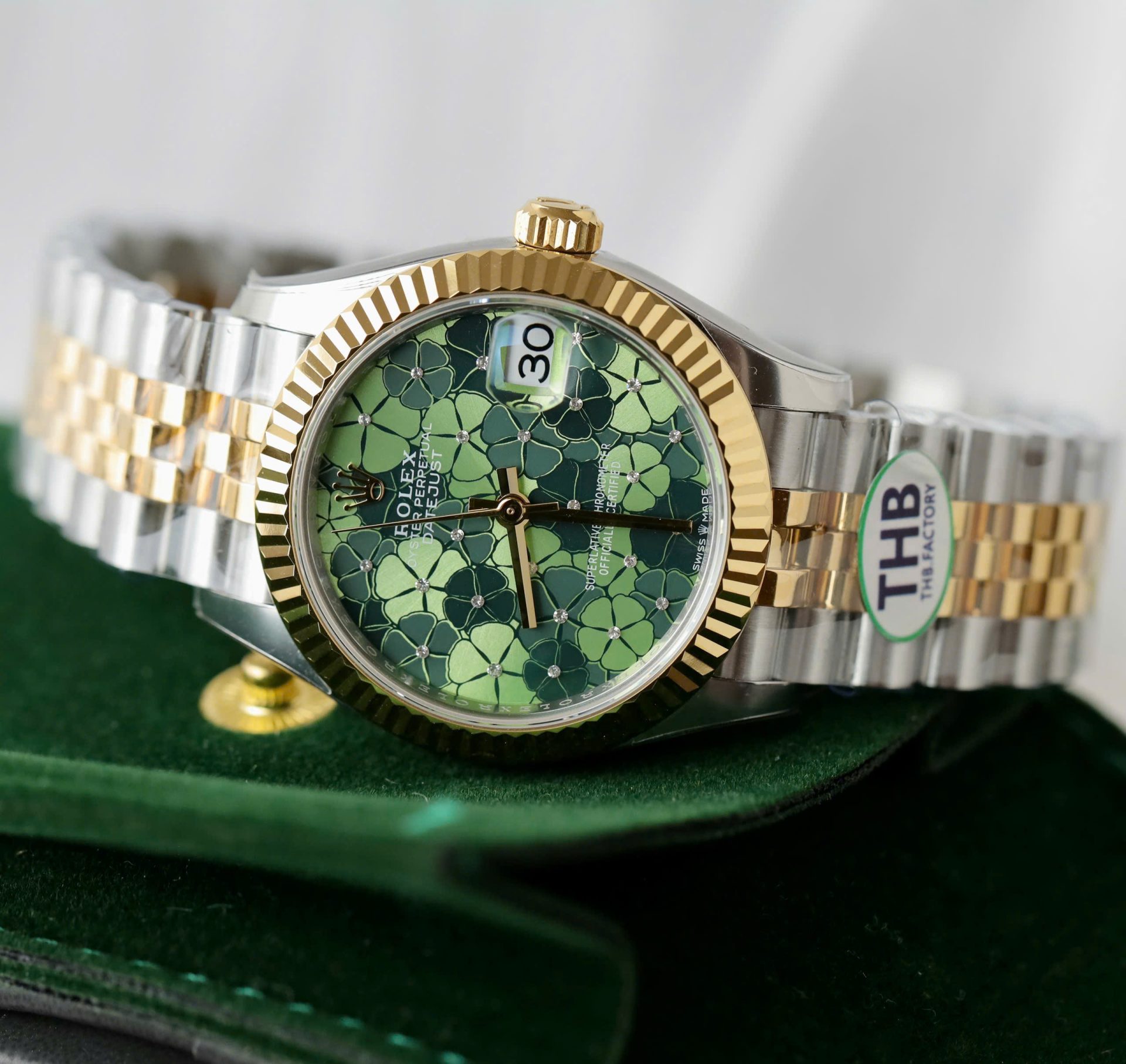 Rolex DateJust Replica Watch Women Green Flower Dial THB Factory 31mm