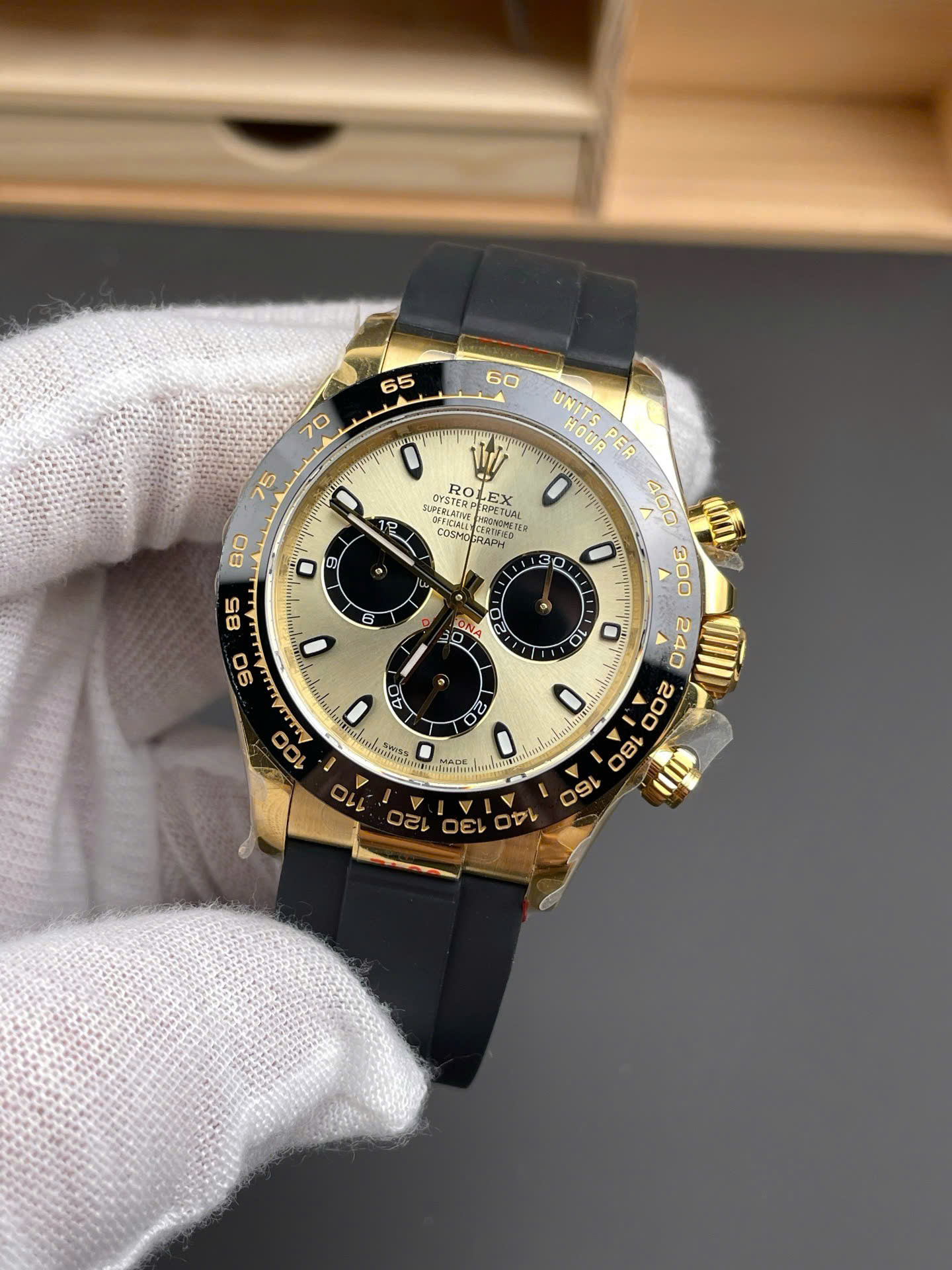 Rolex Daytona 116518 knock Off Watches Champagne Yellow Dial Oysterflex Strap QF Factory 40mm